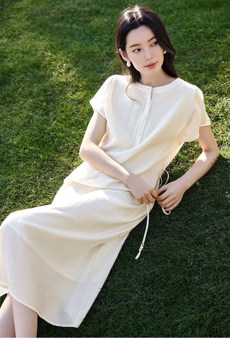Vestido camisero de moda para primavera y verano para mujer 2025 verano casual natural falda midi