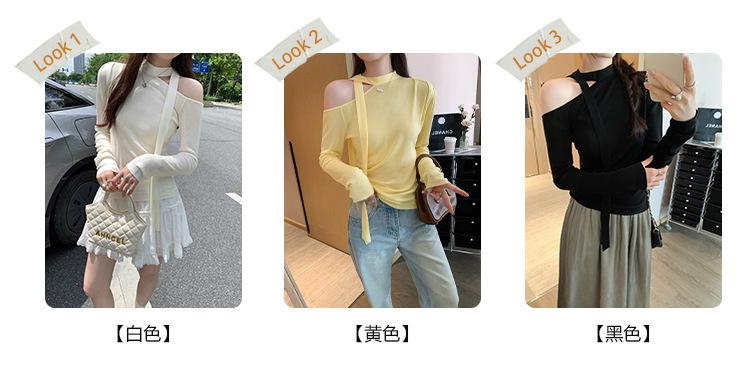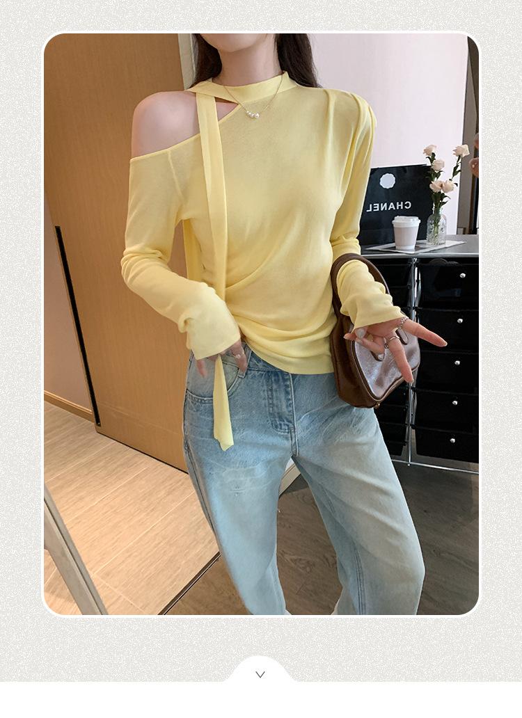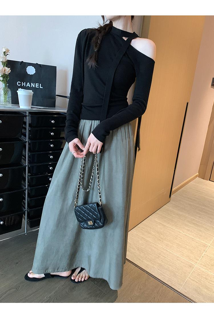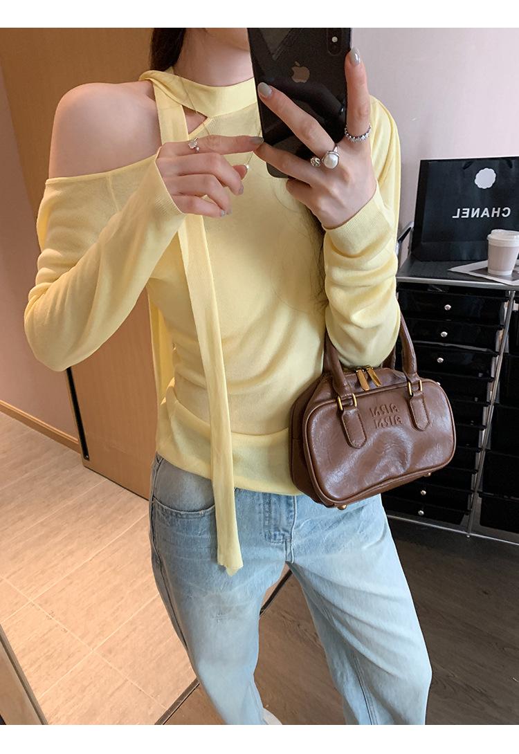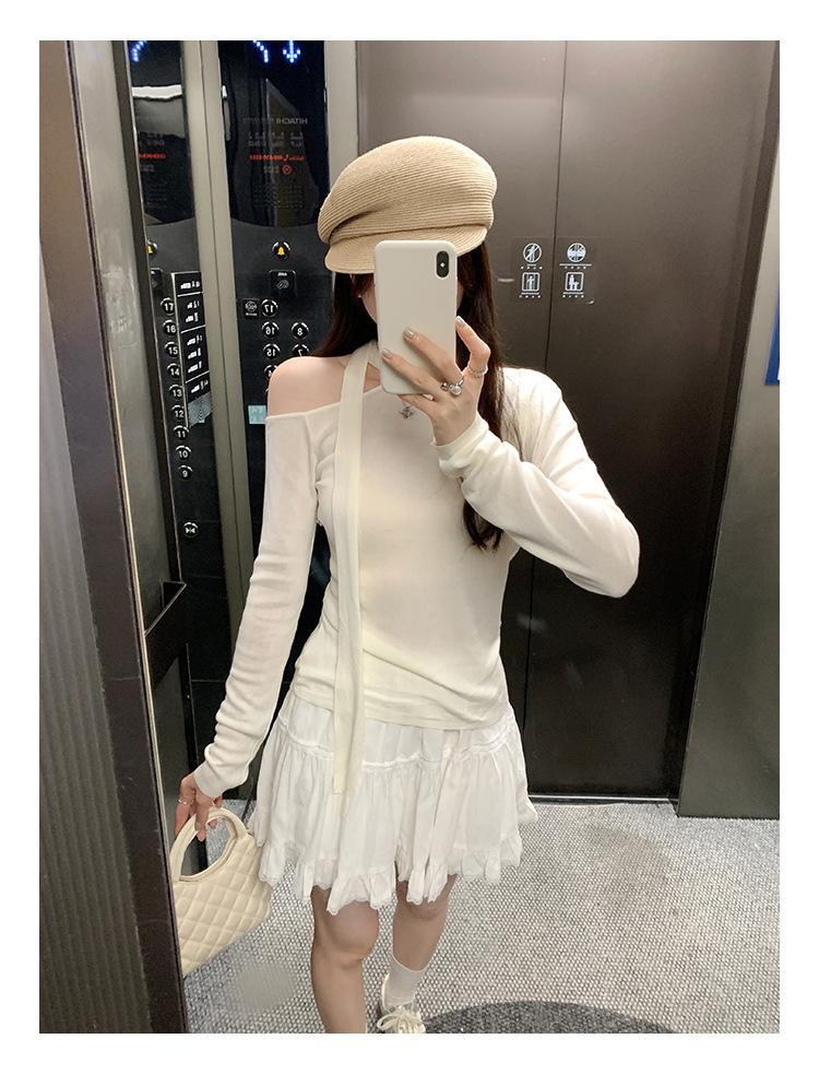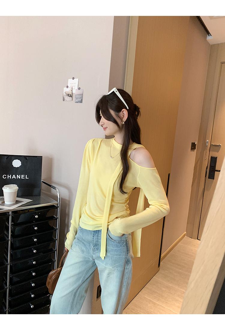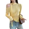 Camiseta de Manga Larga Delgada y Juguetona de Lyocell Tencel Moda Femenina 2025 Principios de Otoño Nuevo Top con Lazo