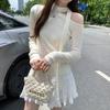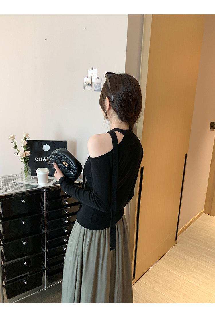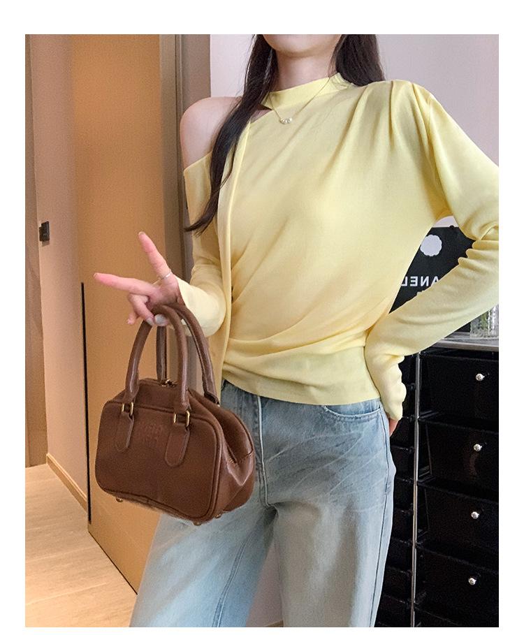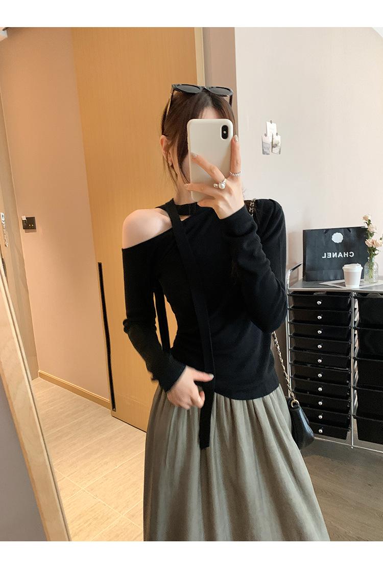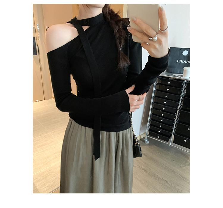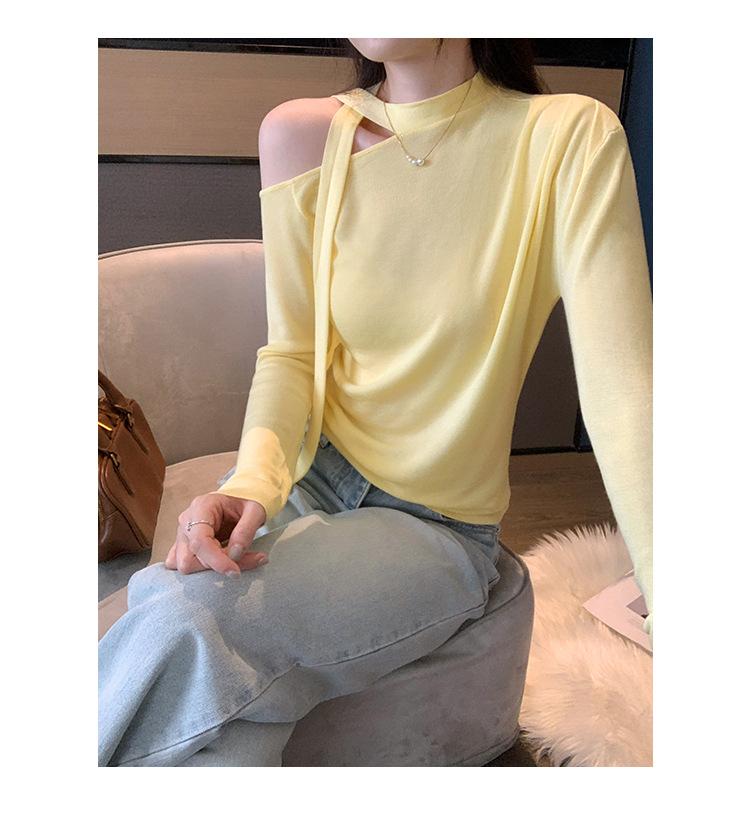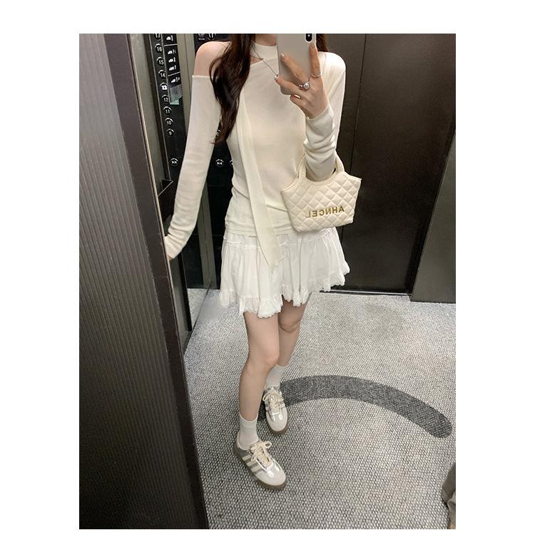 Camiseta de Manga Larga Delgada y Juguetona de Lyocell Tencel Moda Femenina 2025 Principios de Otoño Nuevo Top con Lazo