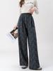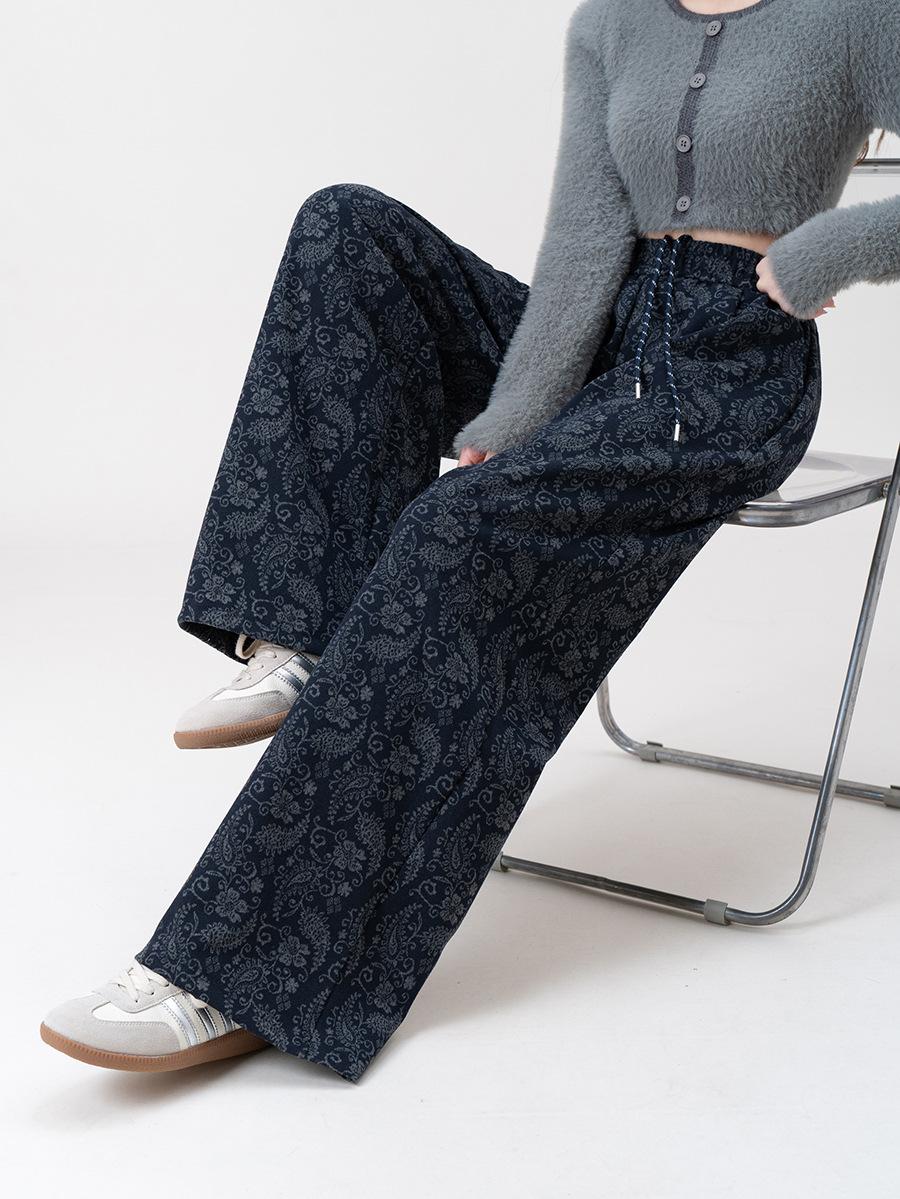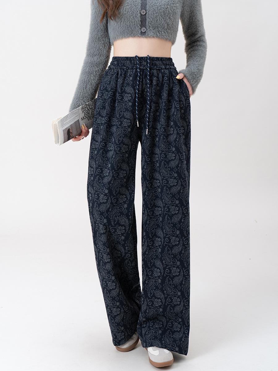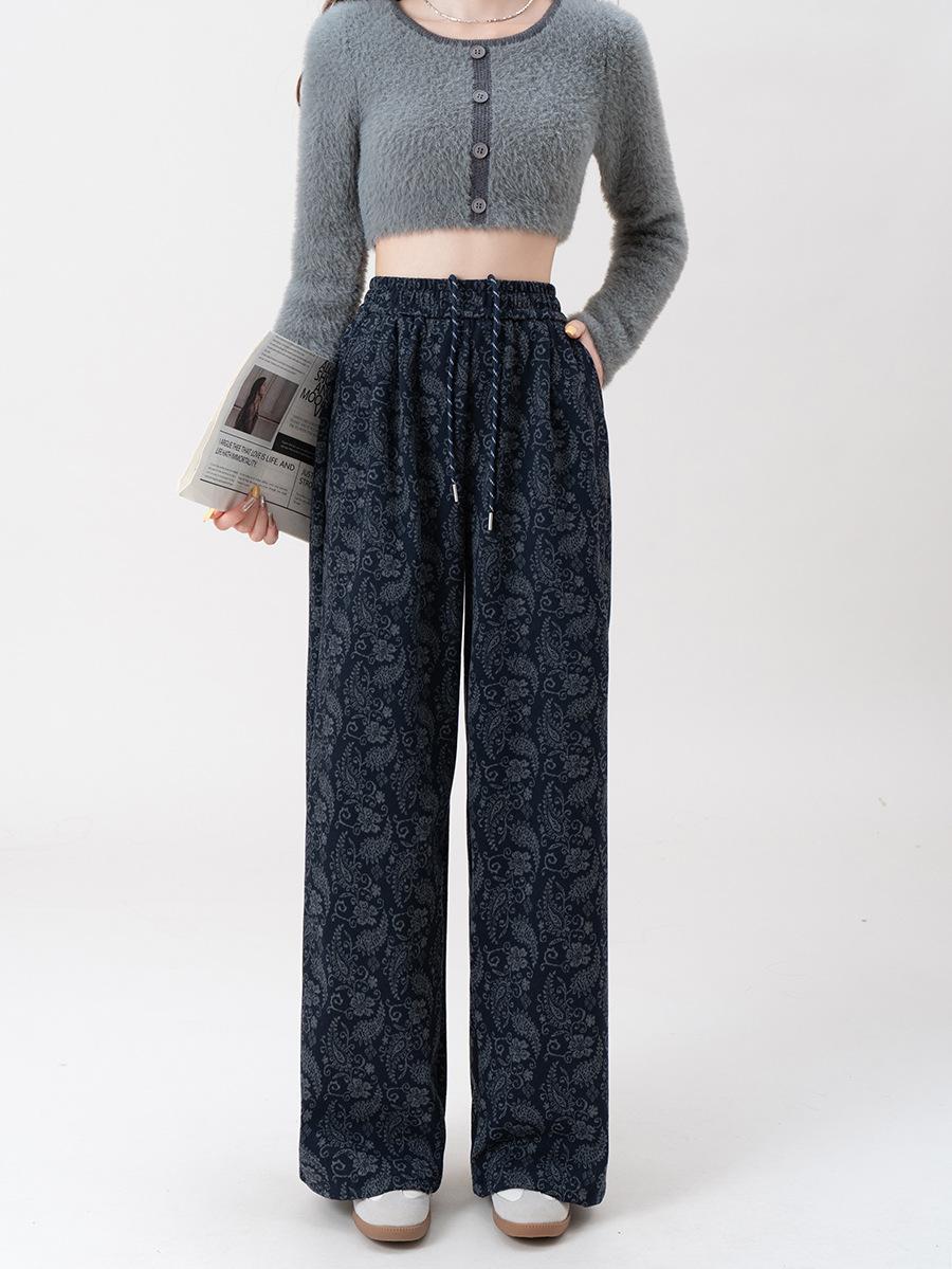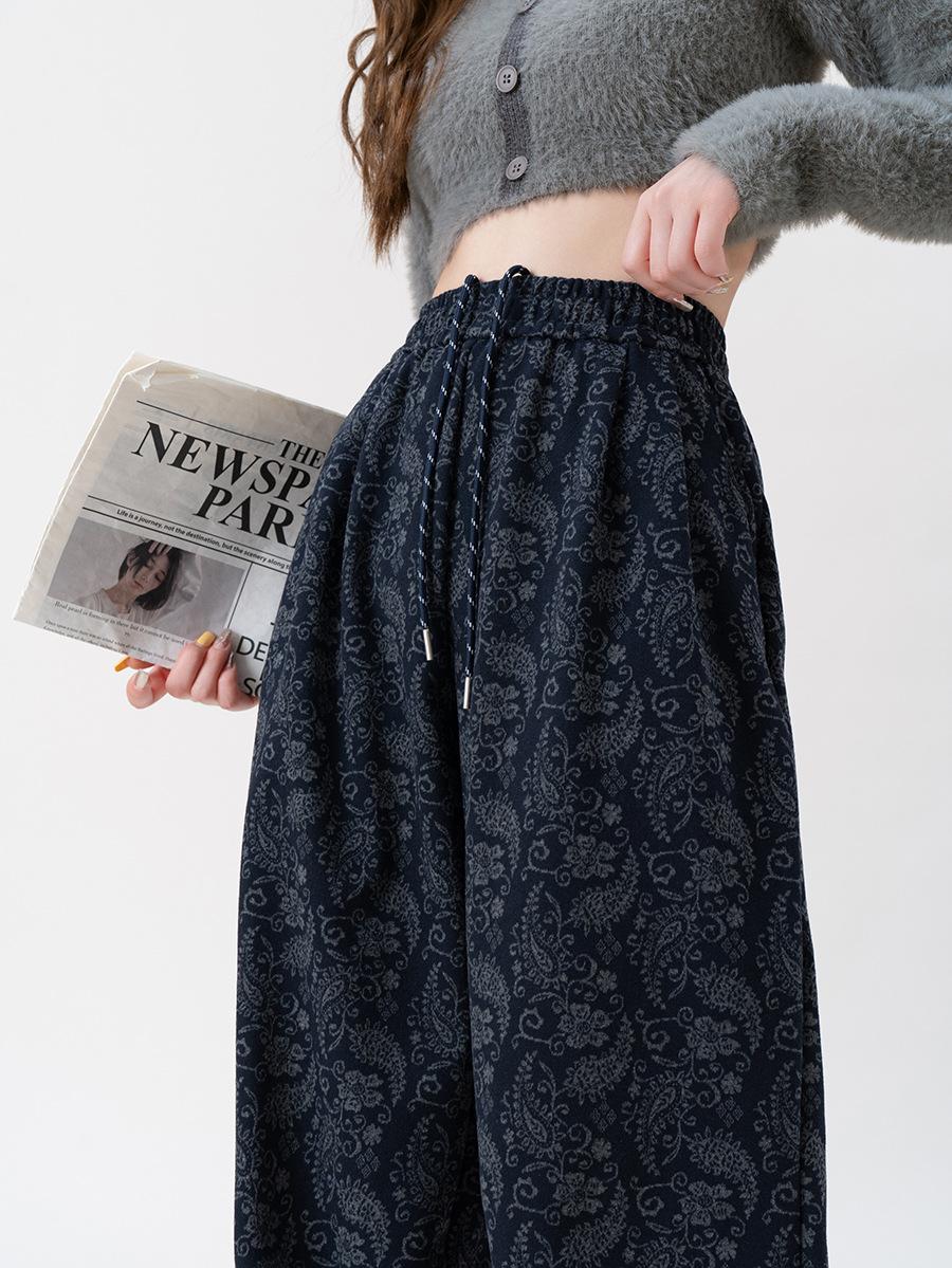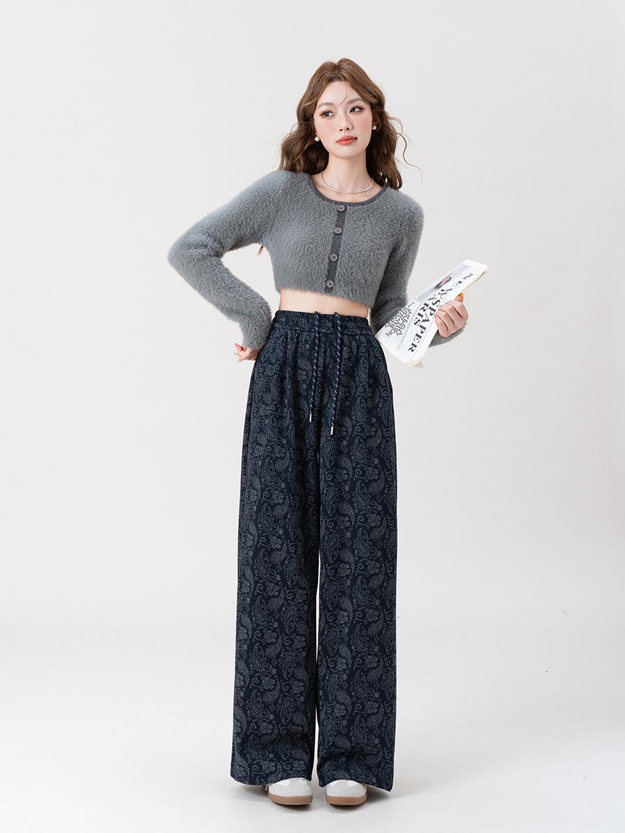 Pantalones Jacquard de Pierna Ancha para Mujer Otoño Invierno Gruesos Nuevos de Cintura Alta Sueltos Adelgazantes Casuales Pantalones Largos 8912