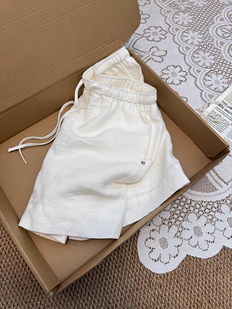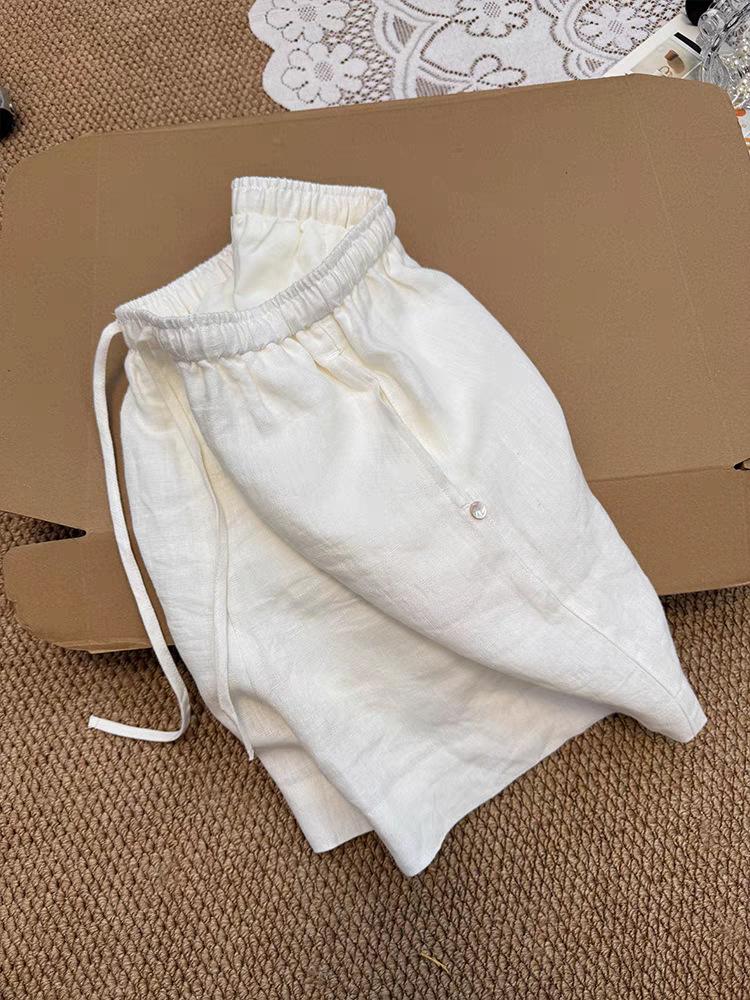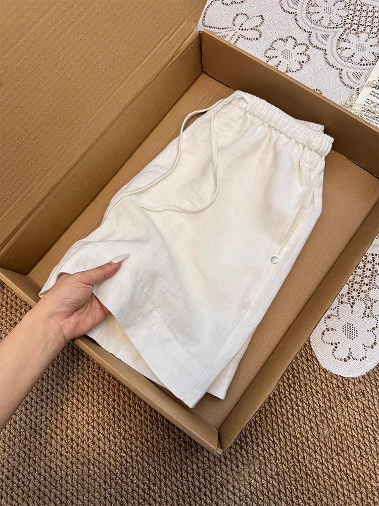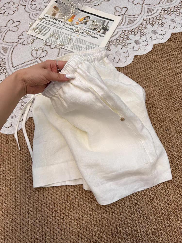 ¡Altamente Recomendado! Shorts Blancos de Lino Tencel para Mujer 2025 Nueva Ropa Exterior de Verano, Shorts hasta la Rodilla que Realzan la Altura y Alargan las Piernas
