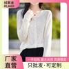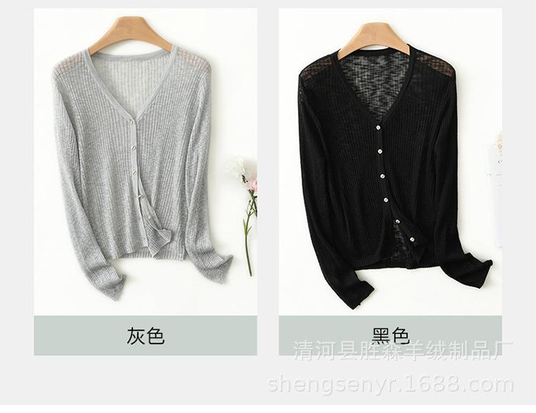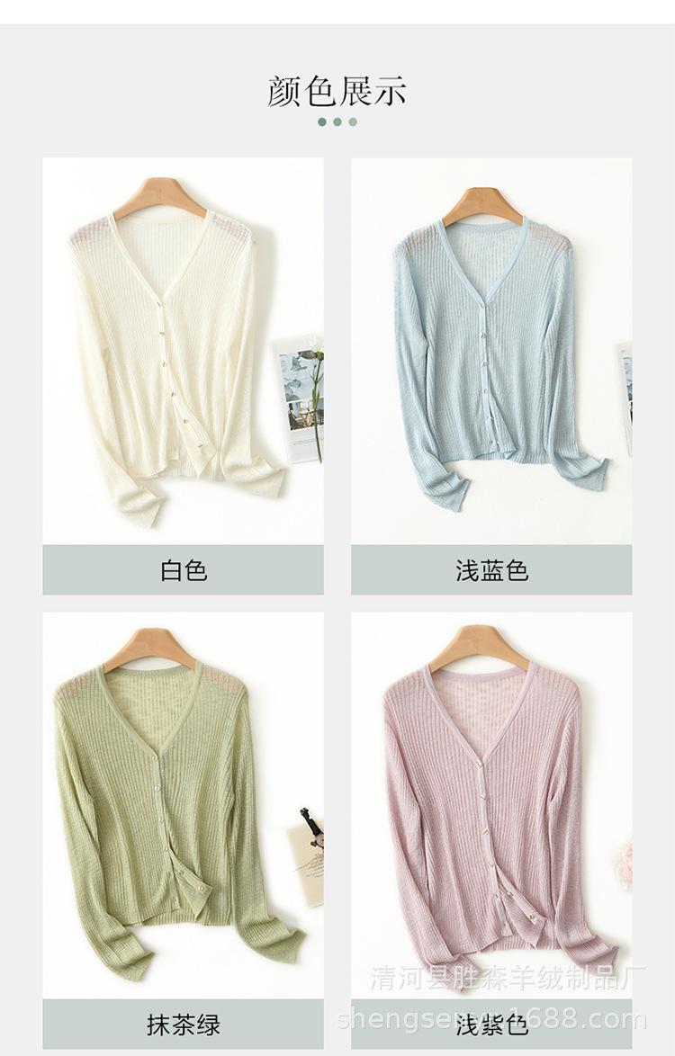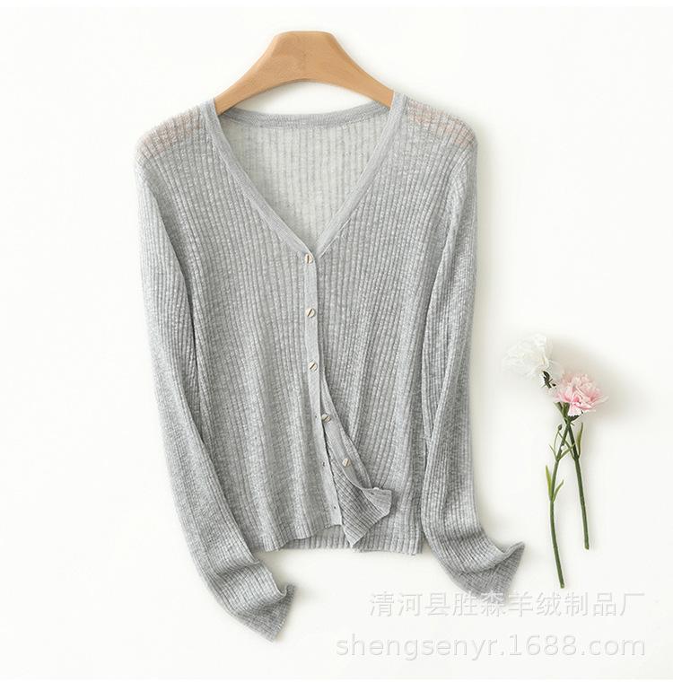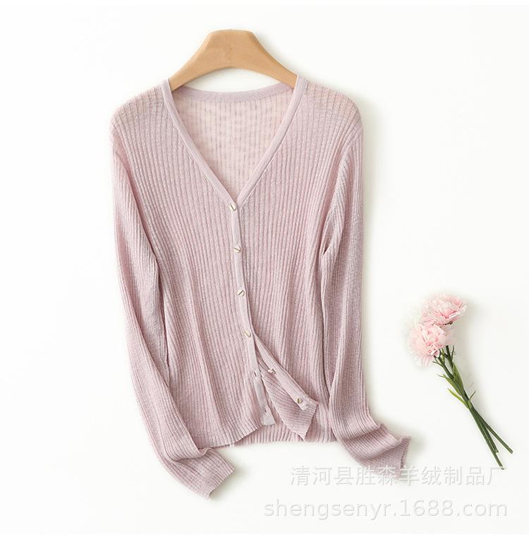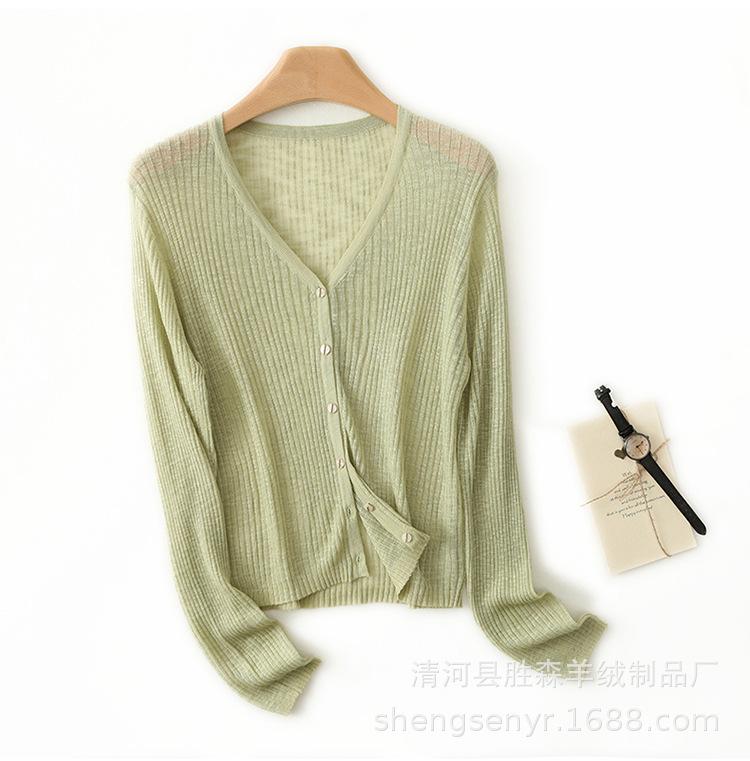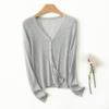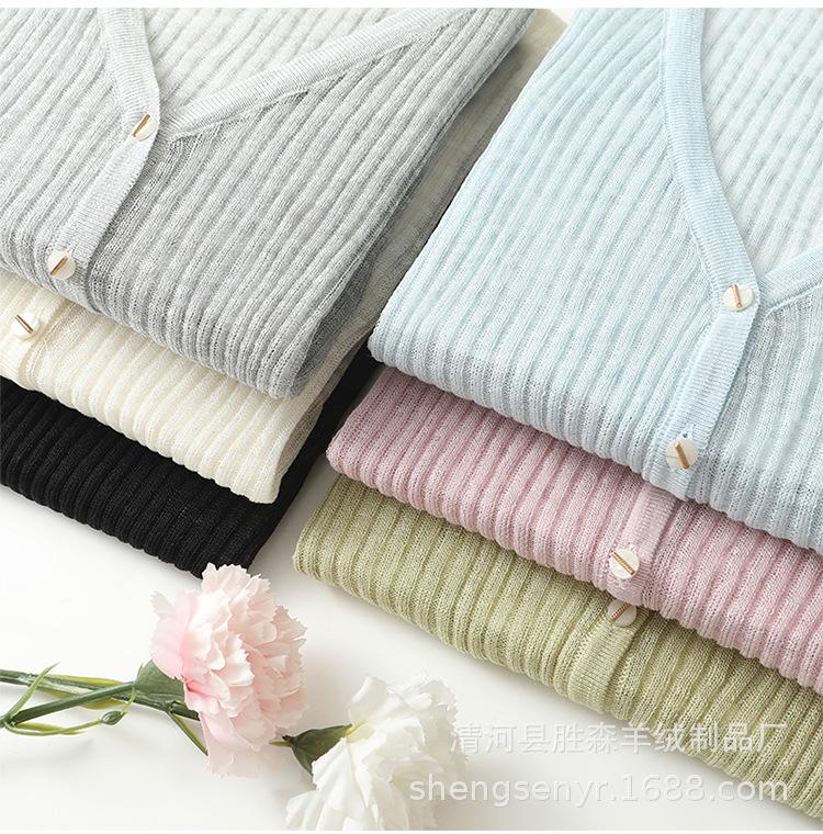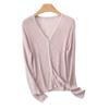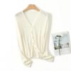 Chaqueta de punto con cuello en V y protección solar para mujer, blusa holgada de color liso y fina con aire acondicionado, novedad de verano de 24 años