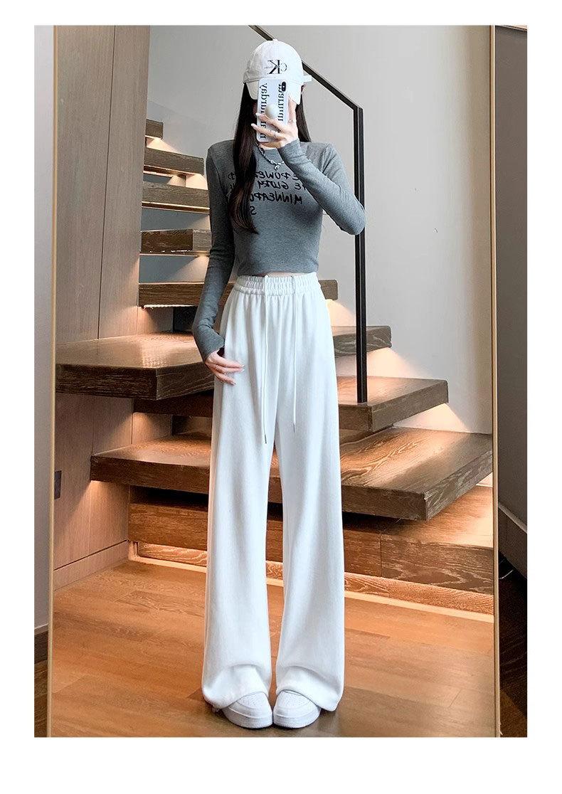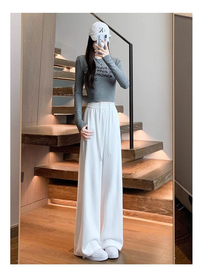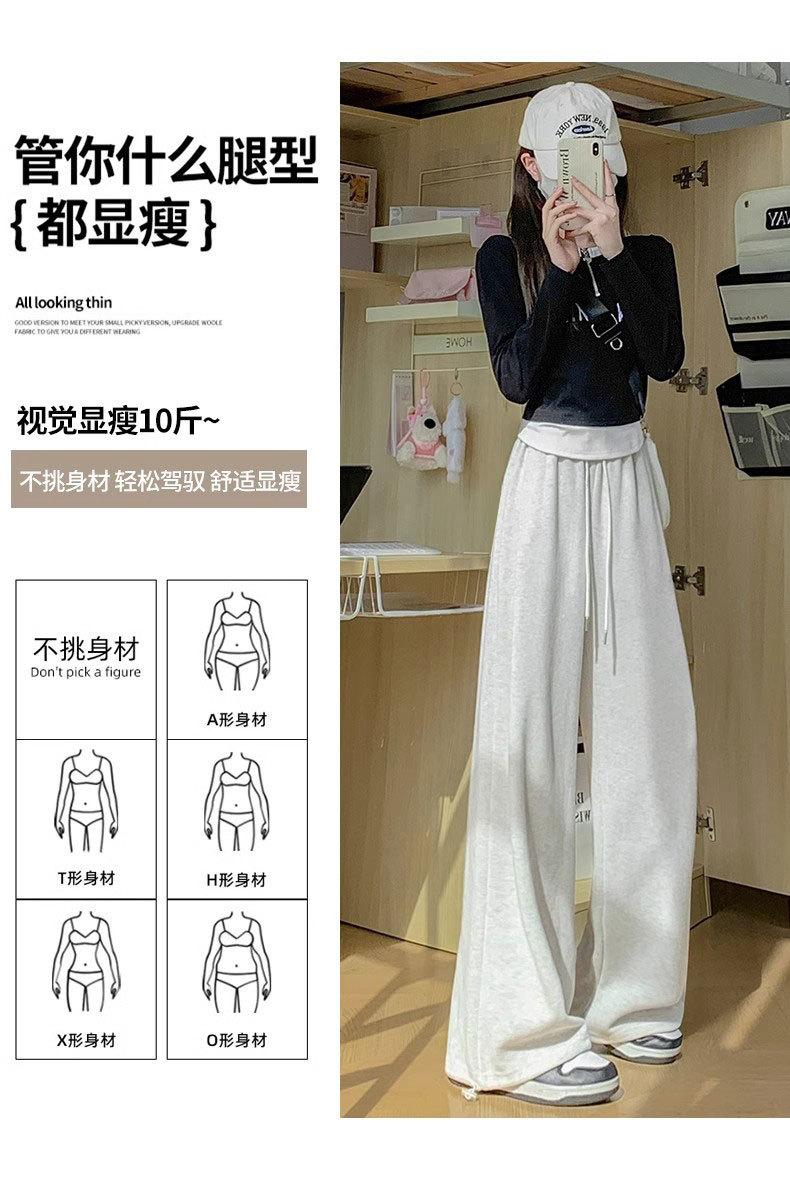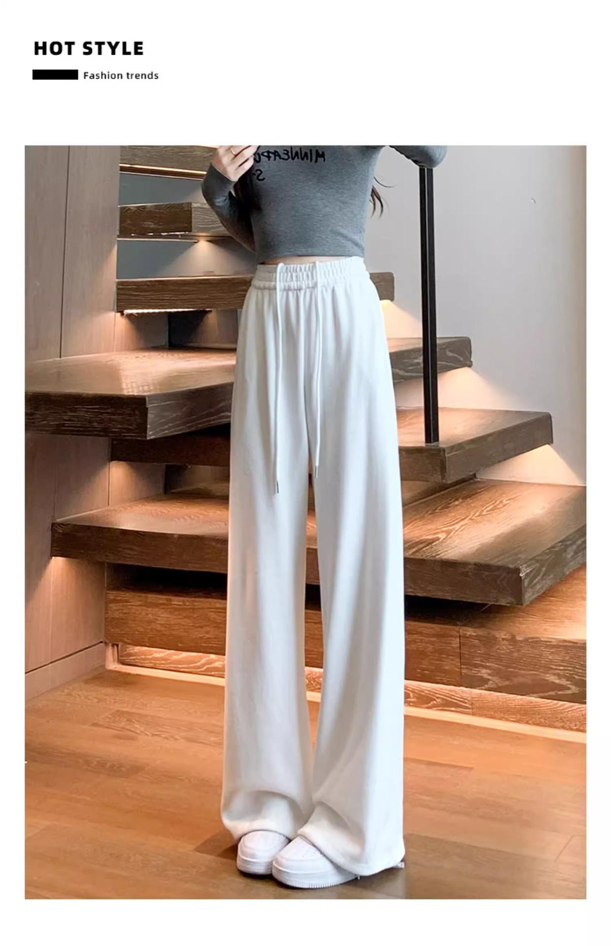 Pantalón de chándal blanco-gris para mujer, holgado, con puños, nuevo, otoño e invierno, con felpa, adelgazante, con cordón, versátil, casual americano