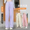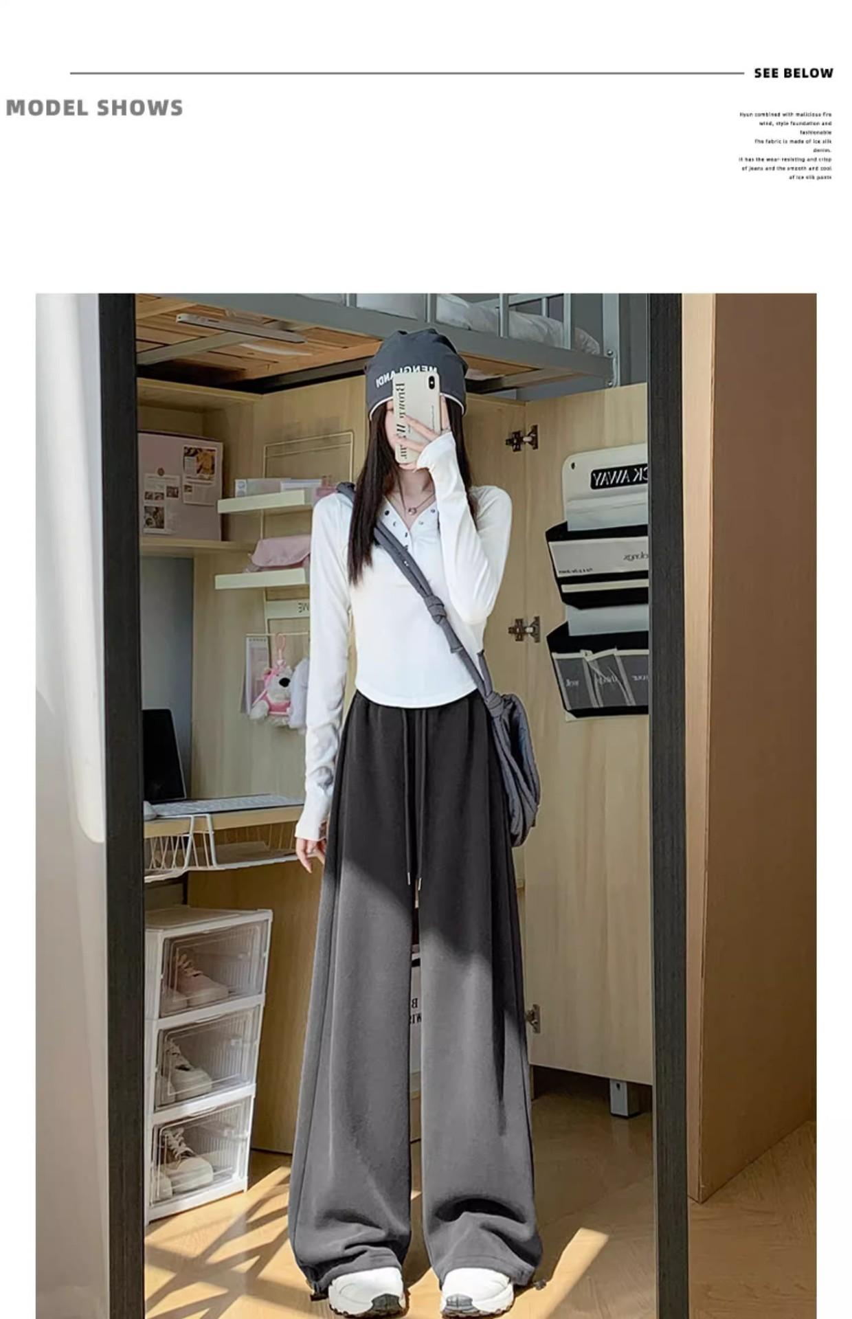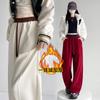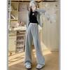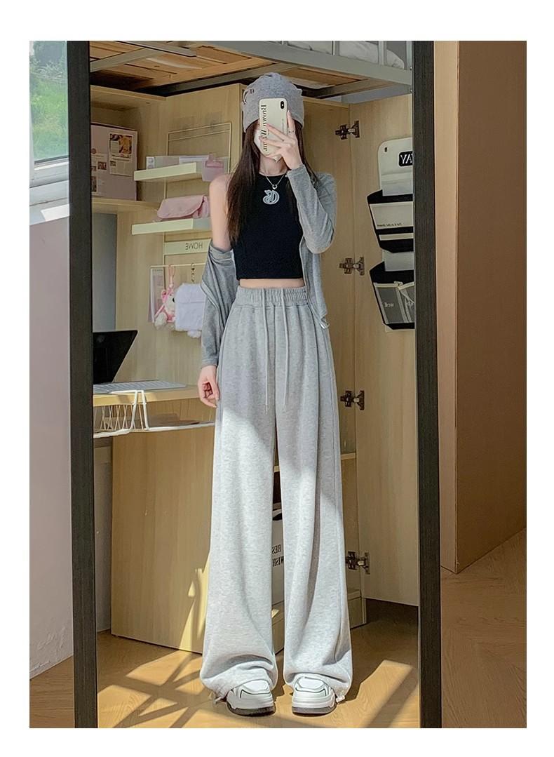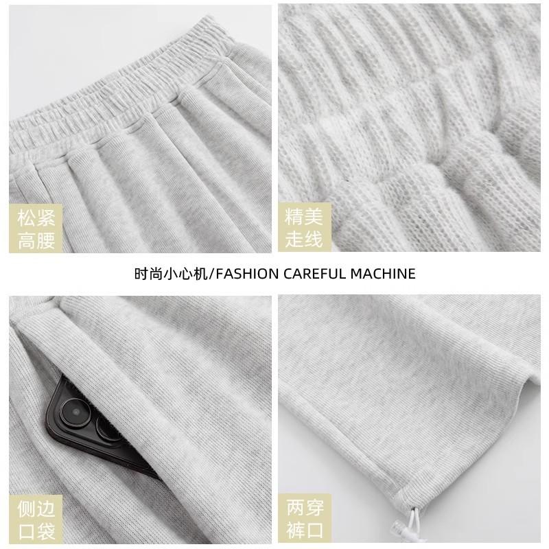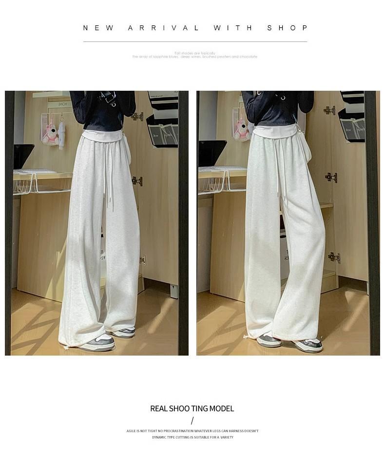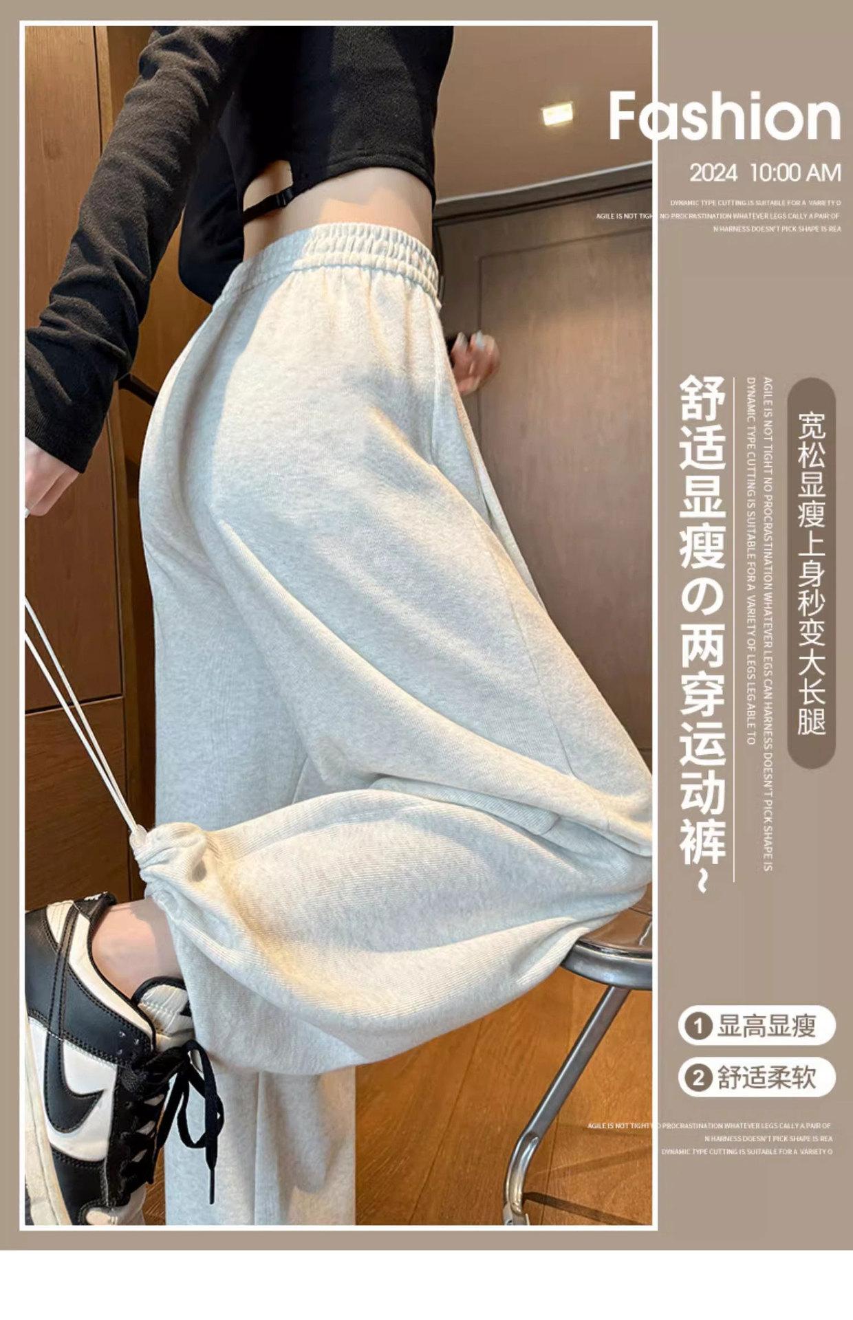 Pantalón de chándal blanco-gris para mujer, holgado, con puños, nuevo, otoño e invierno, con felpa, adelgazante, con cordón, versátil, casual americano