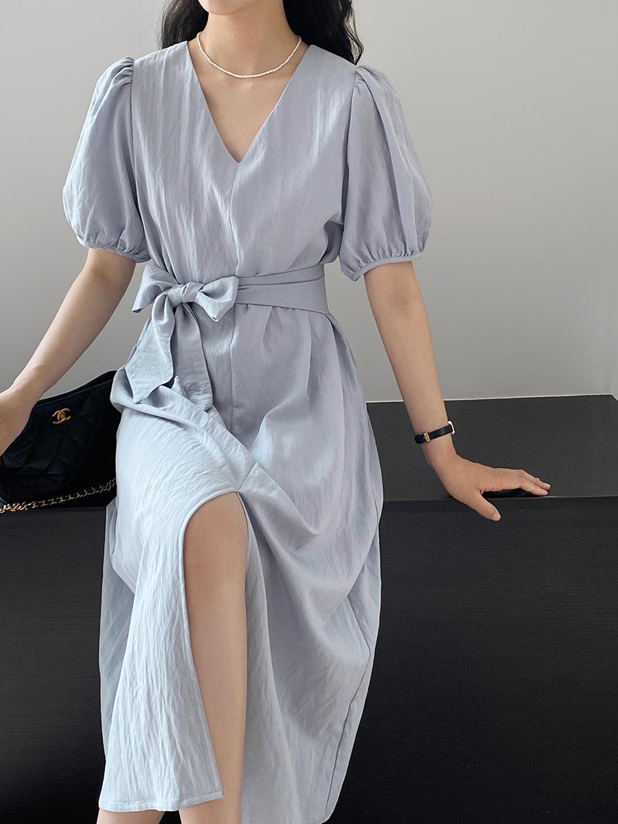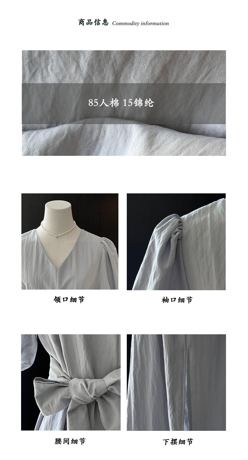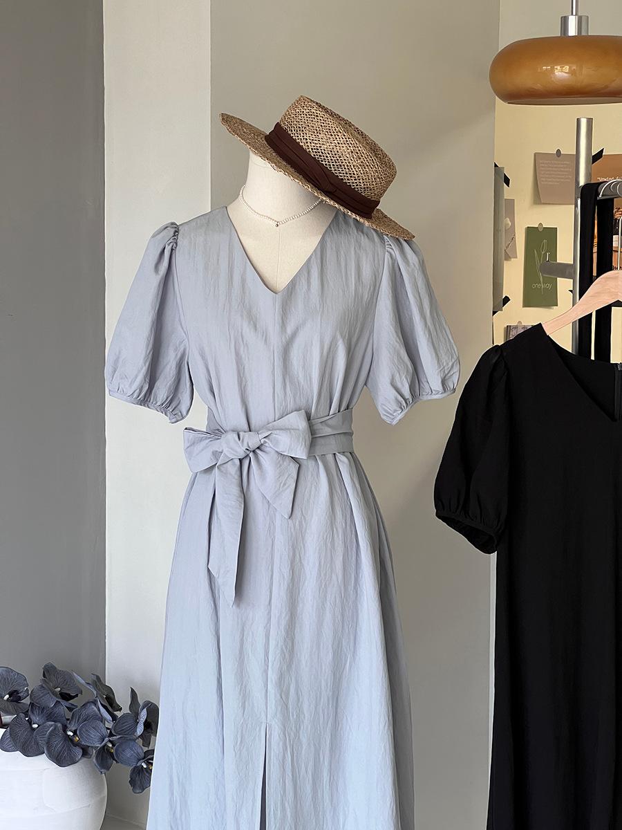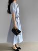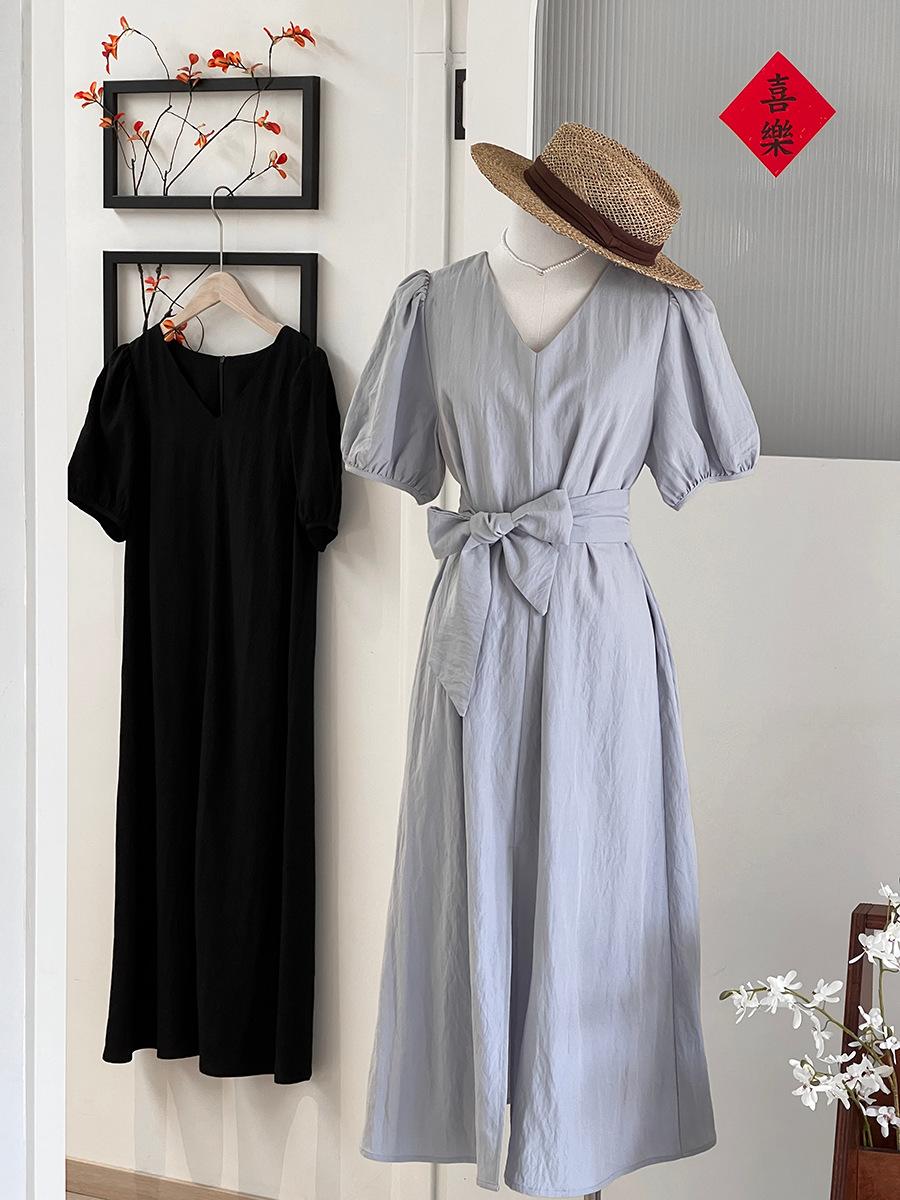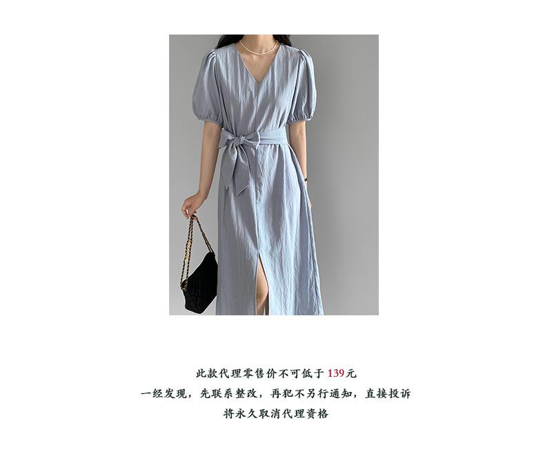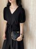Vestido Jiangzuo de estilo francés con cuello en V, lazo en la cintura y corte entallado para mujer, nuevo vestido largo elegante de corte A de manga corta para verano 1562