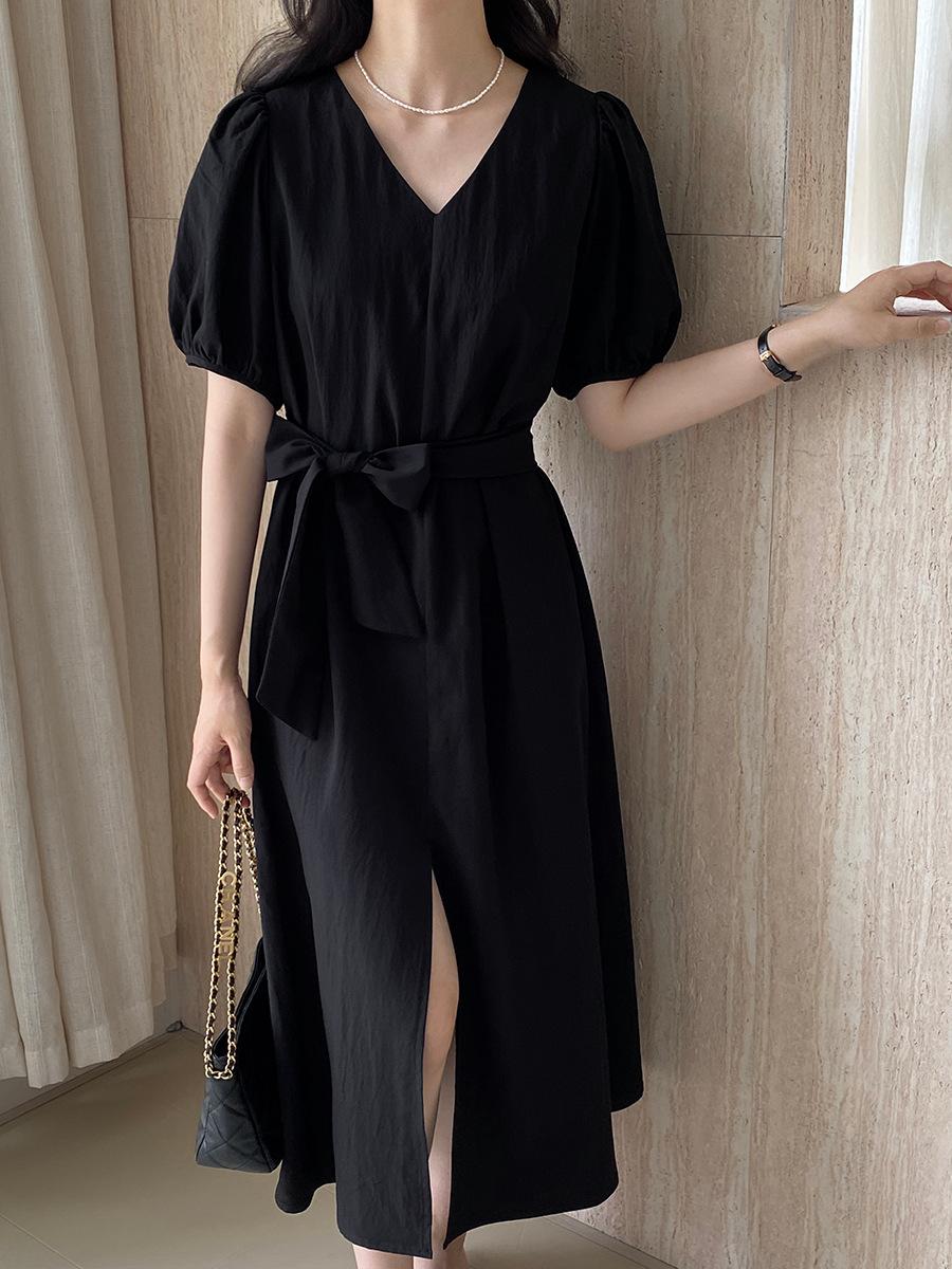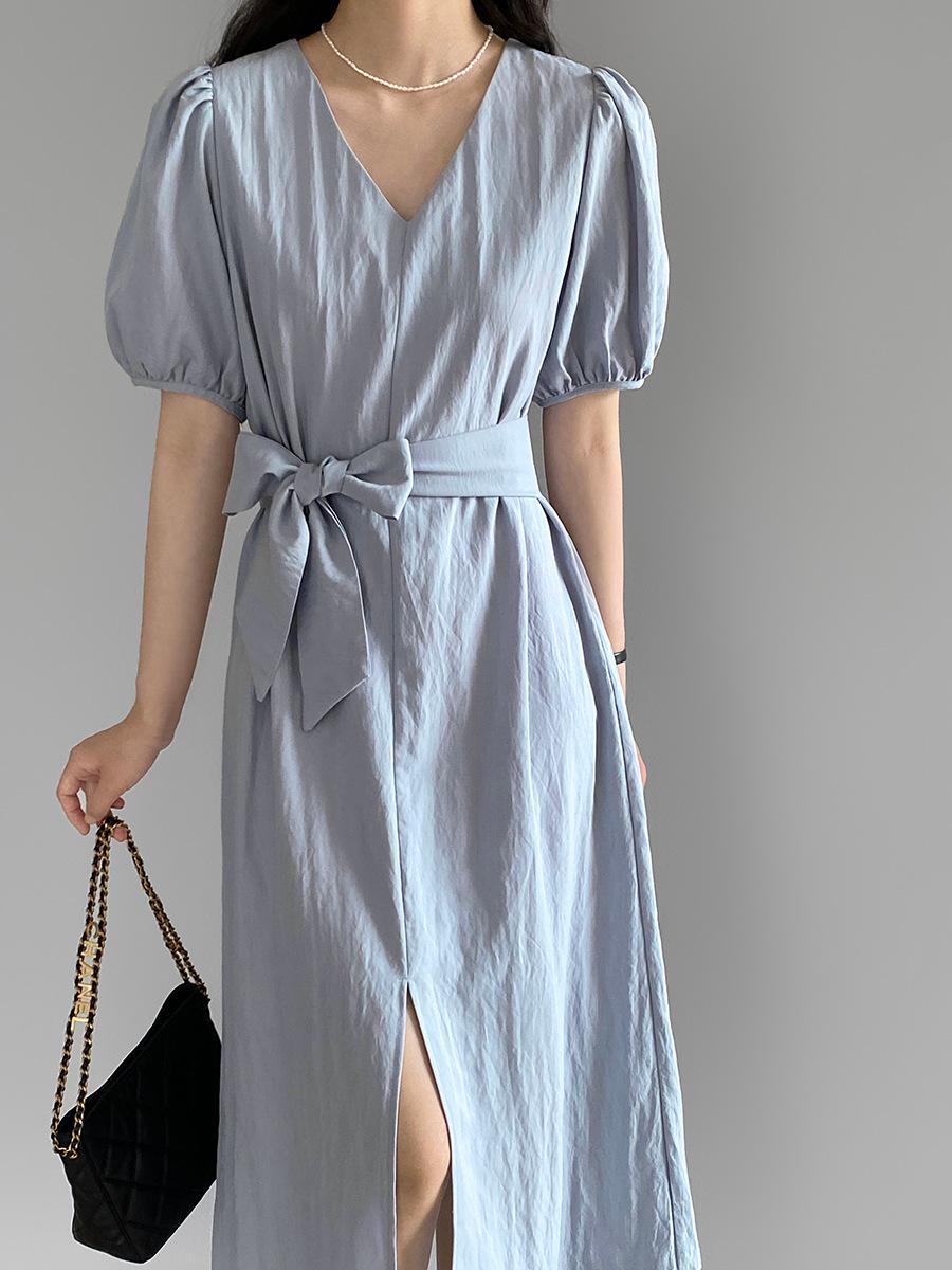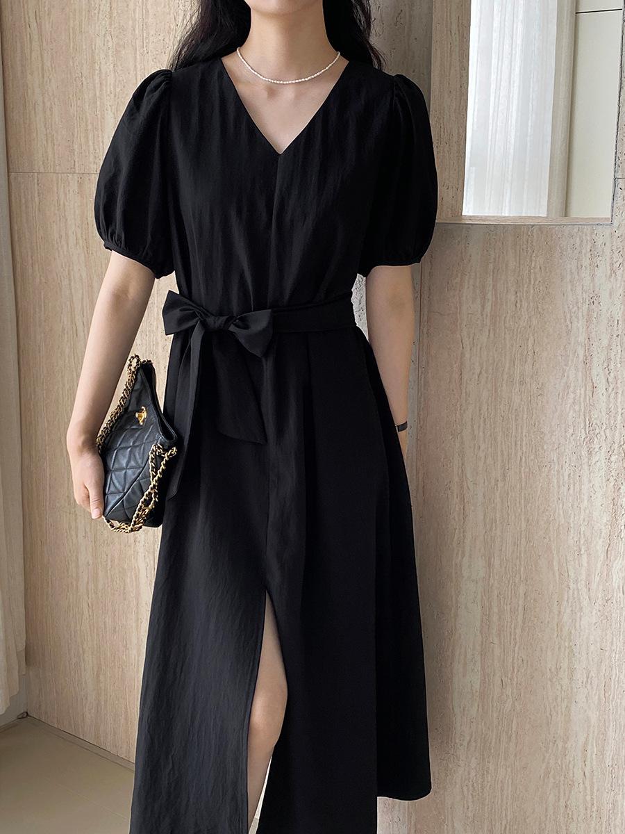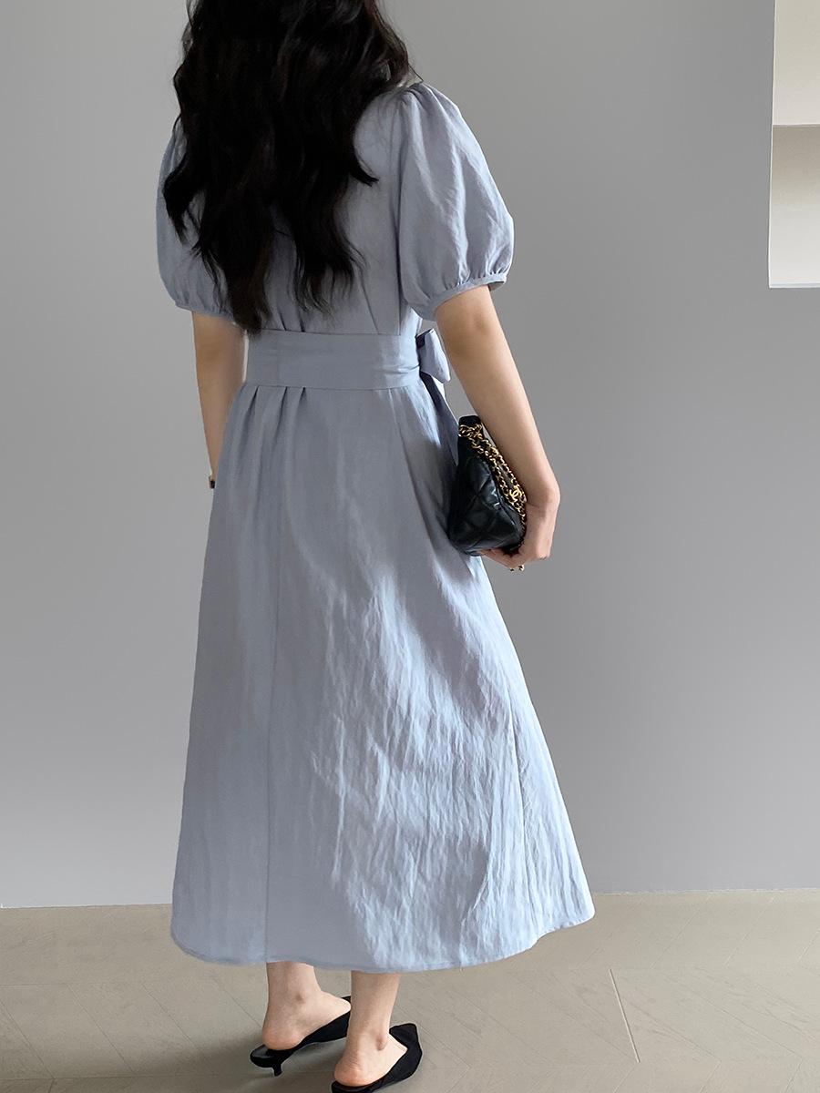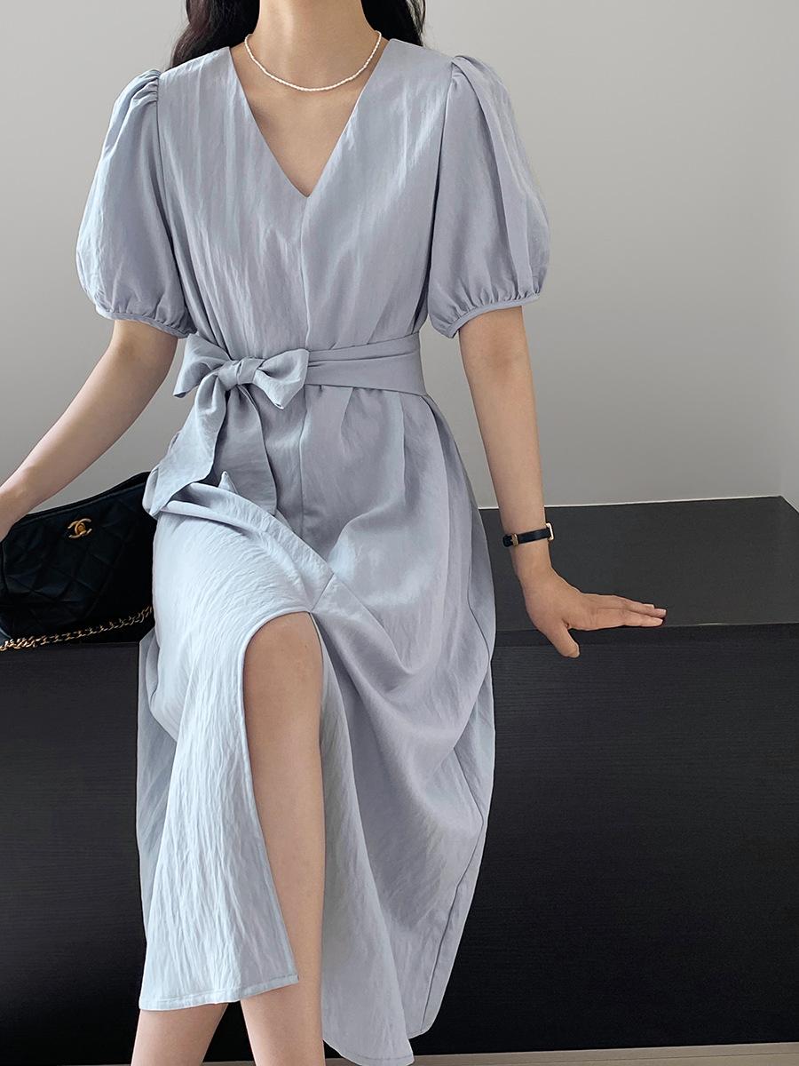 Vestido Jiangzuo de estilo francés con cuello en V, lazo en la cintura y corte entallado para mujer, nuevo vestido largo elegante de corte A de manga corta para verano 1562