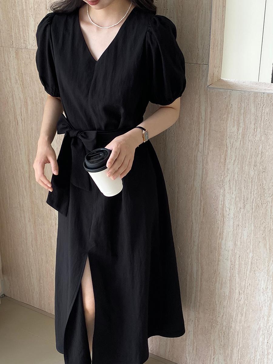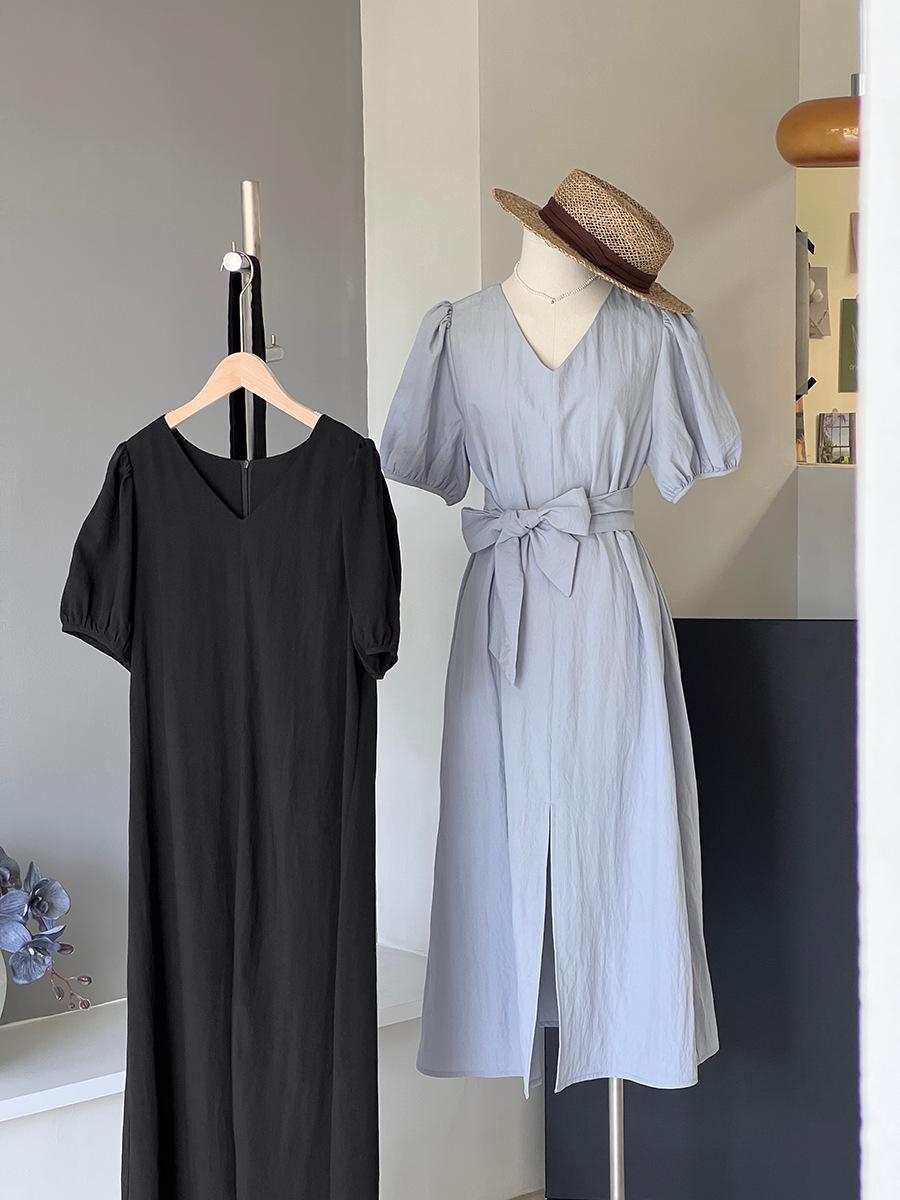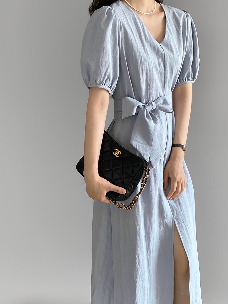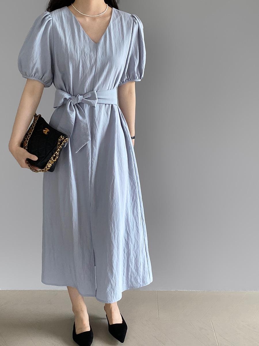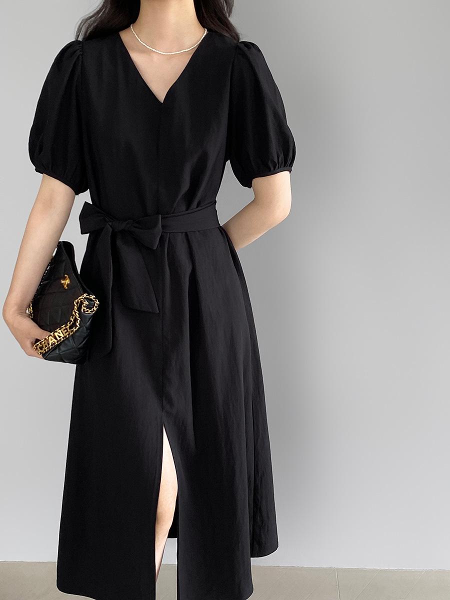 Vestido Jiangzuo de estilo francés con cuello en V, lazo en la cintura y corte entallado para mujer, nuevo vestido largo elegante de corte A de manga corta para verano 1562