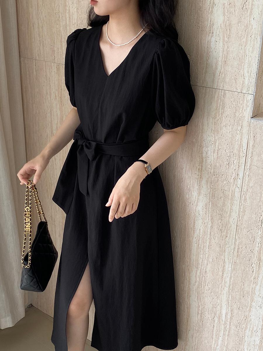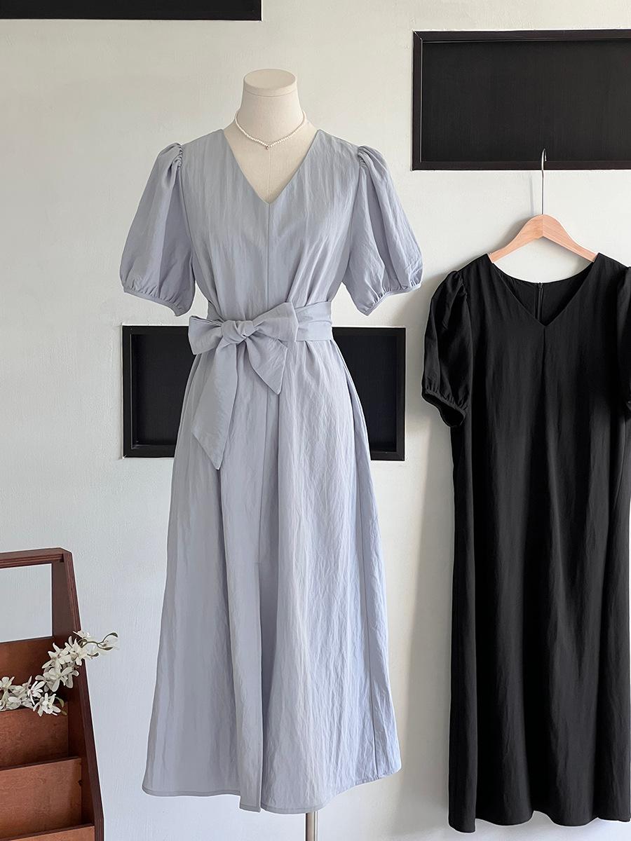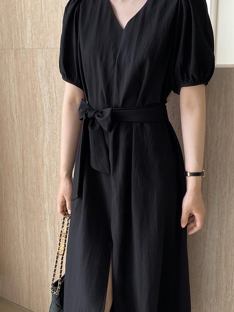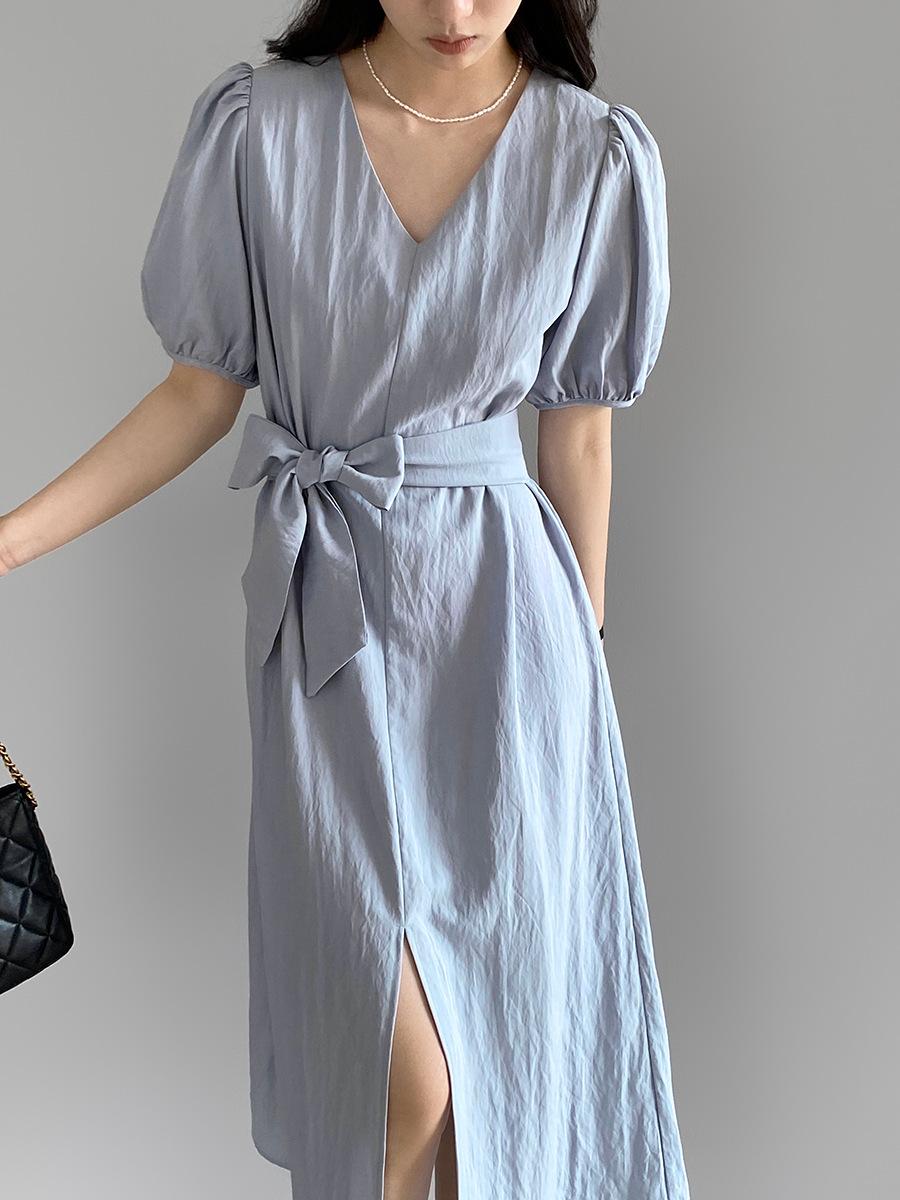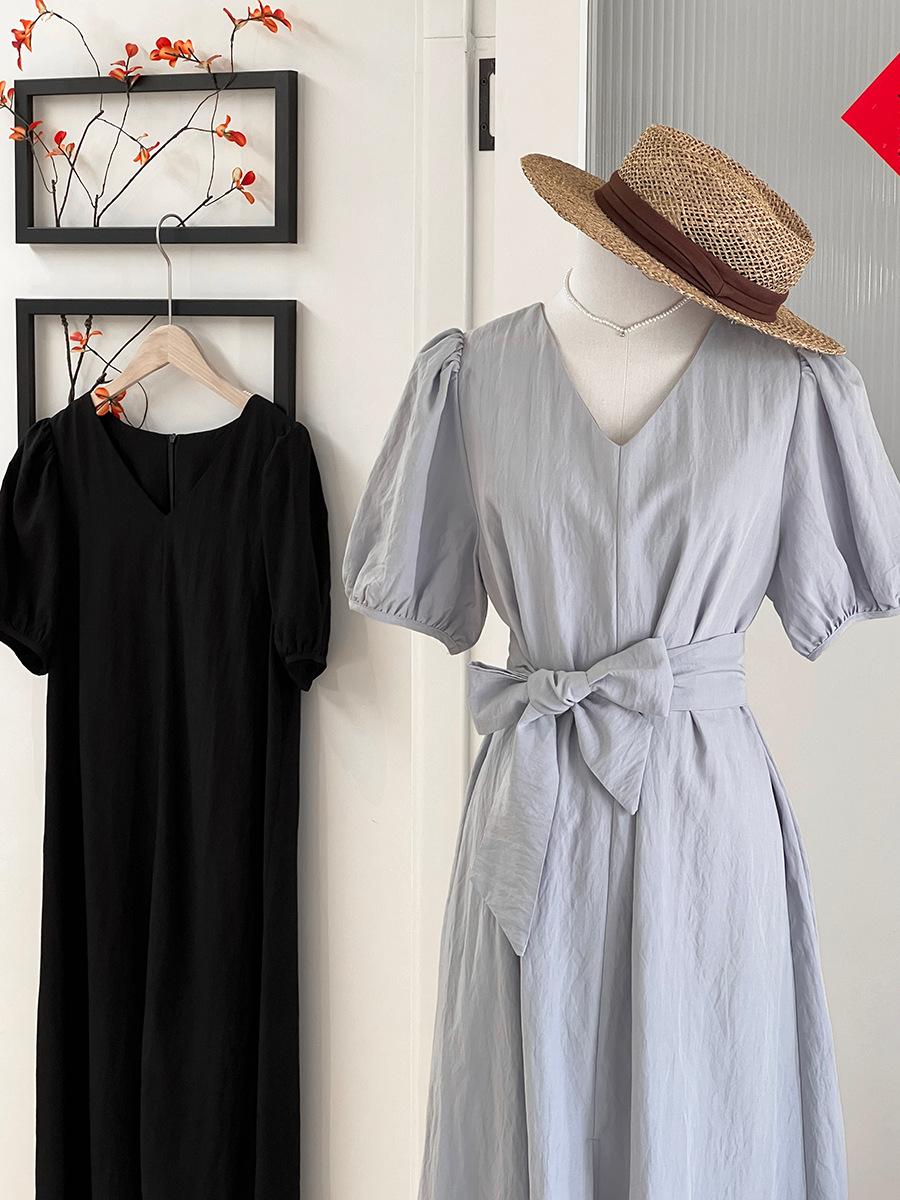 Vestido Jiangzuo de estilo francés con cuello en V, lazo en la cintura y corte entallado para mujer, nuevo vestido largo elegante de corte A de manga corta para verano 1562