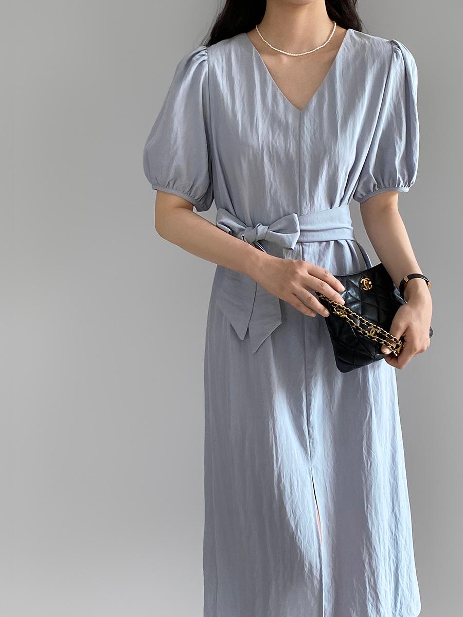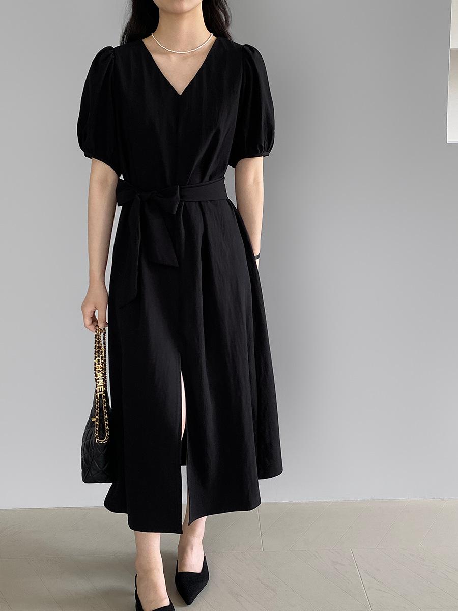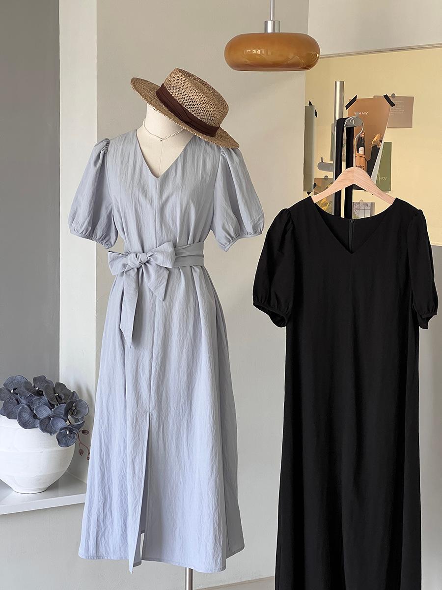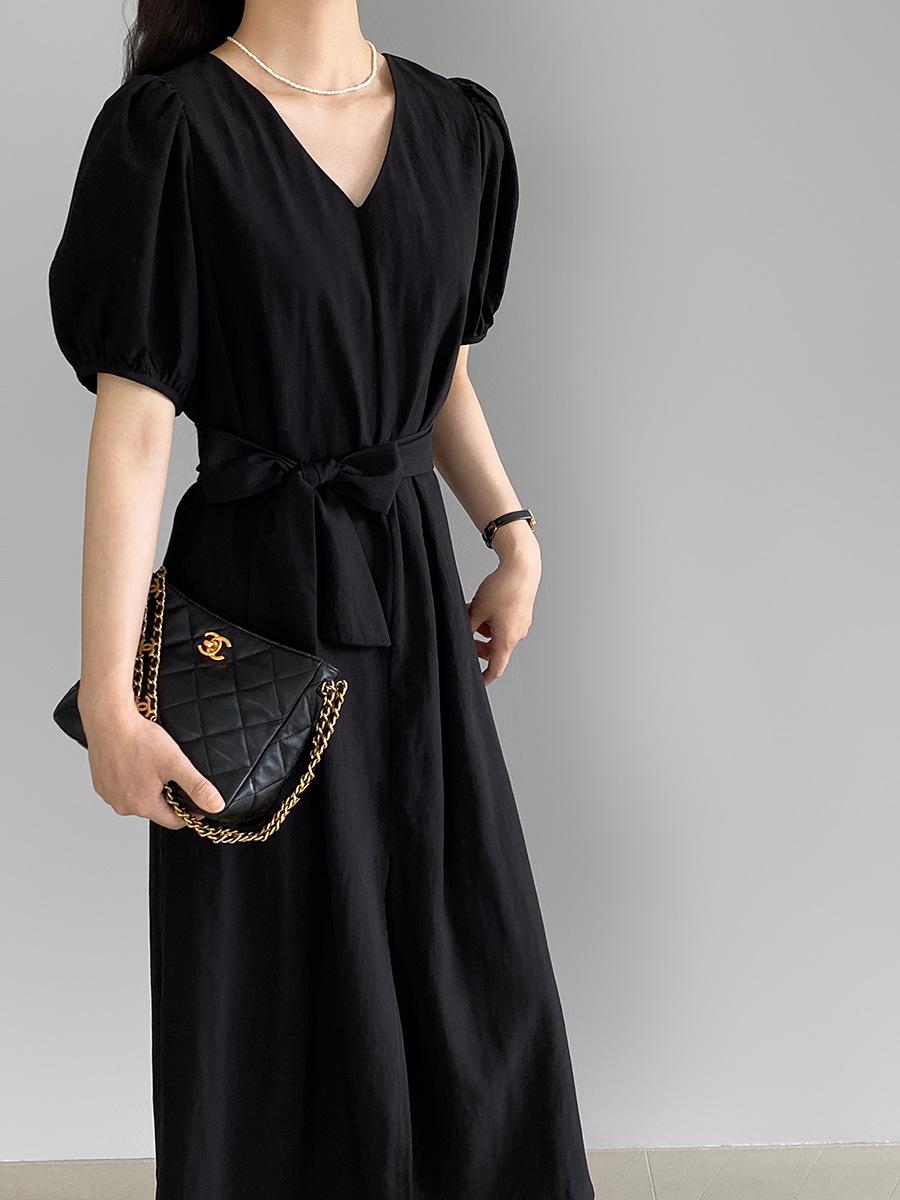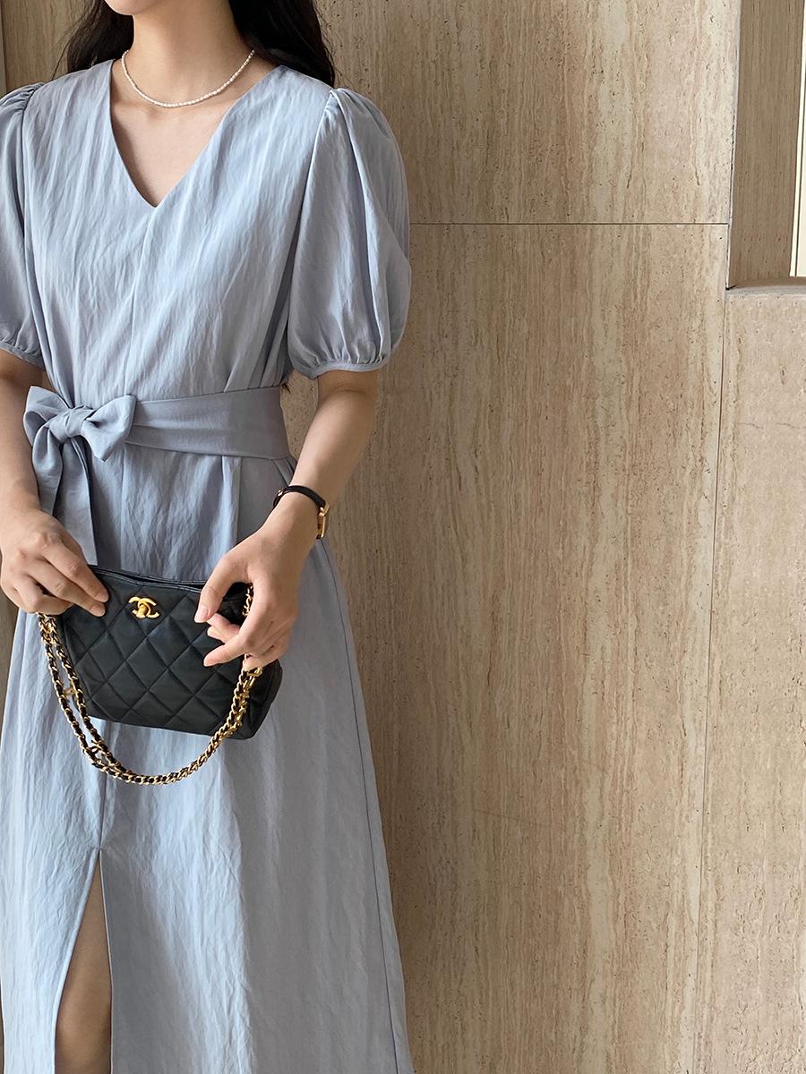 Vestido Jiangzuo de estilo francés con cuello en V, lazo en la cintura y corte entallado para mujer, nuevo vestido largo elegante de corte A de manga corta para verano 1562