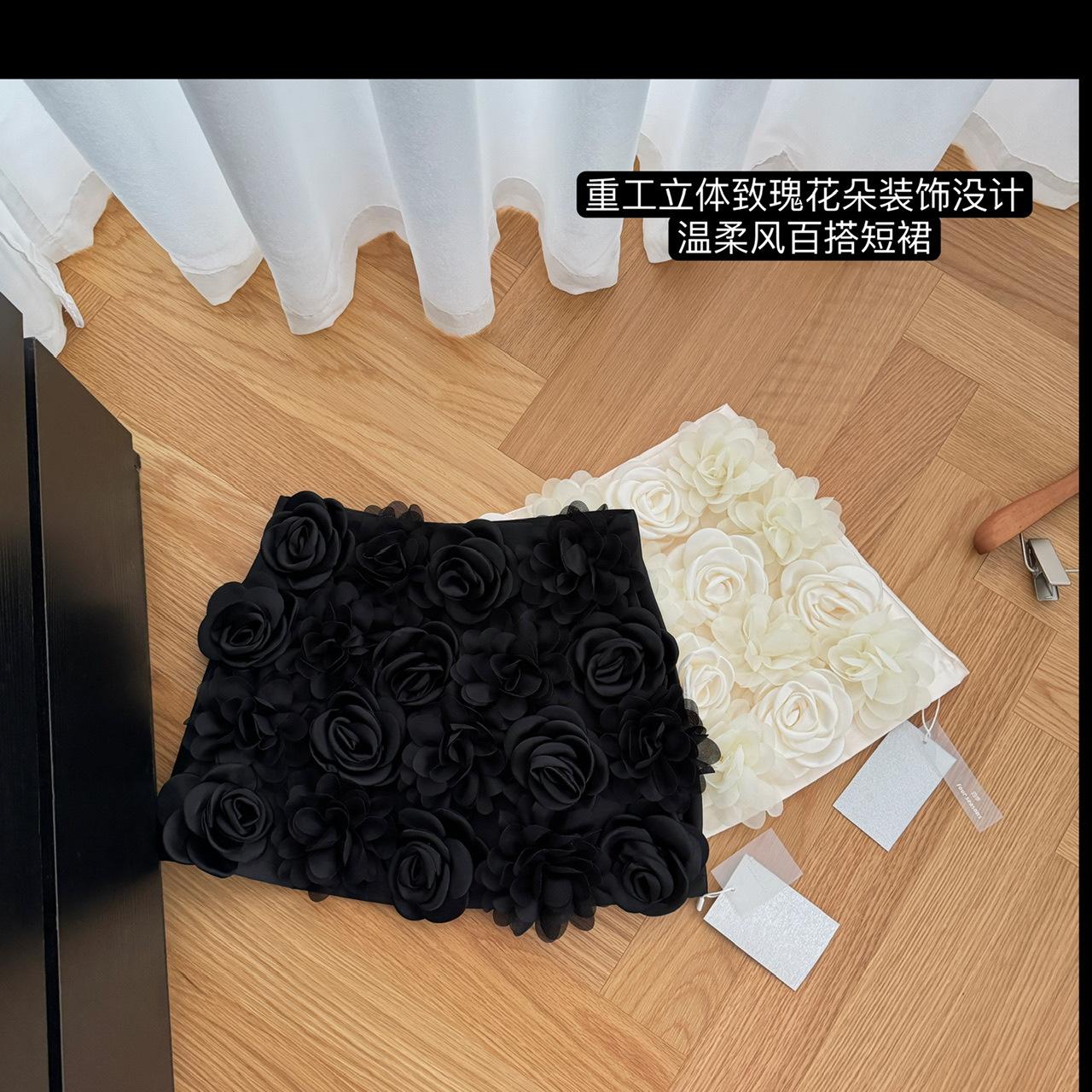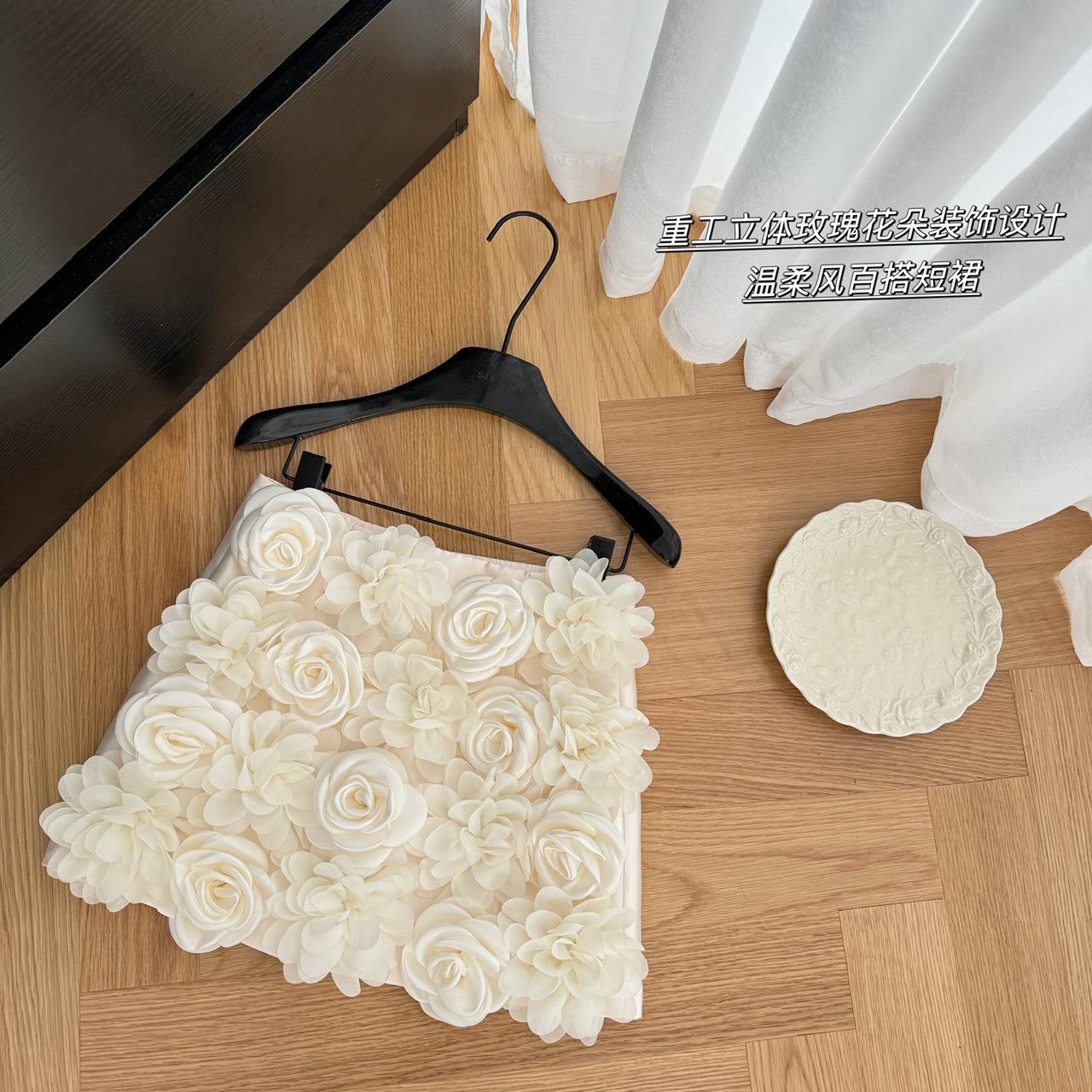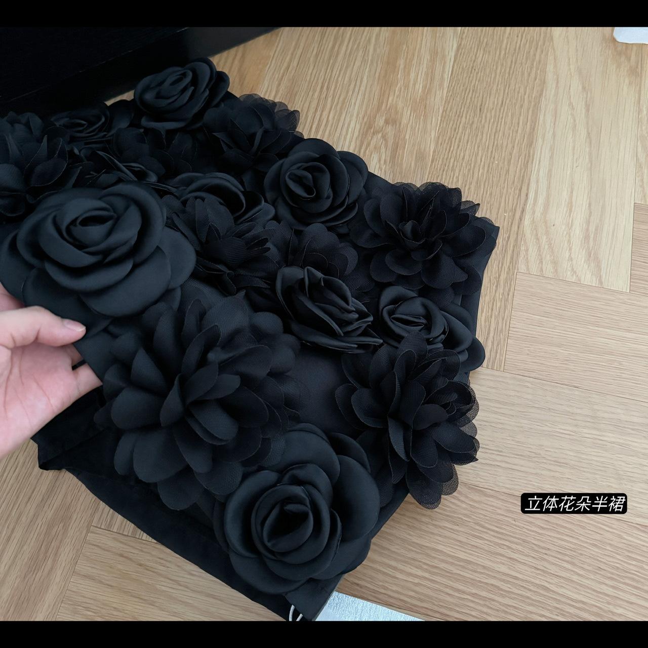 Falda de Traje Estilo Tweed para Mujer 2024 Otoño Nuevo de Alta Gama Flor Estéreo Cintura Alta Look Adelgazante Falda Línea A