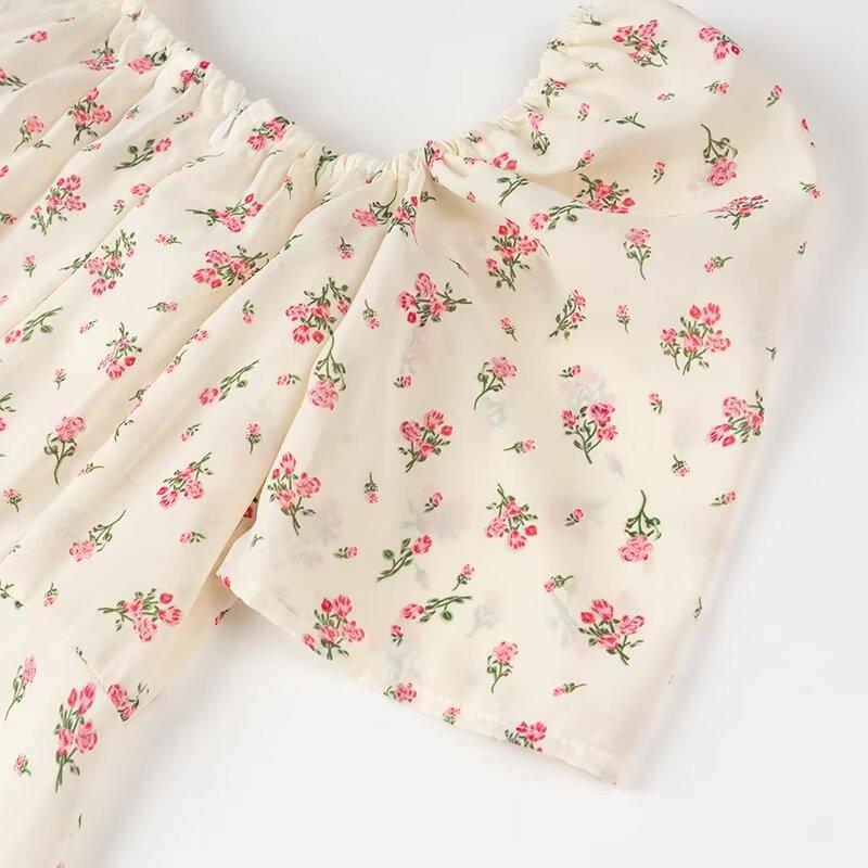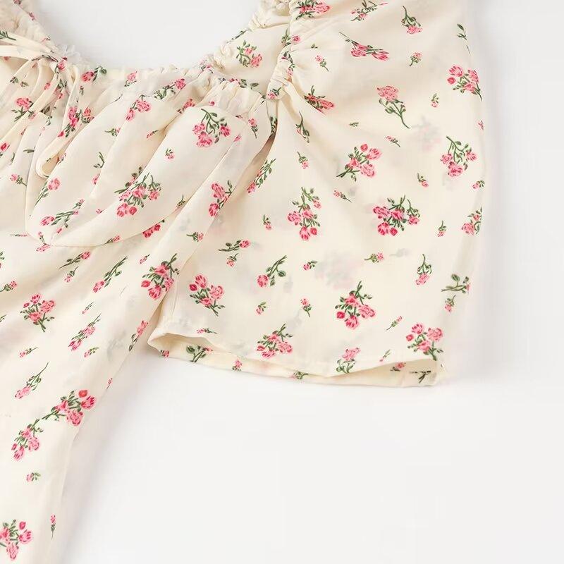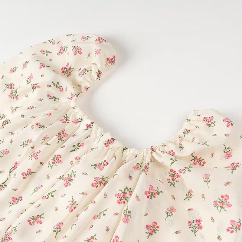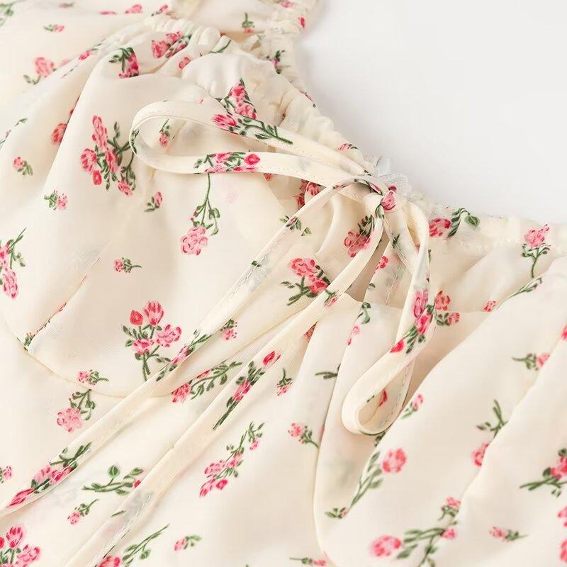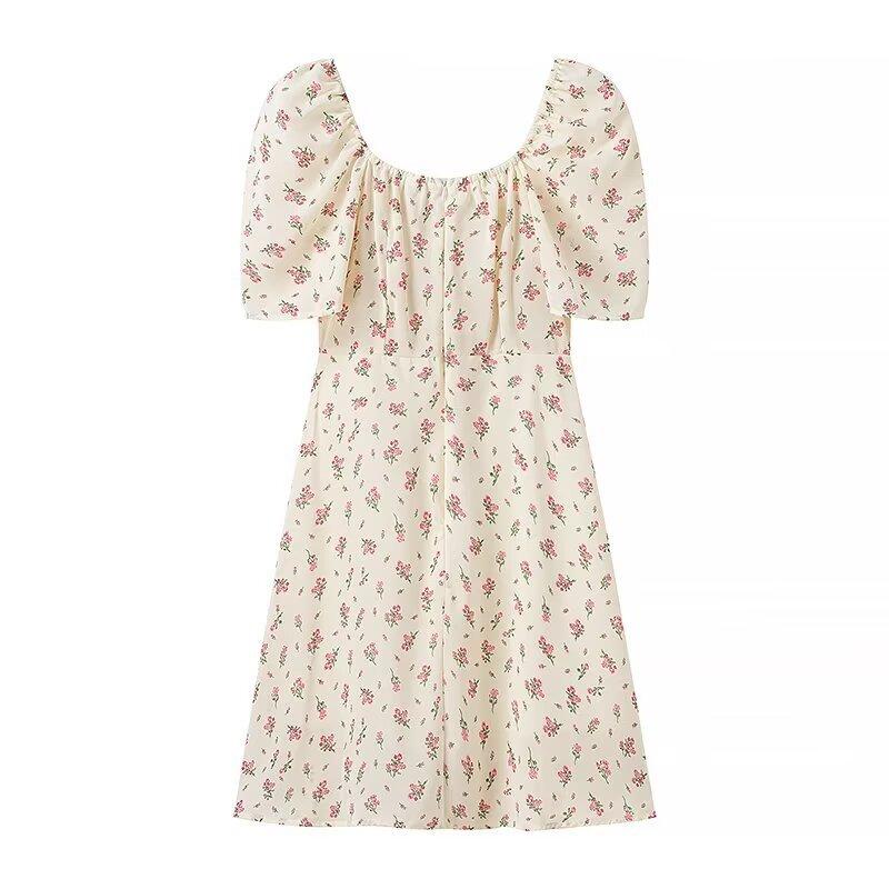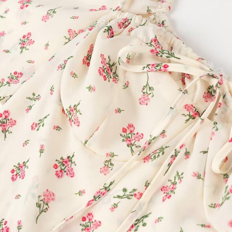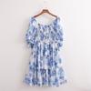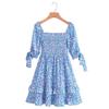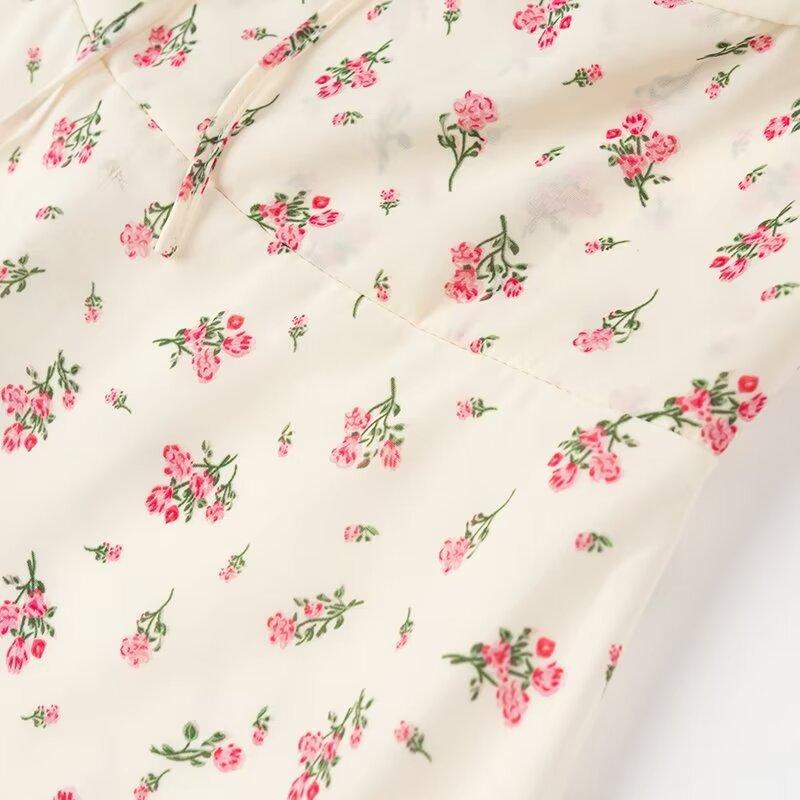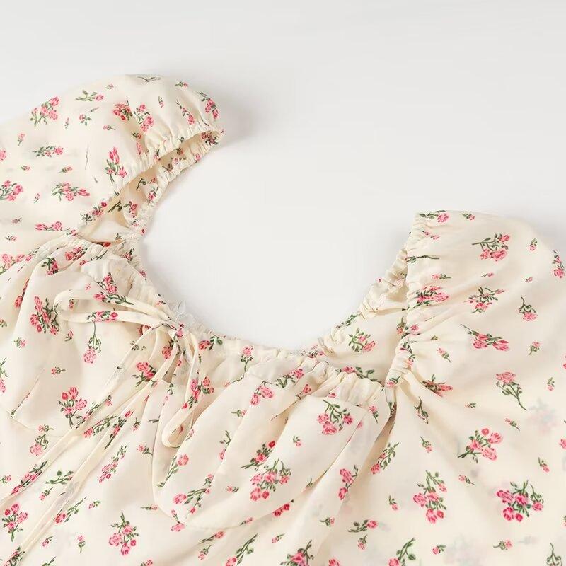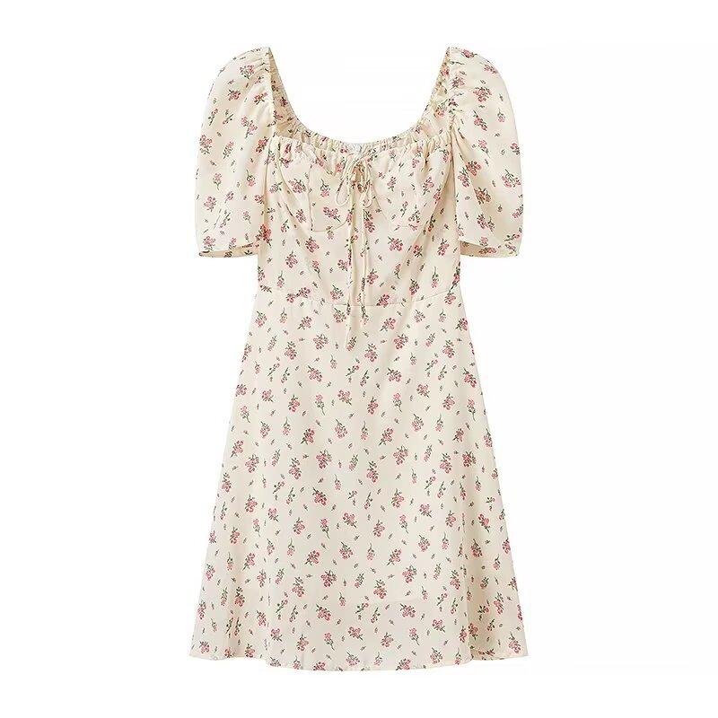Venta al por mayor 2024 verano nuevo estilo europeo y americano vestido de manga corta con encaje floral pequeño con cordones para mujer