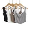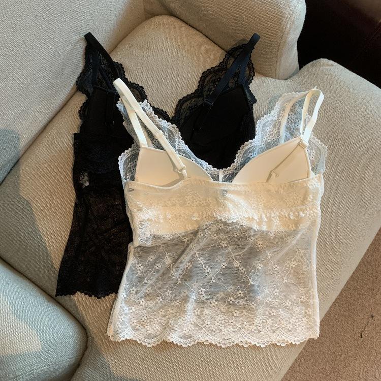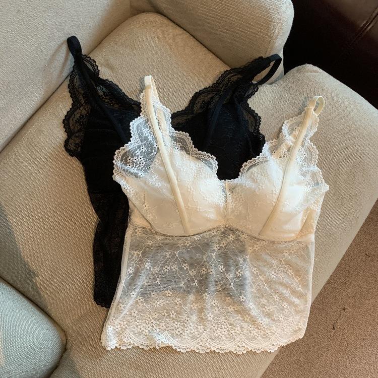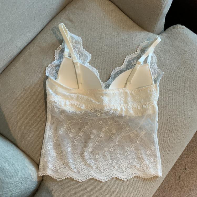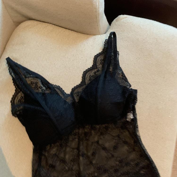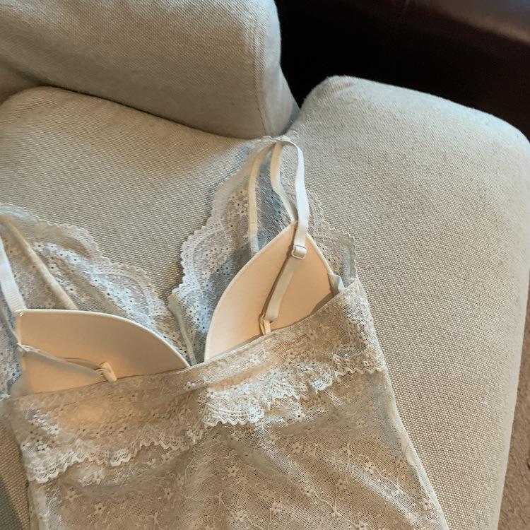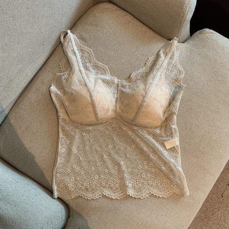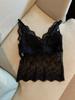 Camisola de Encaje a la Moda sin Espalda para Mujer, Top de Verano de Capa Base Corta Ajustada con Cuello en V