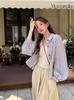 Chaqueta Camisa de Manga Larga a Rayas Estilo Coreano para Mujer Diseño Niche Holgado Fino Cárdigan Protector Solar Top