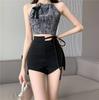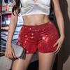 818# Nuevos pantalones cortos casuales de cintura alta europeos y americanos, pantalones cortos para mujer de alta elasticidad con lentejuelas, ropa de rendimiento de barra de talla grande