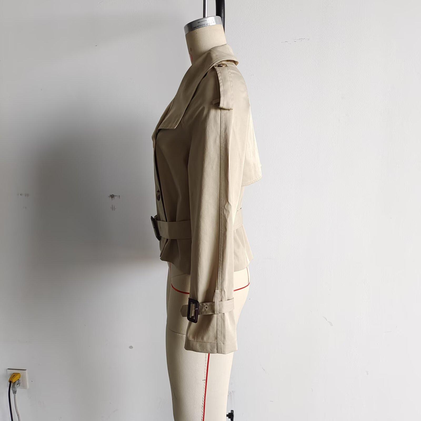 Abrigo Trench Corto Versátil Estilo Ropa de Trabajo Tendencia de Moda Estilo Europeo y Americano Nuevo Primavera 2025 con Hebilla en la Cintura Top de Mujer