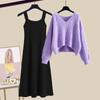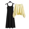 White sweater + black dress [set], Pink Sweater + Black Dress [Set], Purple Sweater + Black Dress [Set], Yello...