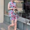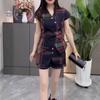 25568 Damei Ai Yuan Verano 2025 Nueva Moda Ajustado Irregular Top y Shorts Conjunto de Dos Piezas