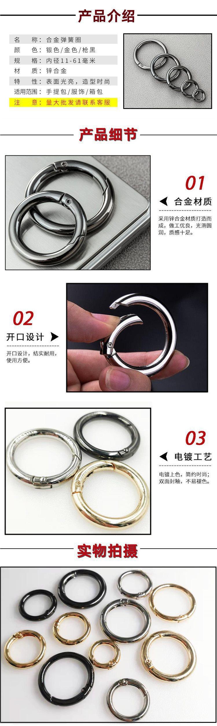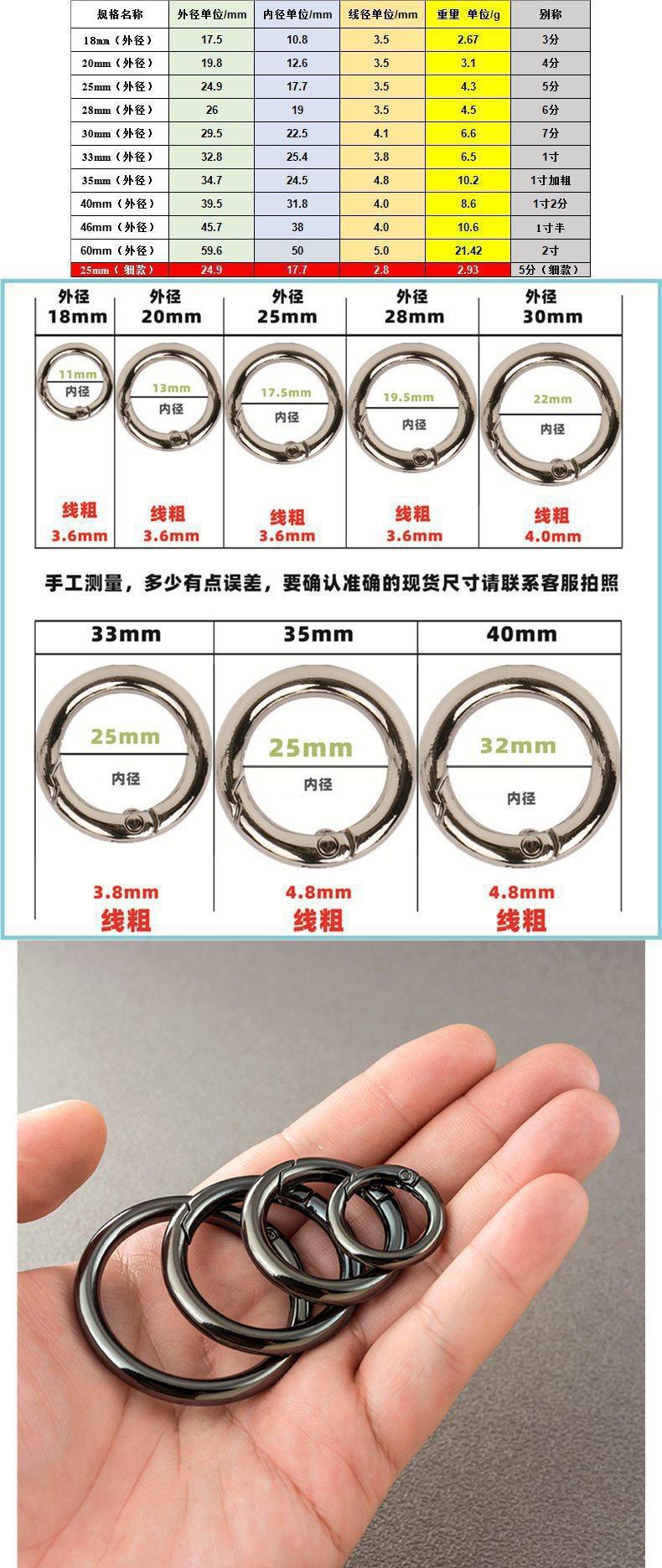 Anillo de resorte de aleación de zinc, hebilla redonda de metal, llavero de anillo abierto, correa de equipaje, hebilla colgante redonda, anillo de hierro de metal