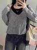 Otoño e Invierno Nuevo Sentido de Diseño de Nicho Suéter Holgado de Manga Corta y Cuello Redondo para Mujer Estilo Suave Top de Suéter Chic