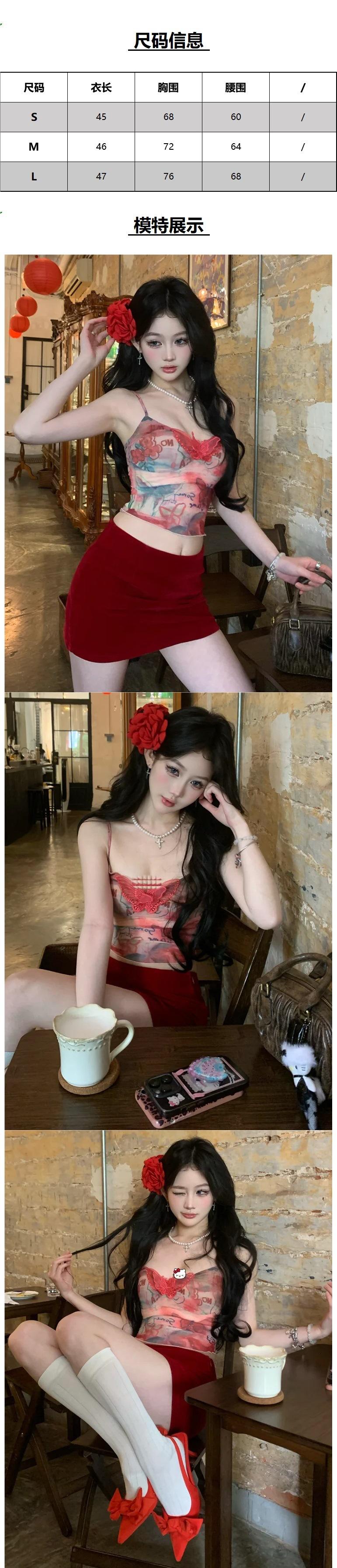 Camisola retro americana de mariposa para mujer nuevo verano sexy ajuste ceñido estilo deseo puro top corto para chica hot