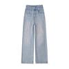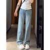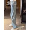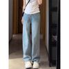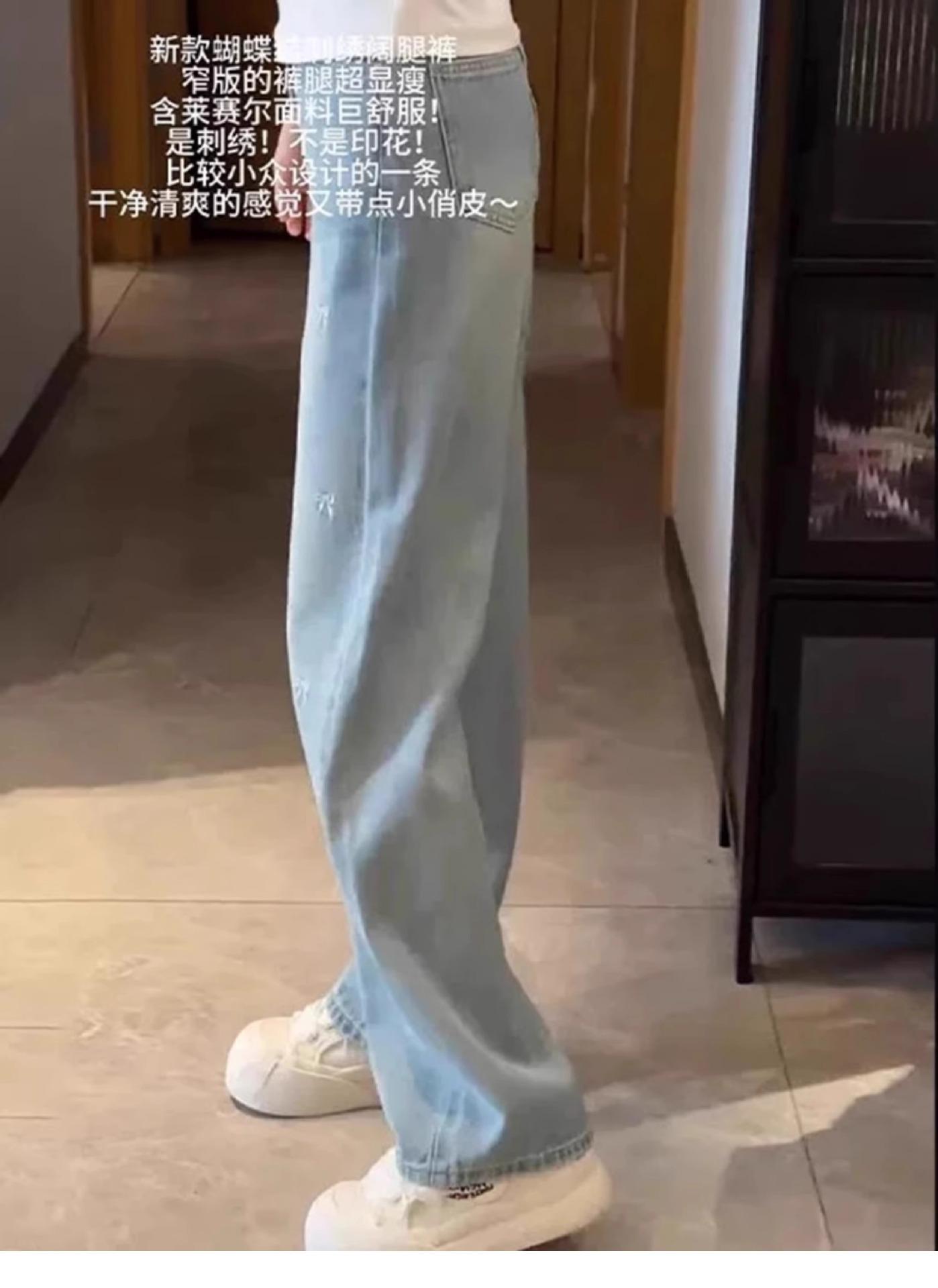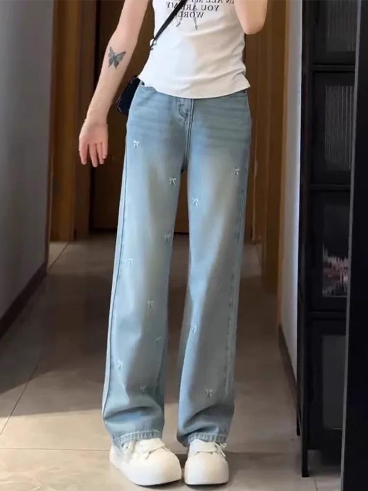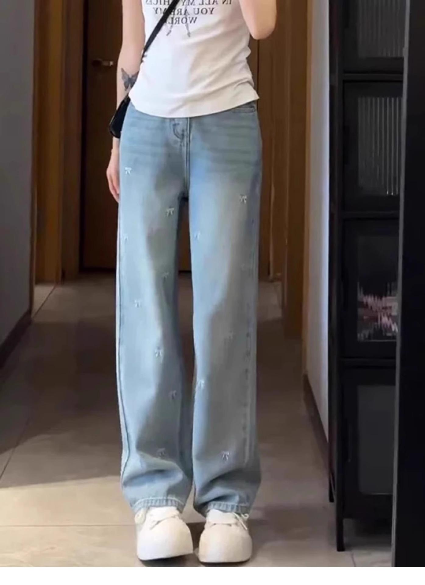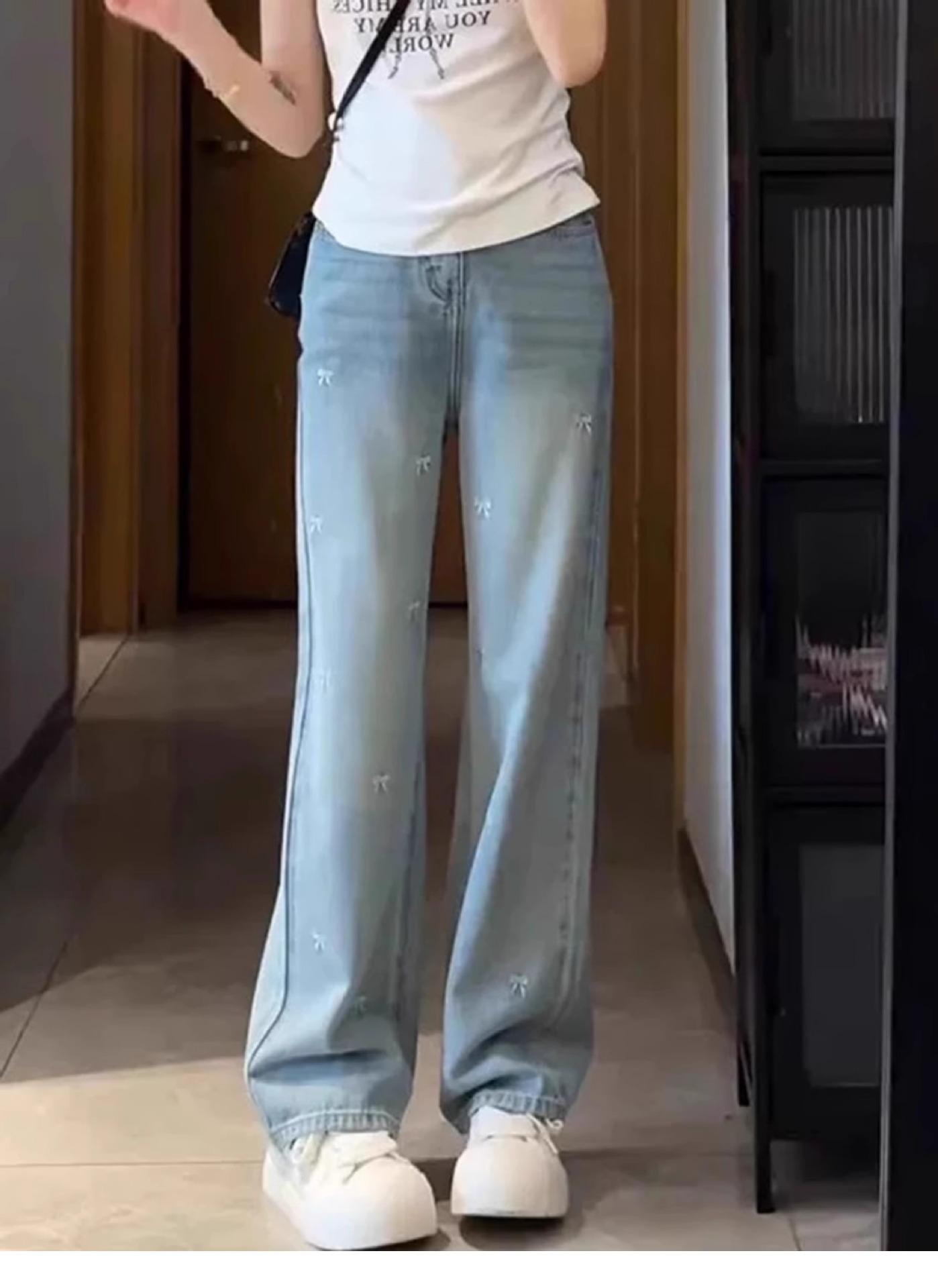 Jeans Bordados Azul Claro de Talla Grande para Mujeres en Verano Figura Gorda mm Forma de Pera Sueltos Cintura Alta Slim Rectos Pierna Ancha