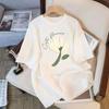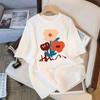 Camiseta de Algodón de Mariposa de Manga Corta para Mujer Blanca Verano 2025 Nuevo Diseño Nicho Holgado Top de Media Manga
