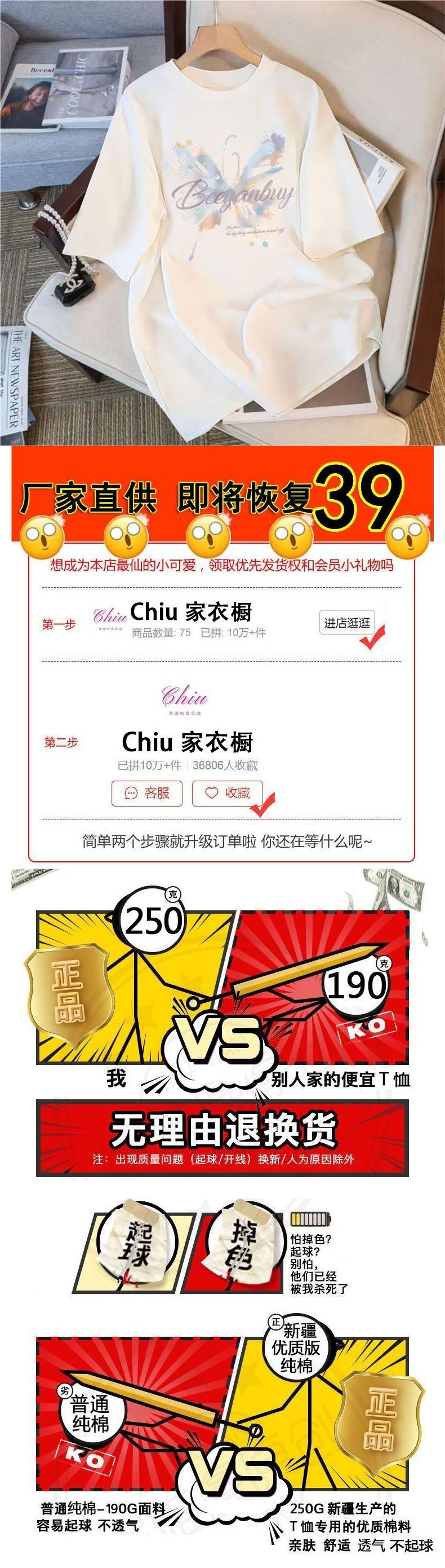 Heavyweight pure cotton white [single crystal butterfly chest logo], Heavyweight pure cotton black [single cry...