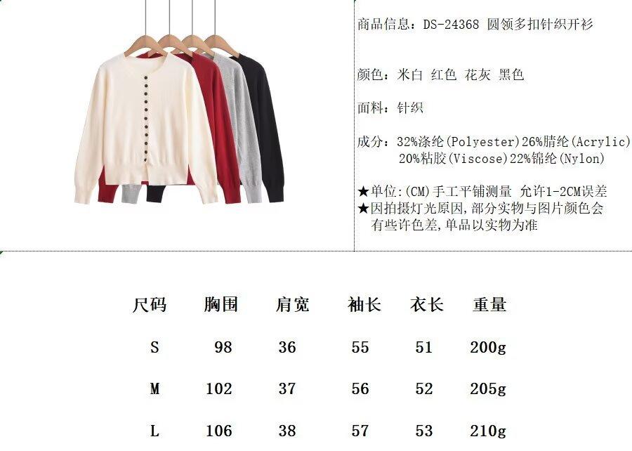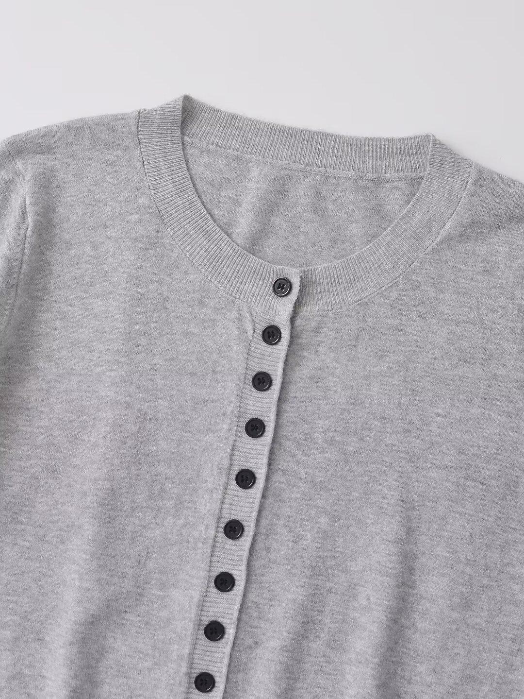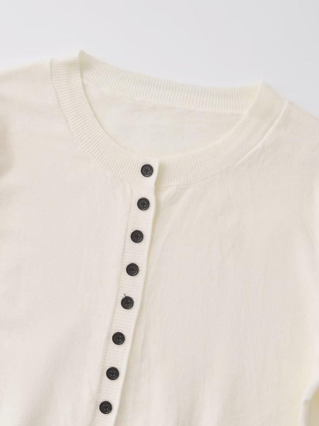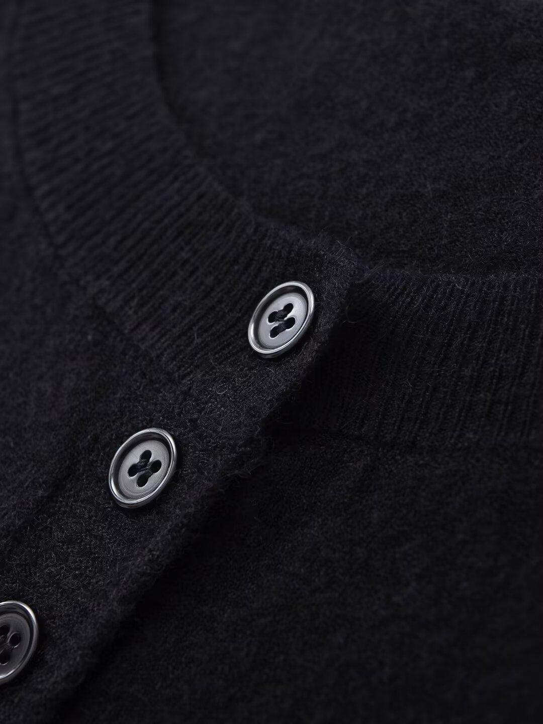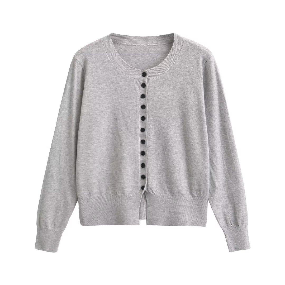 2024 Principios de Otoño Nuevo Estilo Coreano Negro Botón Cuello Redondo Sencillo Combinable Suéter de Manga Larga para Mujer Suéter de Ocio Puro