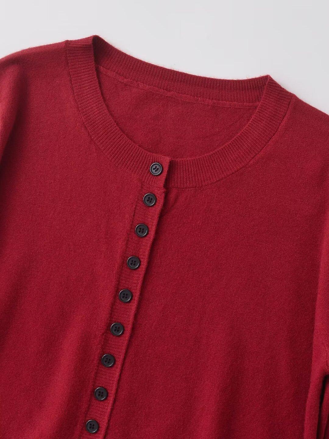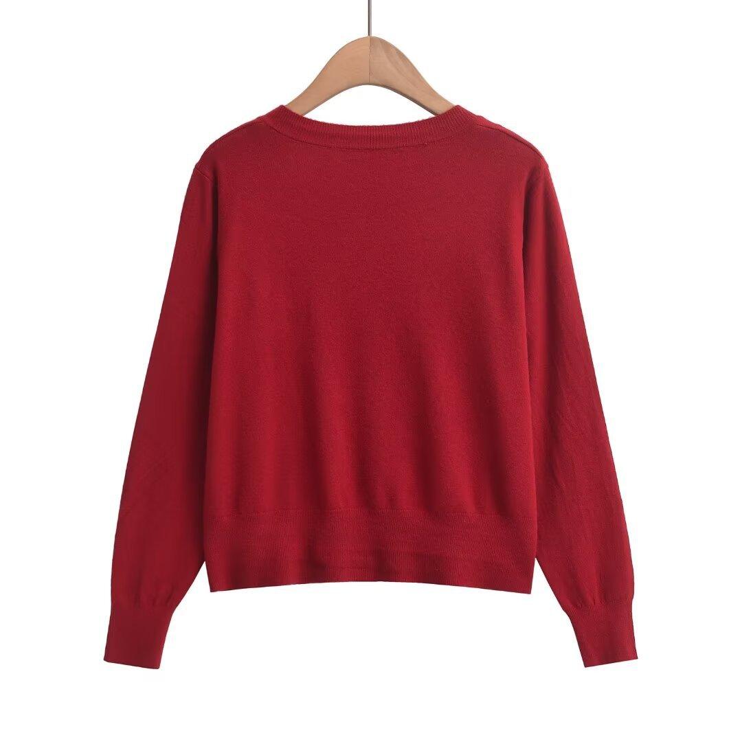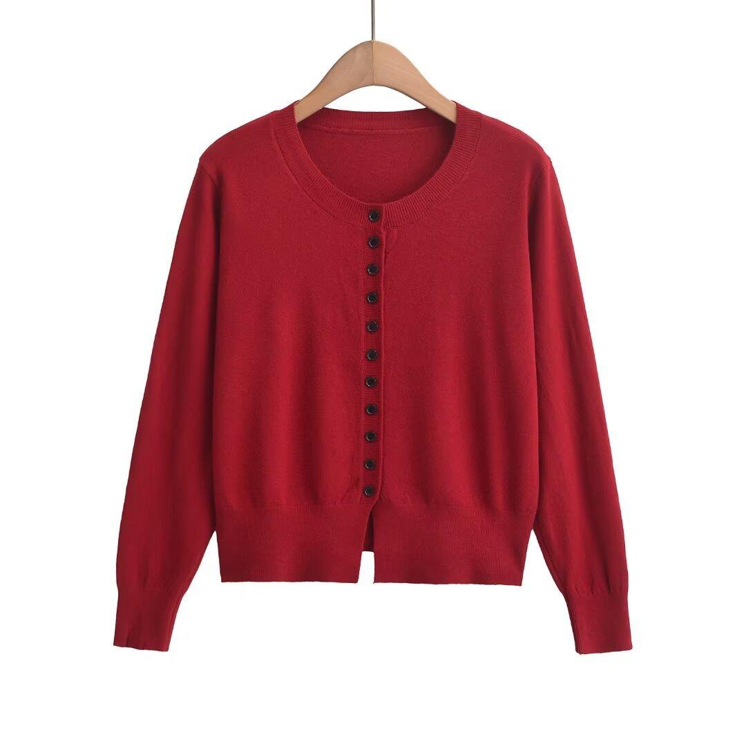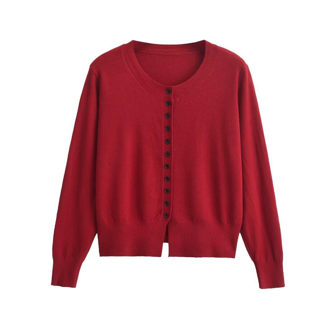 2024 Principios de Otoño Nuevo Estilo Coreano Negro Botón Cuello Redondo Sencillo Combinable Suéter de Manga Larga para Mujer Suéter de Ocio Puro