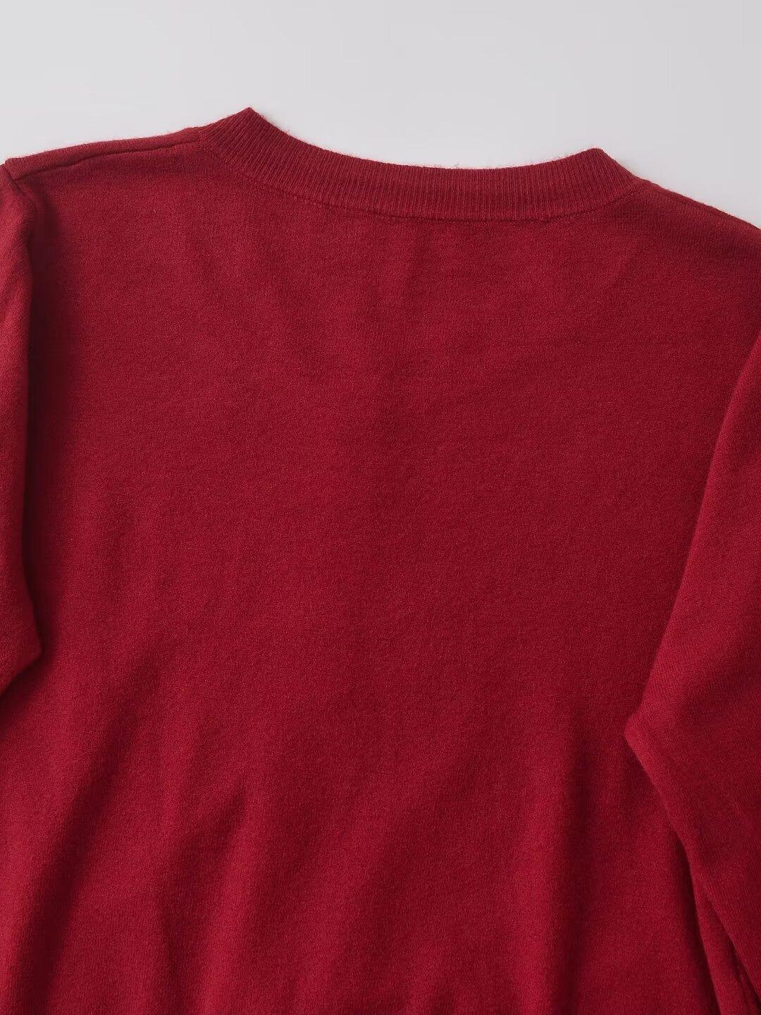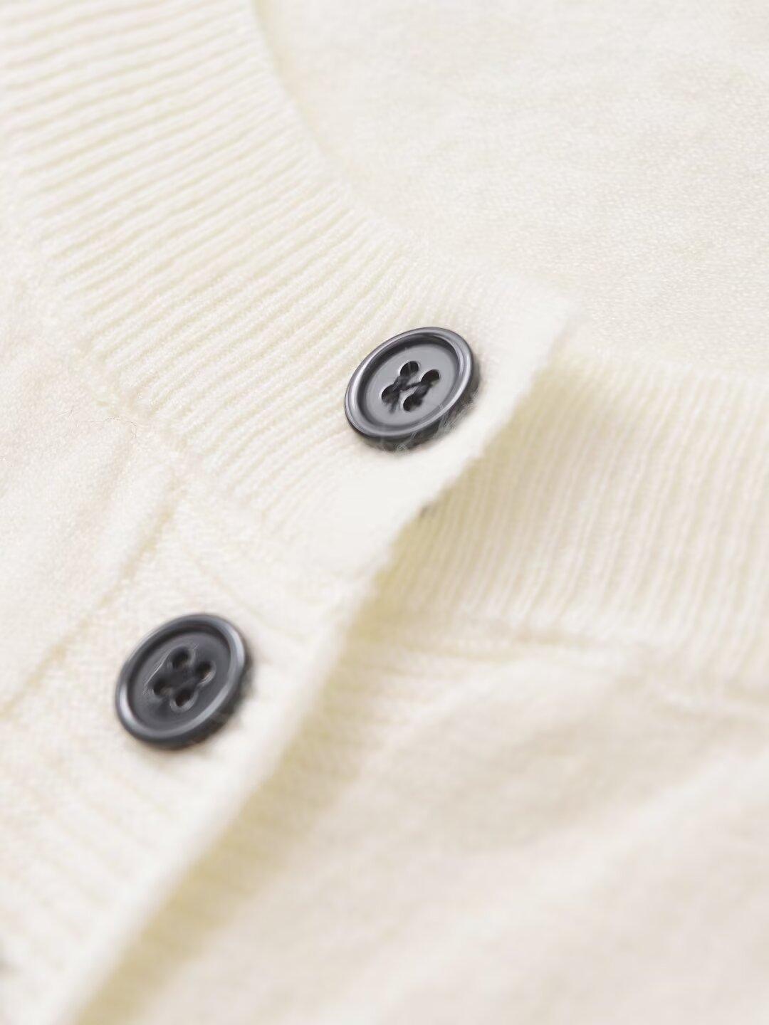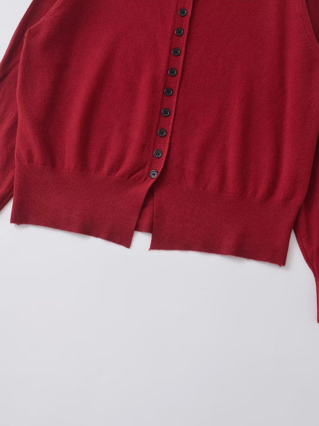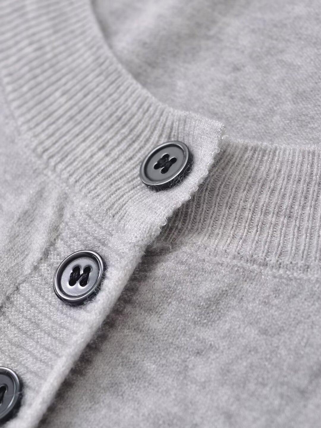 2024 Principios de Otoño Nuevo Estilo Coreano Negro Botón Cuello Redondo Sencillo Combinable Suéter de Manga Larga para Mujer Suéter de Ocio Puro