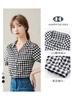 Camisa de Manga Corta a Cuadros Blancos y Negros para Mujer Verano Nuevo Diseño Estilo Coreano Holgada Casual para Mujer Top Pequeño Fresco
