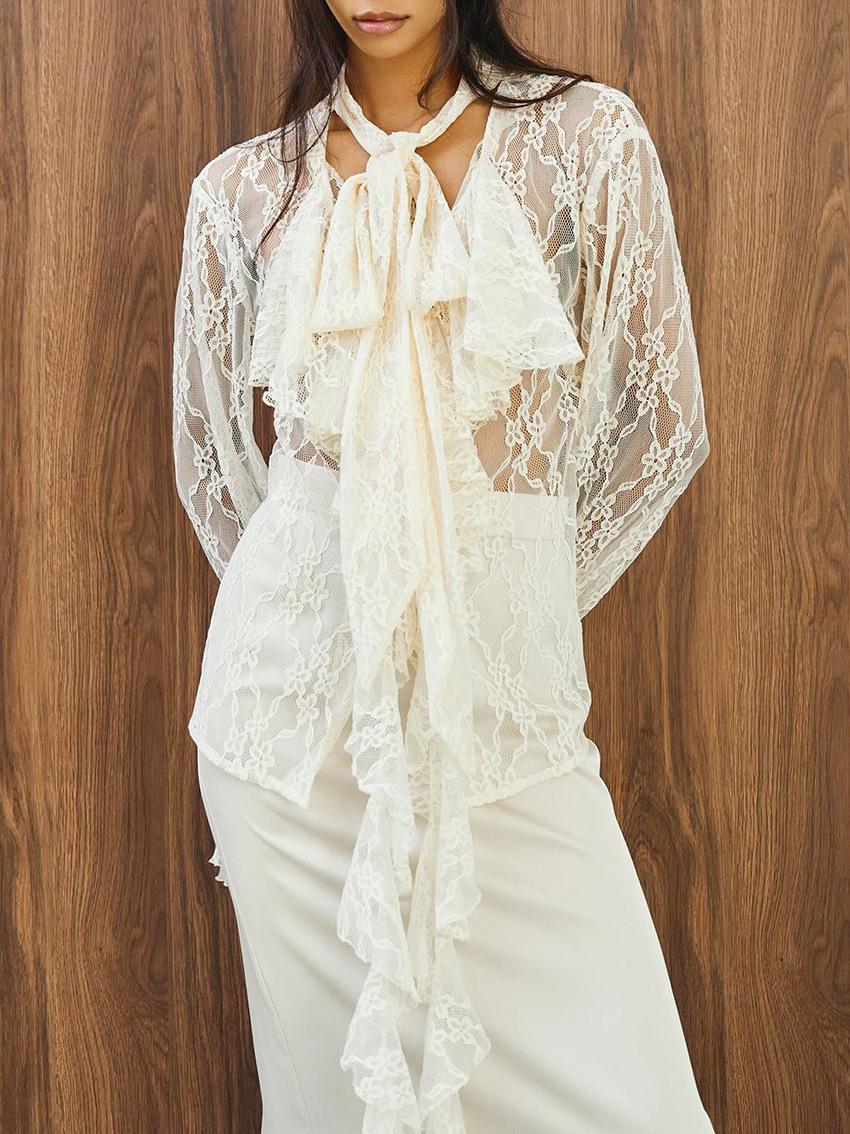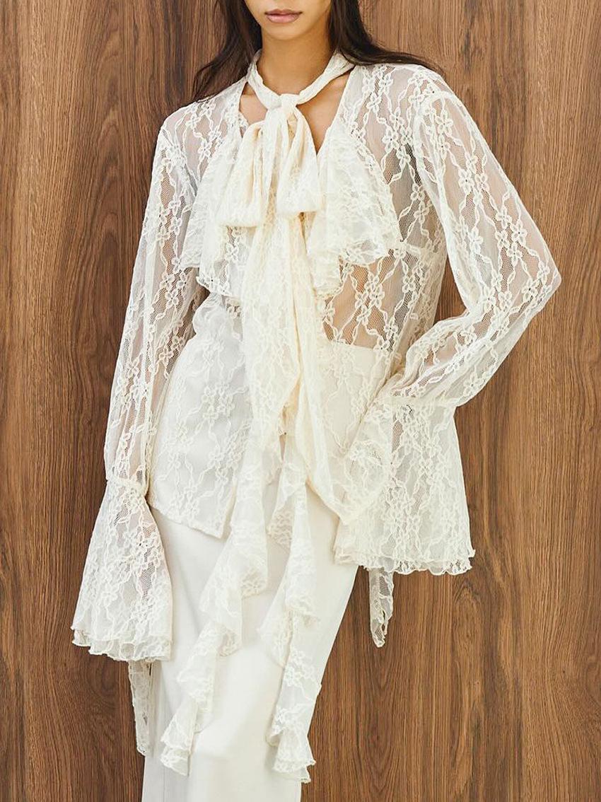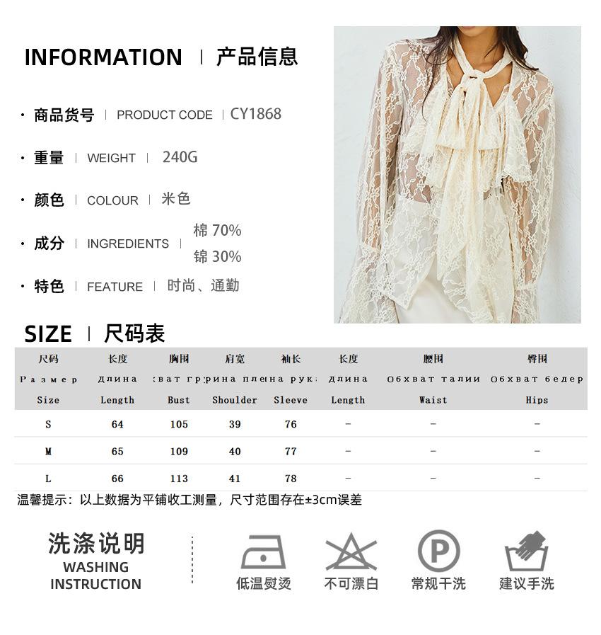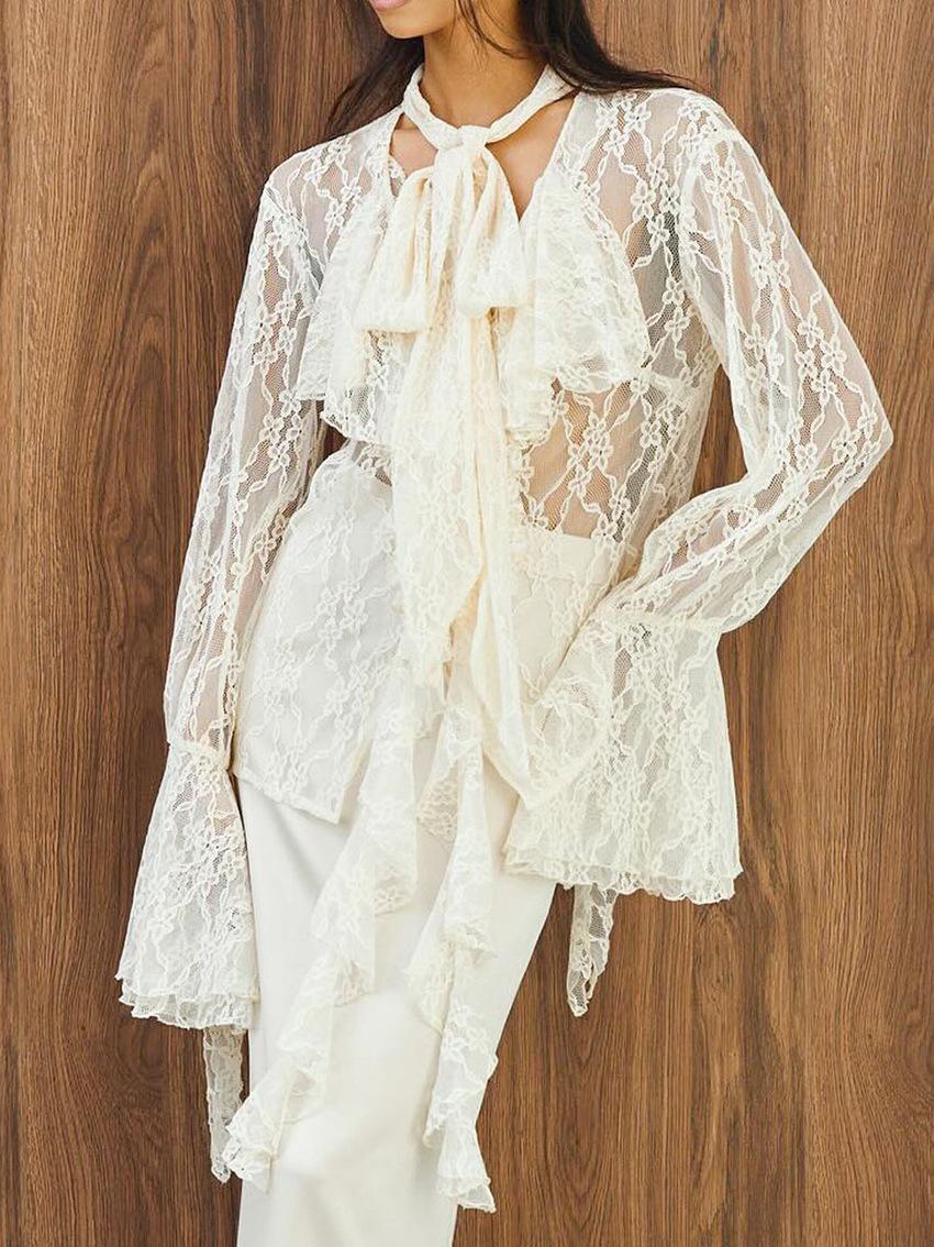 Diseño de Camisa de Manga Larga con Encaje y Lazo de Cuello en V para Otoño 2025, Elegante, a la Moda, Ropa de Trabajo Transfronteriza Europea y Americana