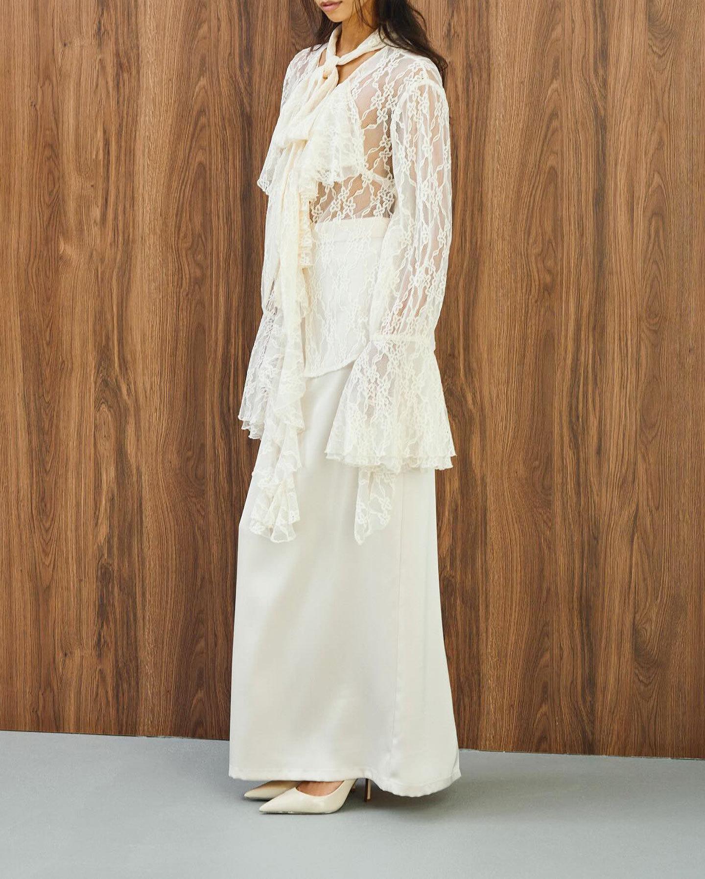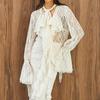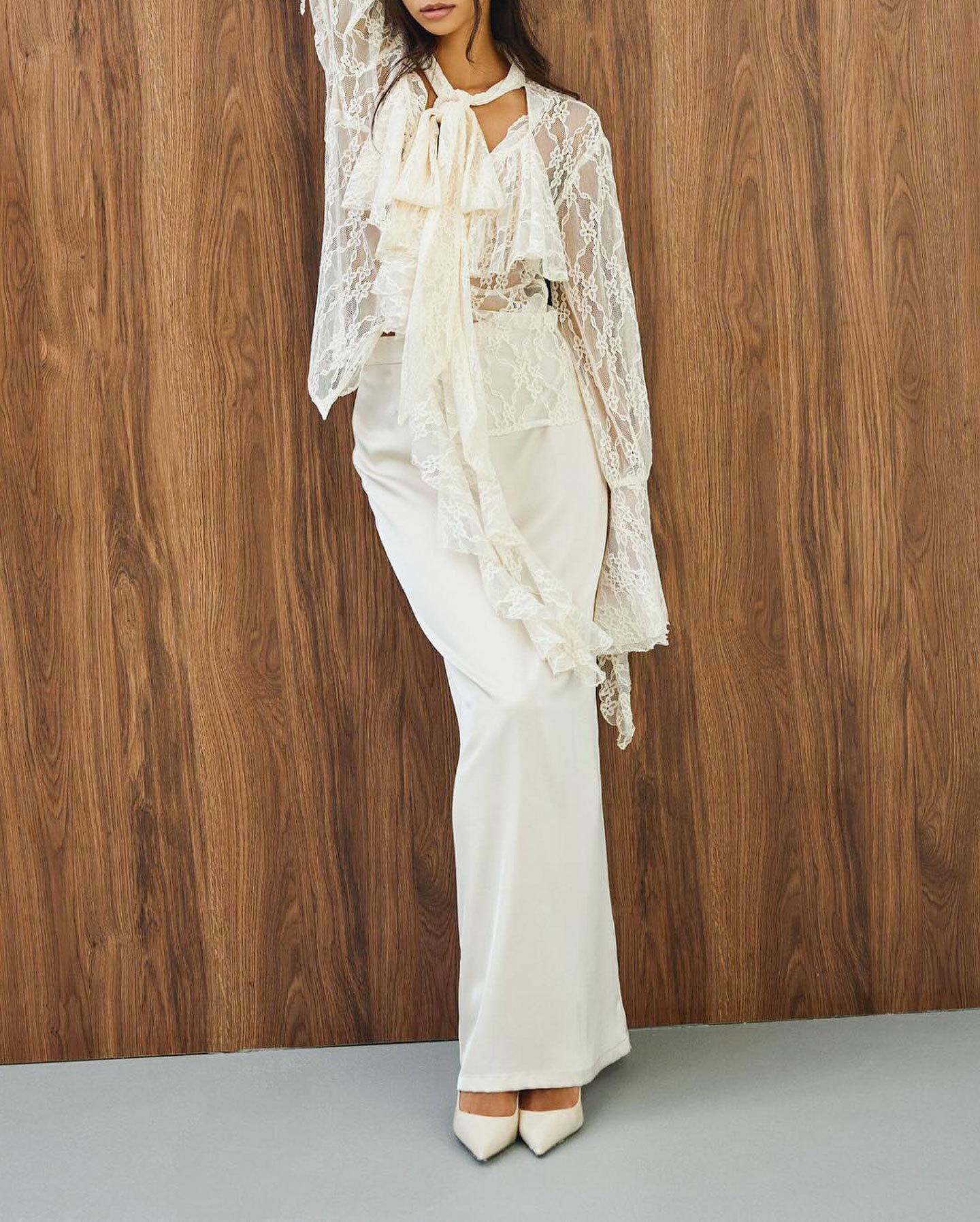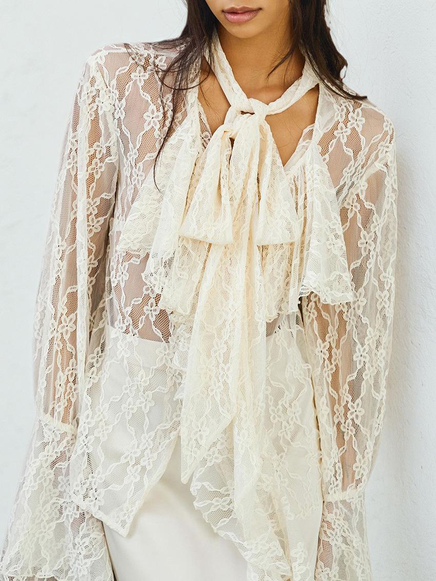 Diseño de Camisa de Manga Larga con Encaje y Lazo de Cuello en V para Otoño 2025, Elegante, a la Moda, Ropa de Trabajo Transfronteriza Europea y Americana
