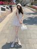 Ropa de mujer de seda naranja #2025 verano dulce cintura alta falda abullonada lazo falda pastel versátil delgada falda línea A