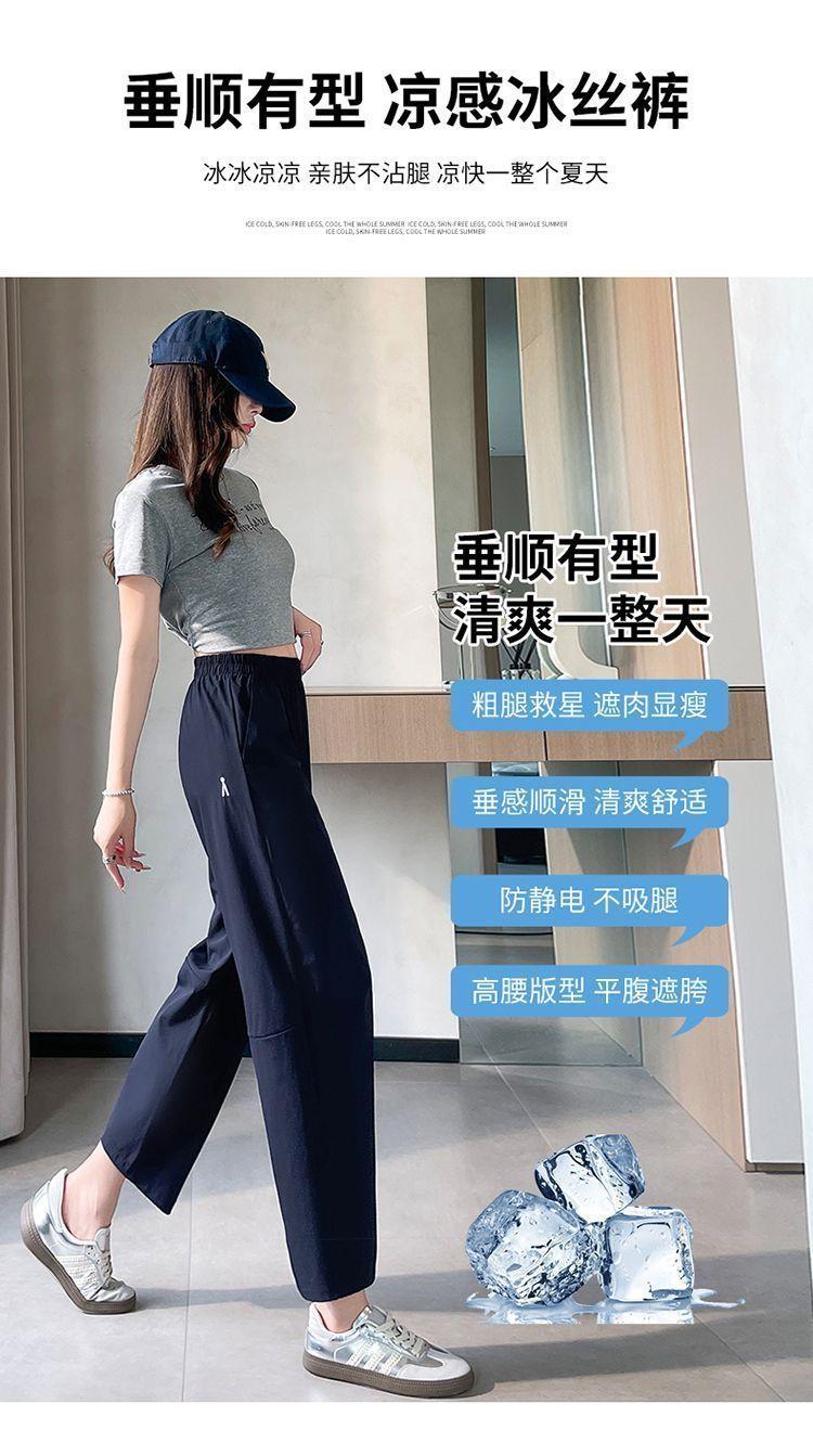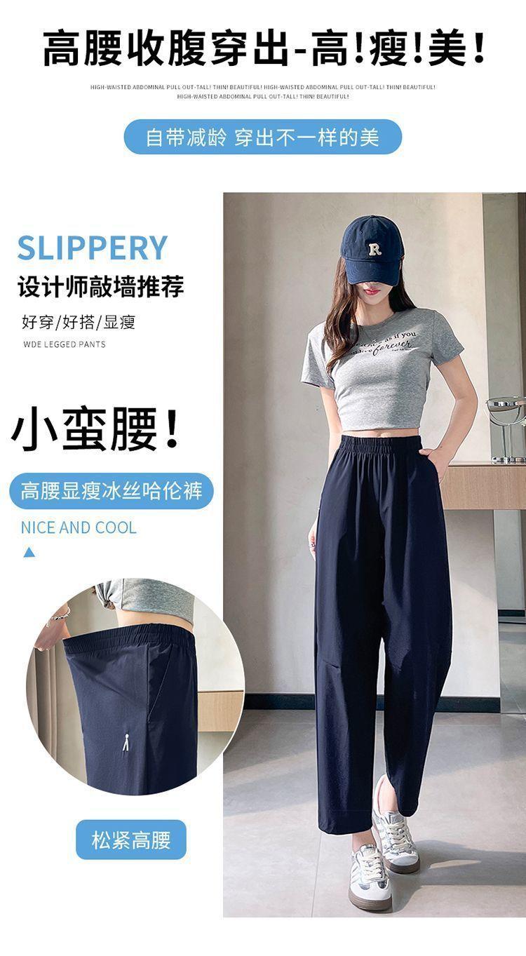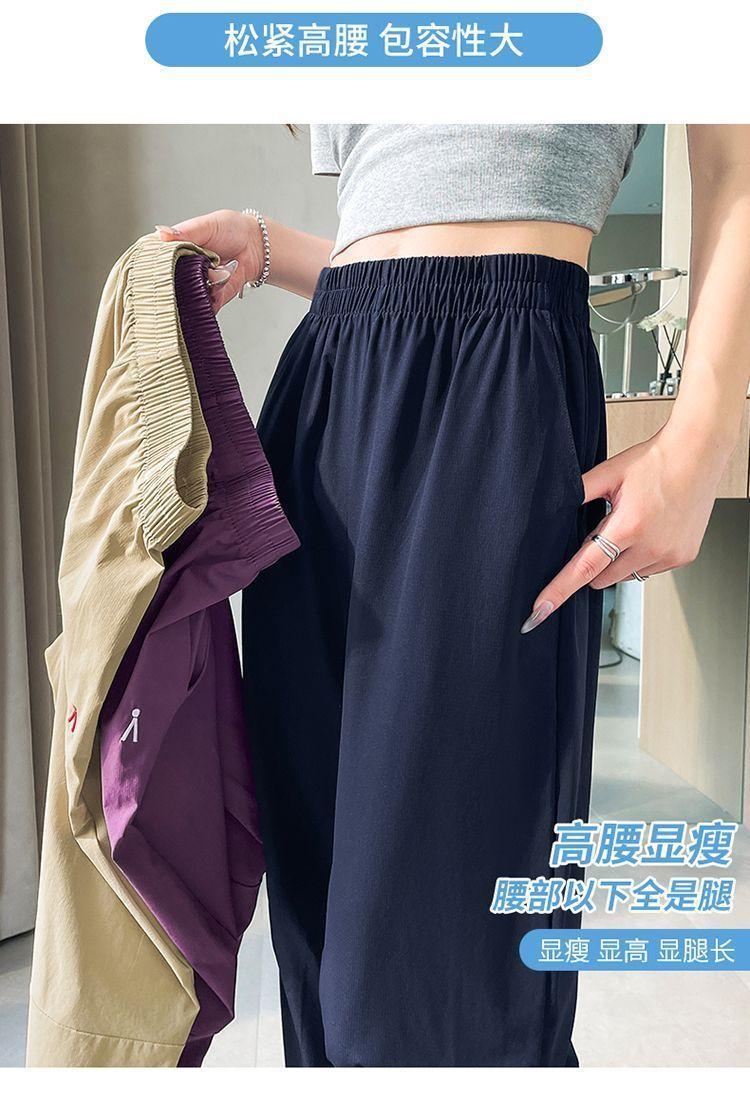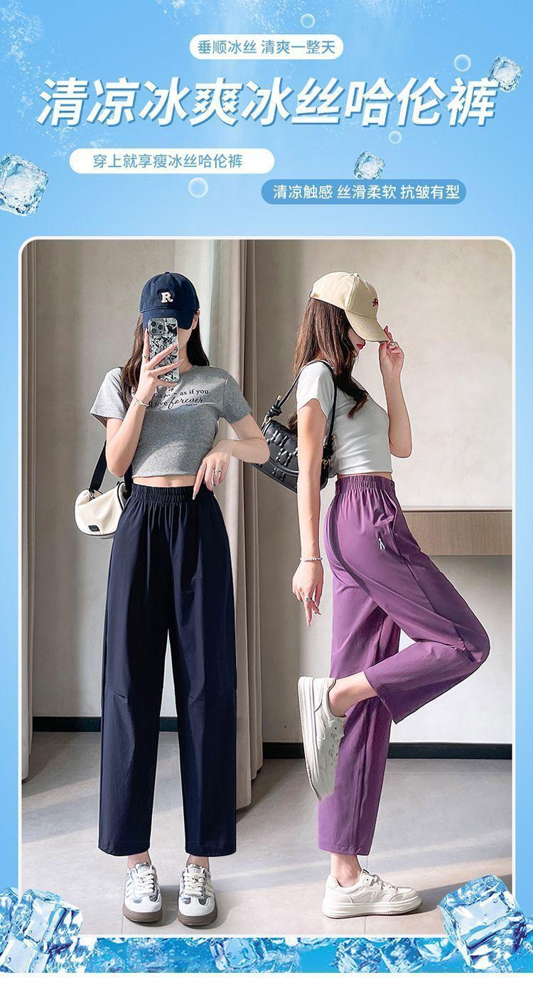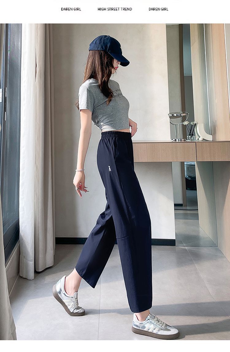 Pantalones Deportivos Transpirables de Secado Rápido de Seda de Hielo Fresco de Verano para Mujer, Casuales Holgados Petites Harem, Pantalones de Talla Grande