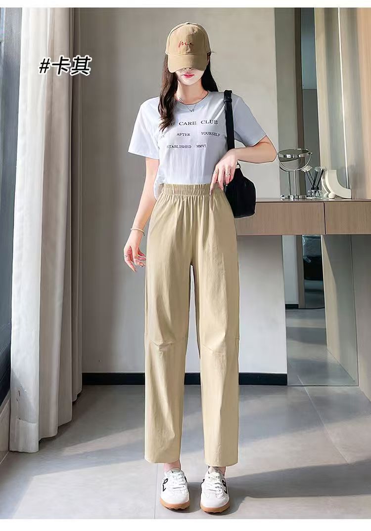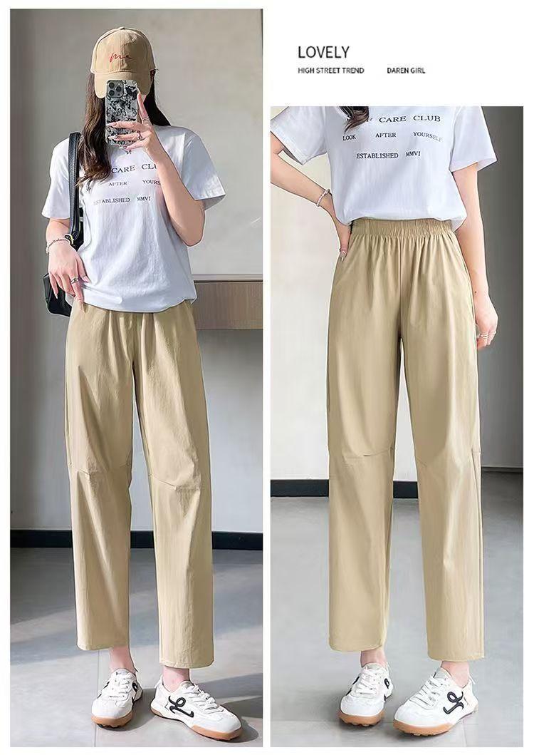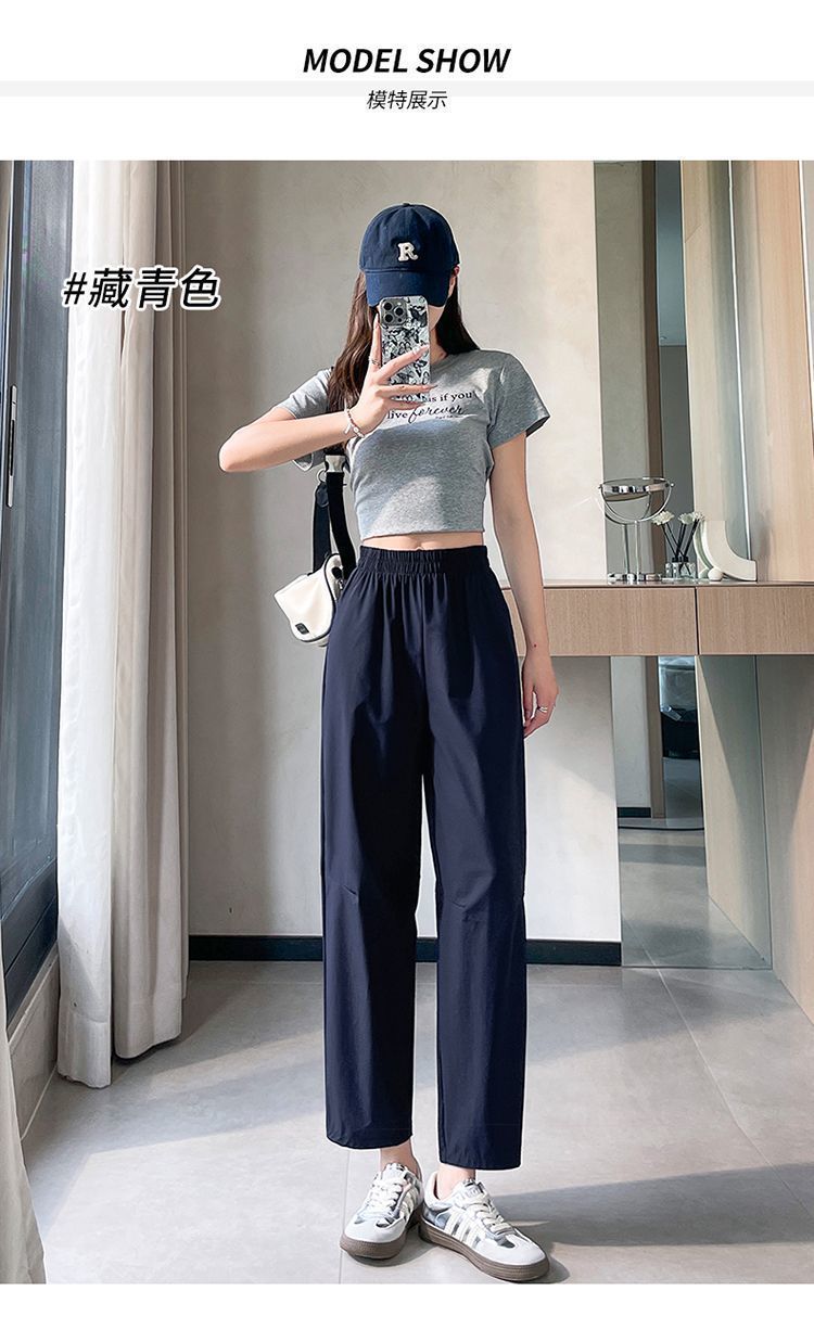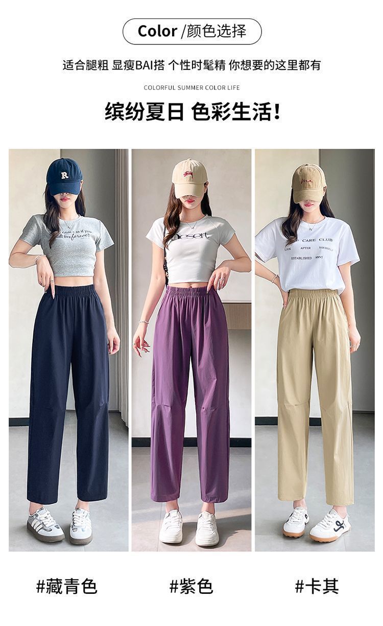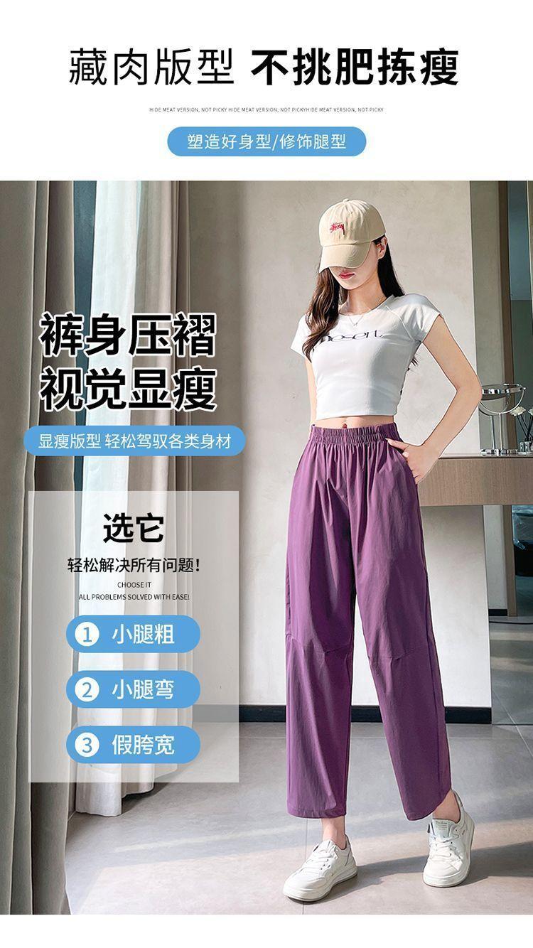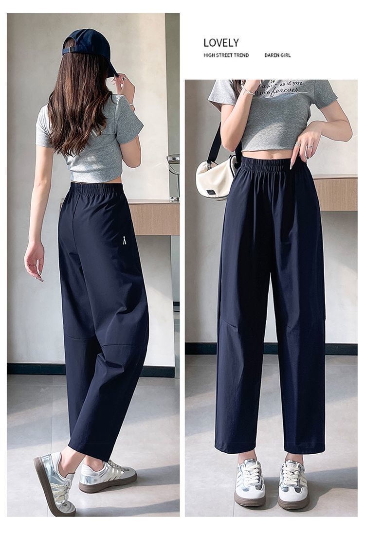 Pantalones Deportivos Transpirables de Secado Rápido de Seda de Hielo Fresco de Verano para Mujer, Casuales Holgados Petites Harem, Pantalones de Talla Grande