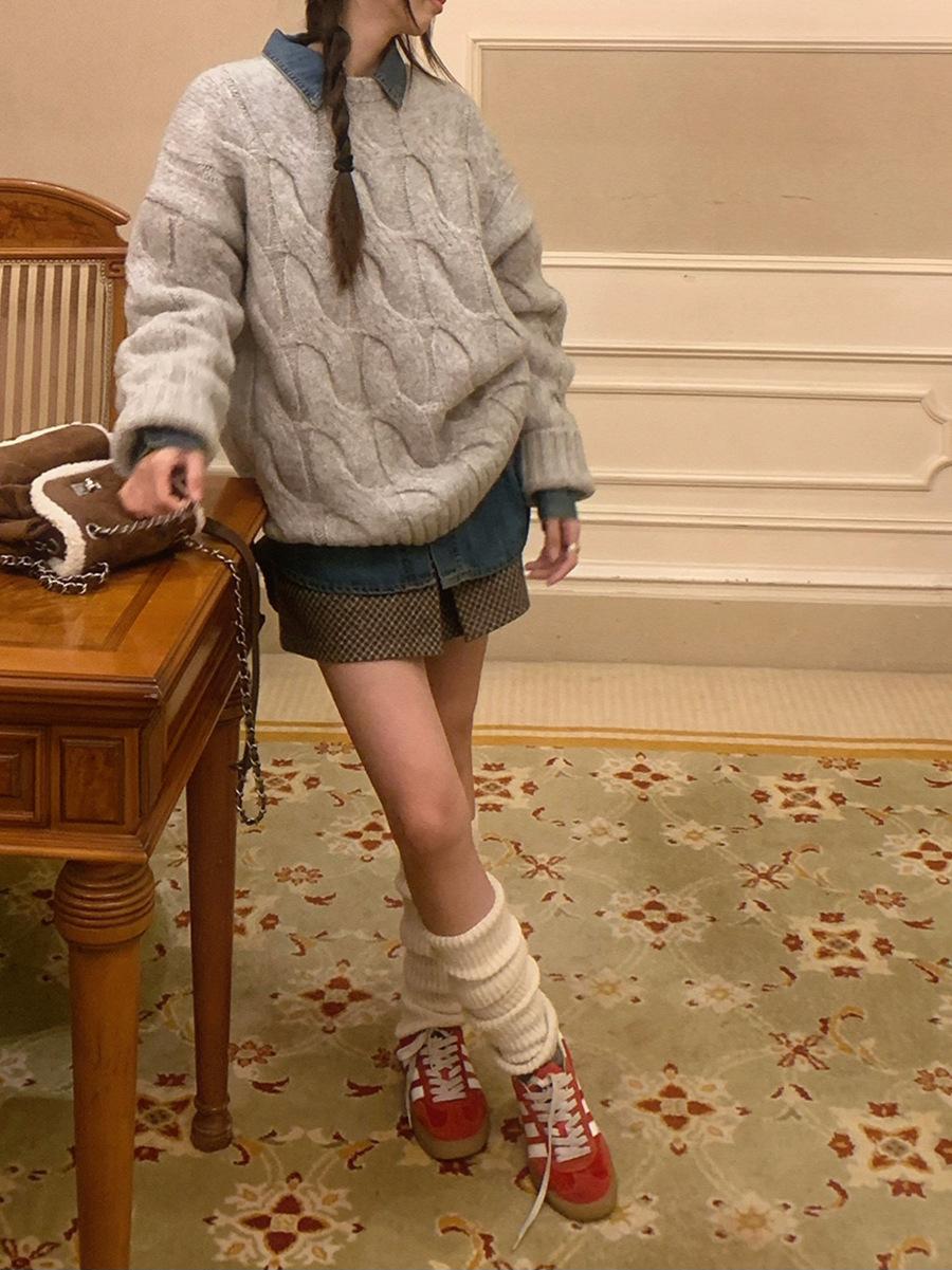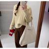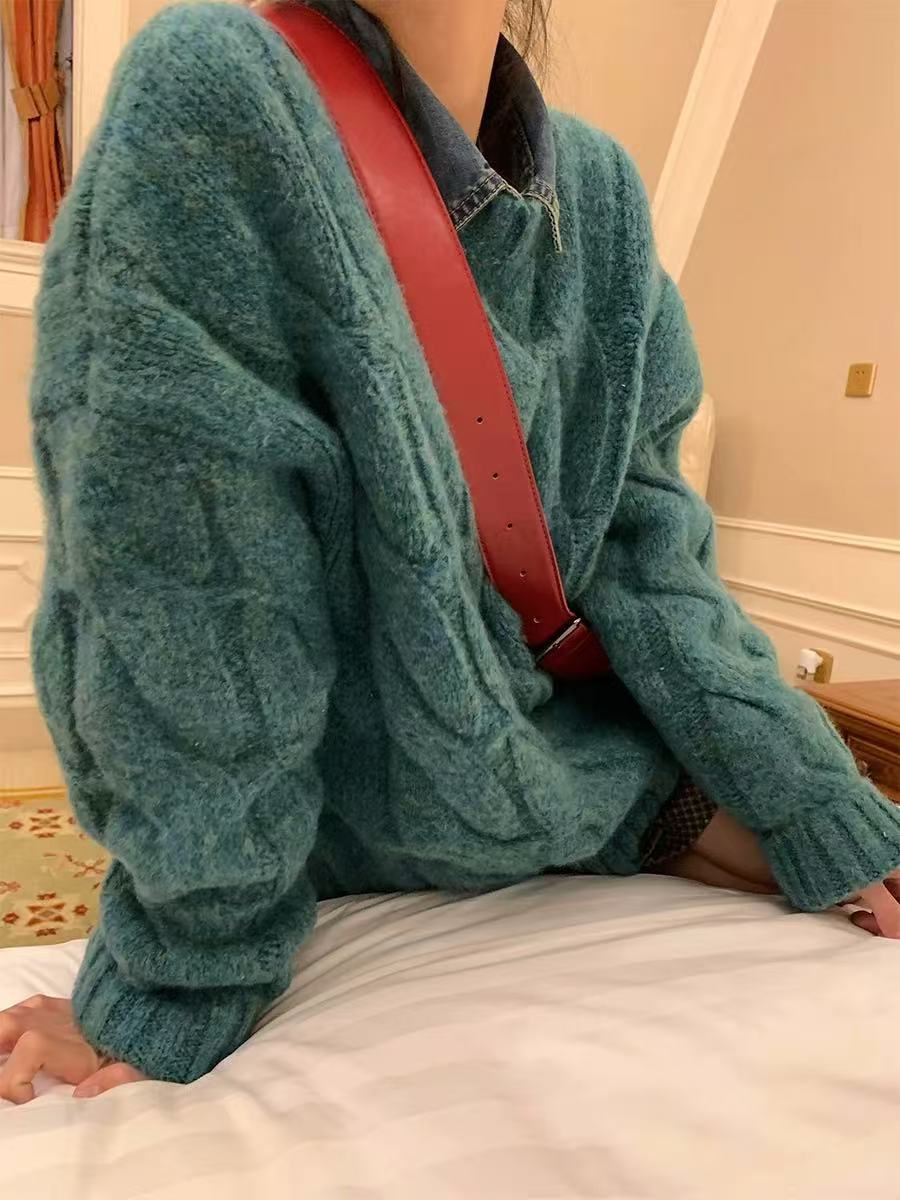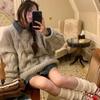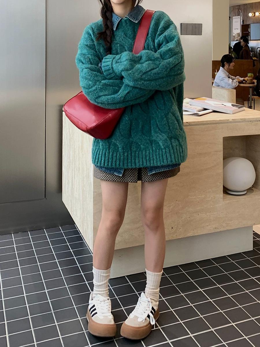 Suéter Casual con Trenzas para Mujer, Tendencia de Moda Otoño e Invierno, Estilo Lindo Holgado Relajado, Top de Punto Pulóver, Beige Floral