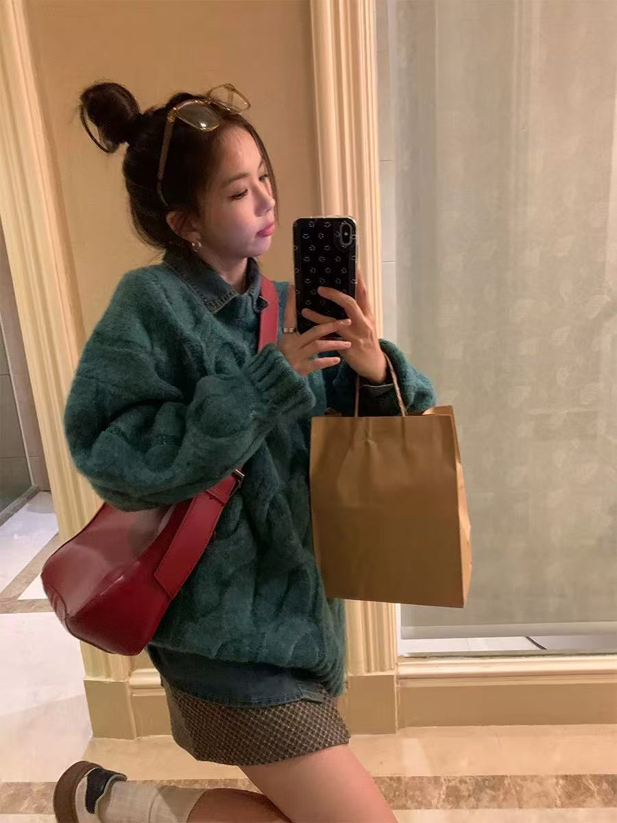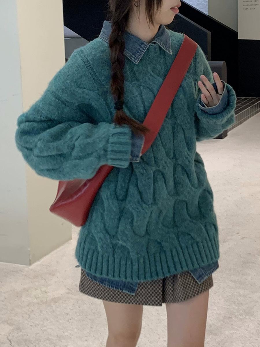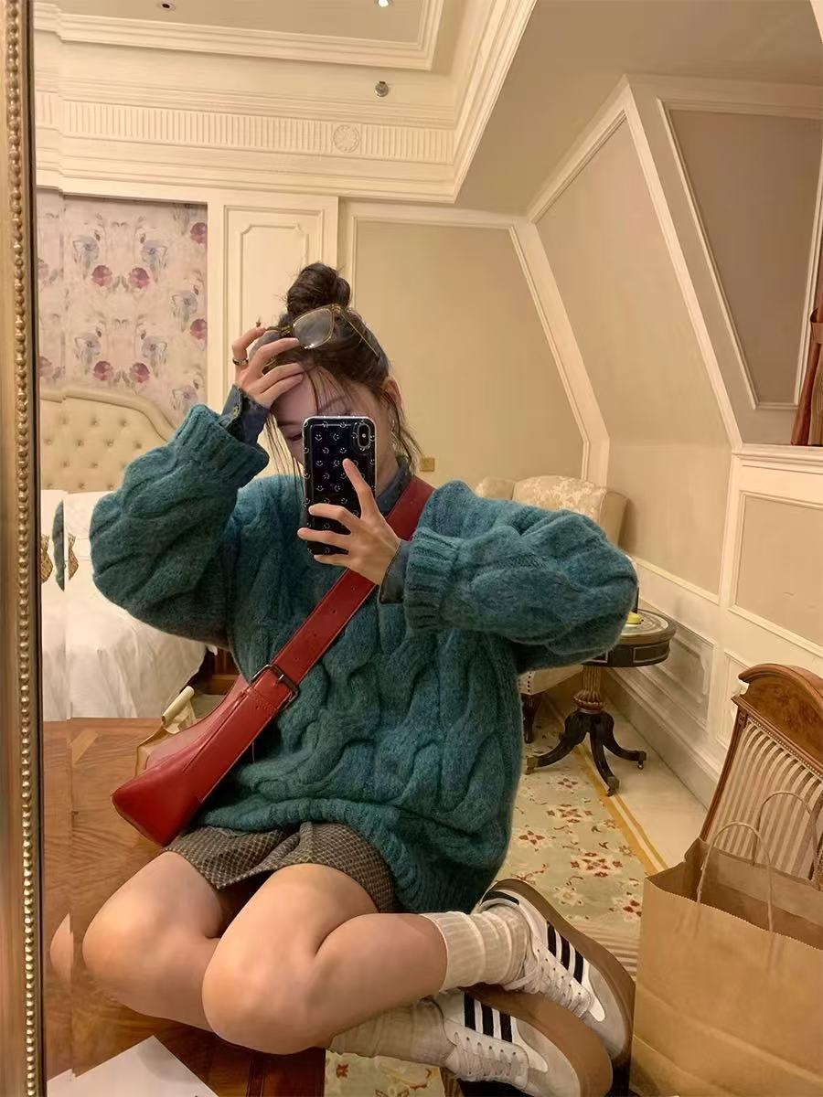 Suéter Casual con Trenzas para Mujer, Tendencia de Moda Otoño e Invierno, Estilo Lindo Holgado Relajado, Top de Punto Pulóver, Beige Floral