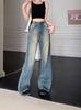 Jeans Vintage Holgados de Pierna Recta para Mujer Talla Extra con Diseño Patchwork, Pantalones Retro de Cintura Alta y Pierna Ancha