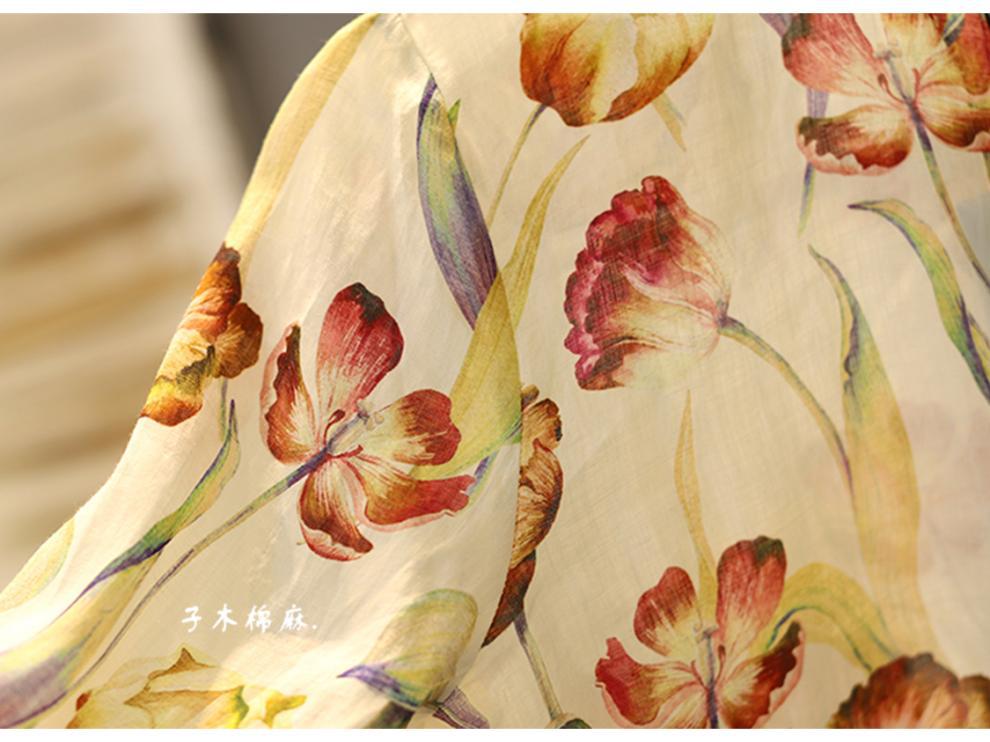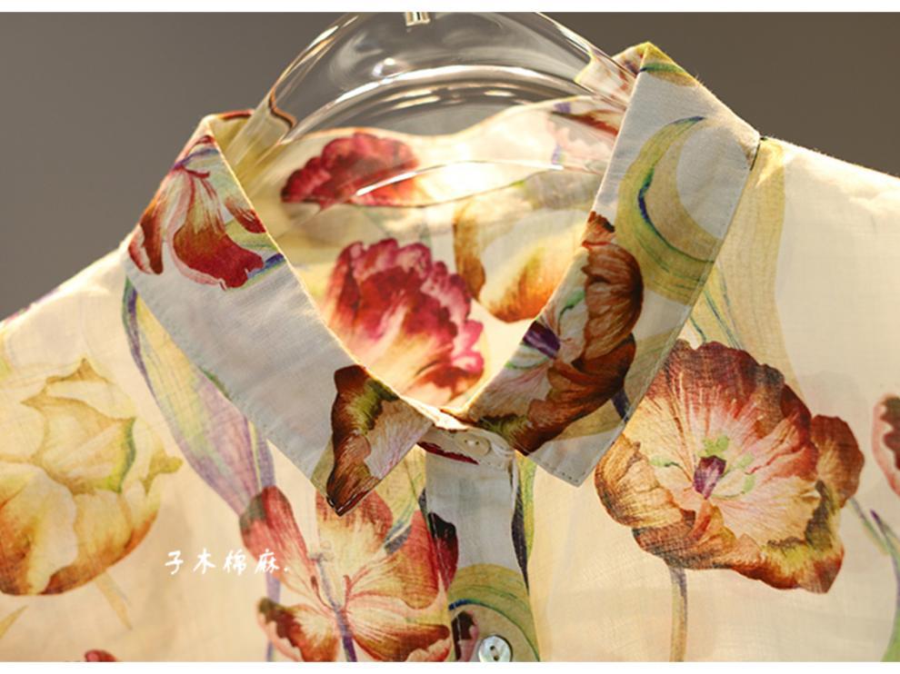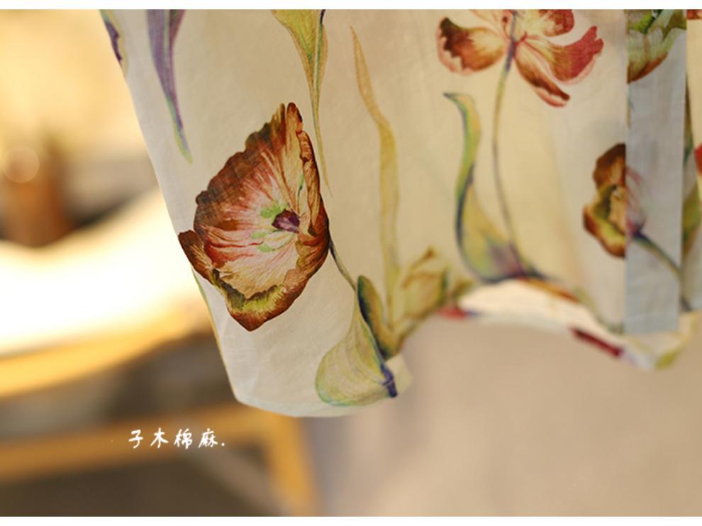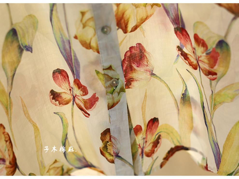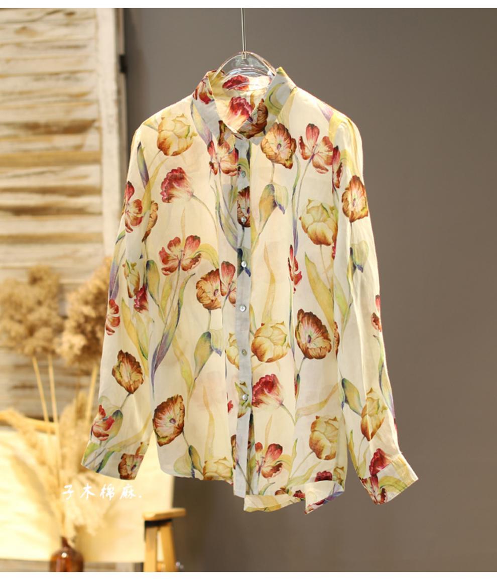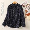 En stock Primavera y Otoño 2025 Nuevo Retro Suelto Manga Larga Moda Estampado Floral Transpirable Literario Camisa Top de Mujer