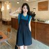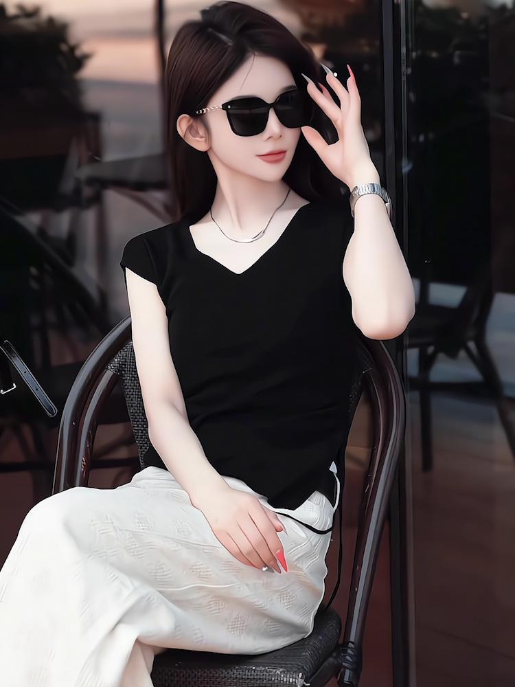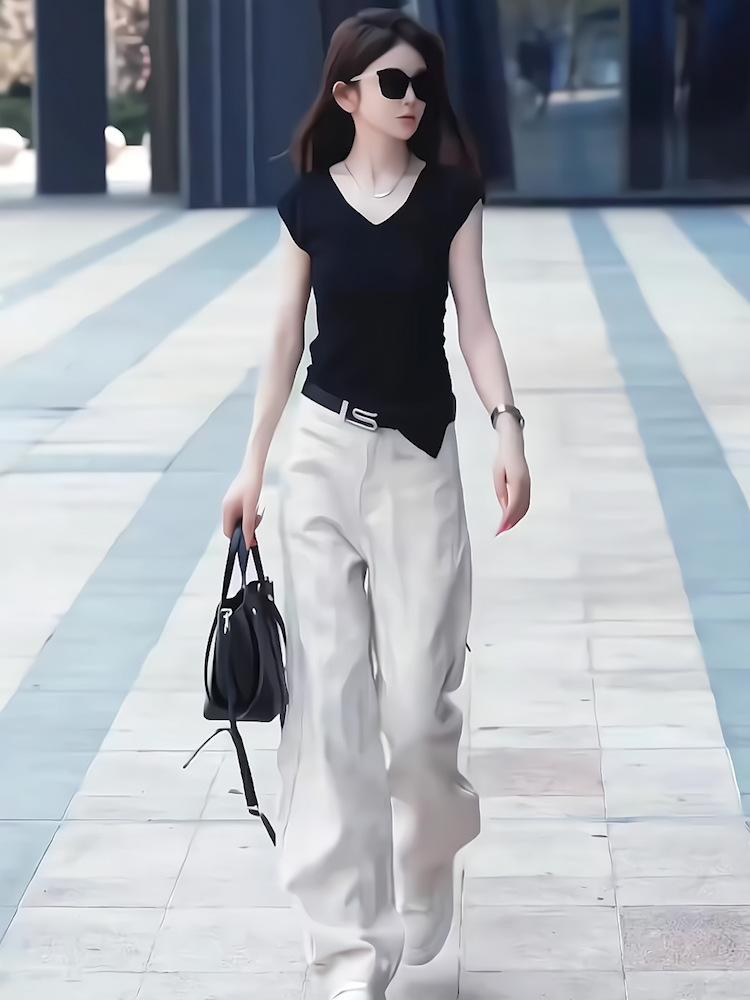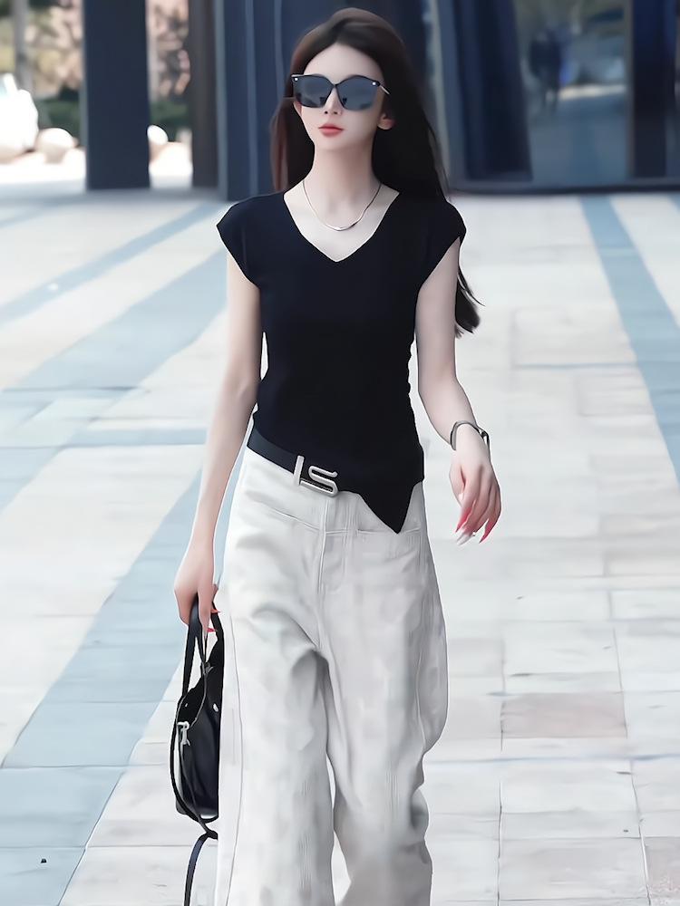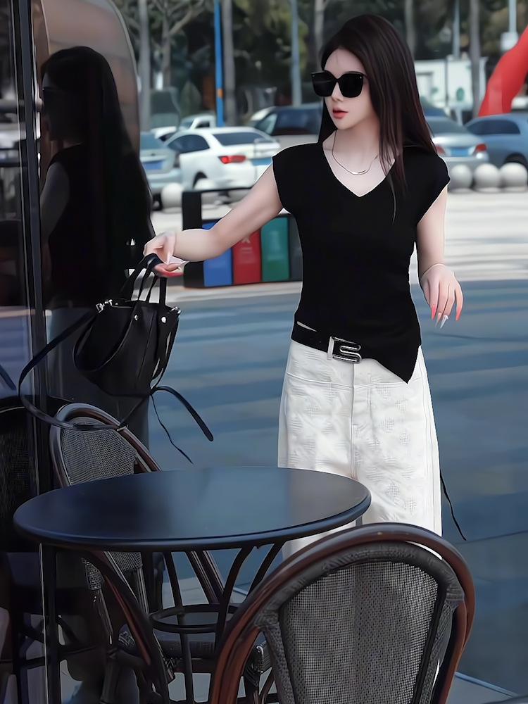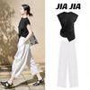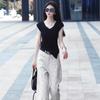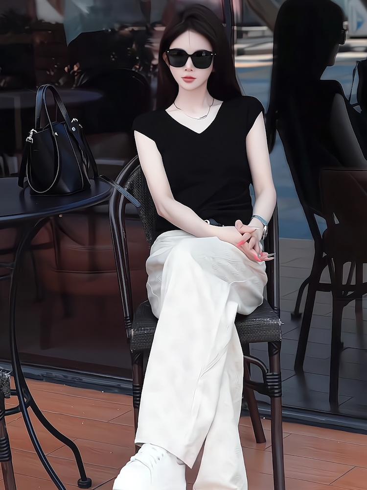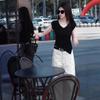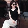 Sentido del Diseño Casual Deportivo Simple Conjunto de Pantalones de Negro Corto Sin Mangas Reductor de Edad Dulce Genial Top Conjunto de Dos Piezas para Mujer