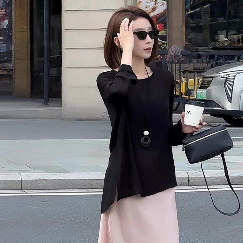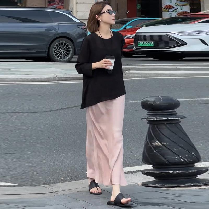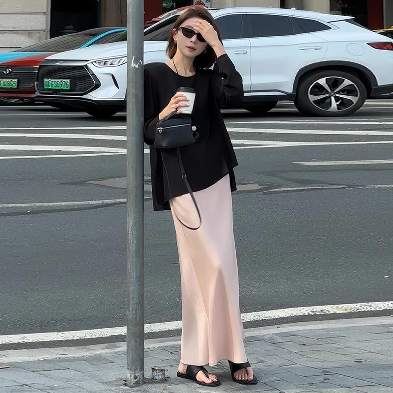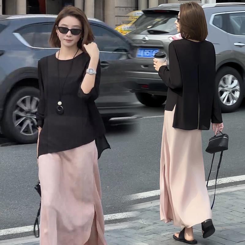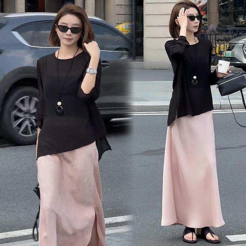 Conjunto de Vestido de Moda para Mujer 2025 Nuevo Moderno Holgado Adelgazante Protección Solar Camisa de Manga Larga Falda Midi Conjunto de Dos Piezas