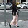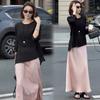 Black Top + Pink Midi Skirt [Set], black top, Pink skirt