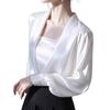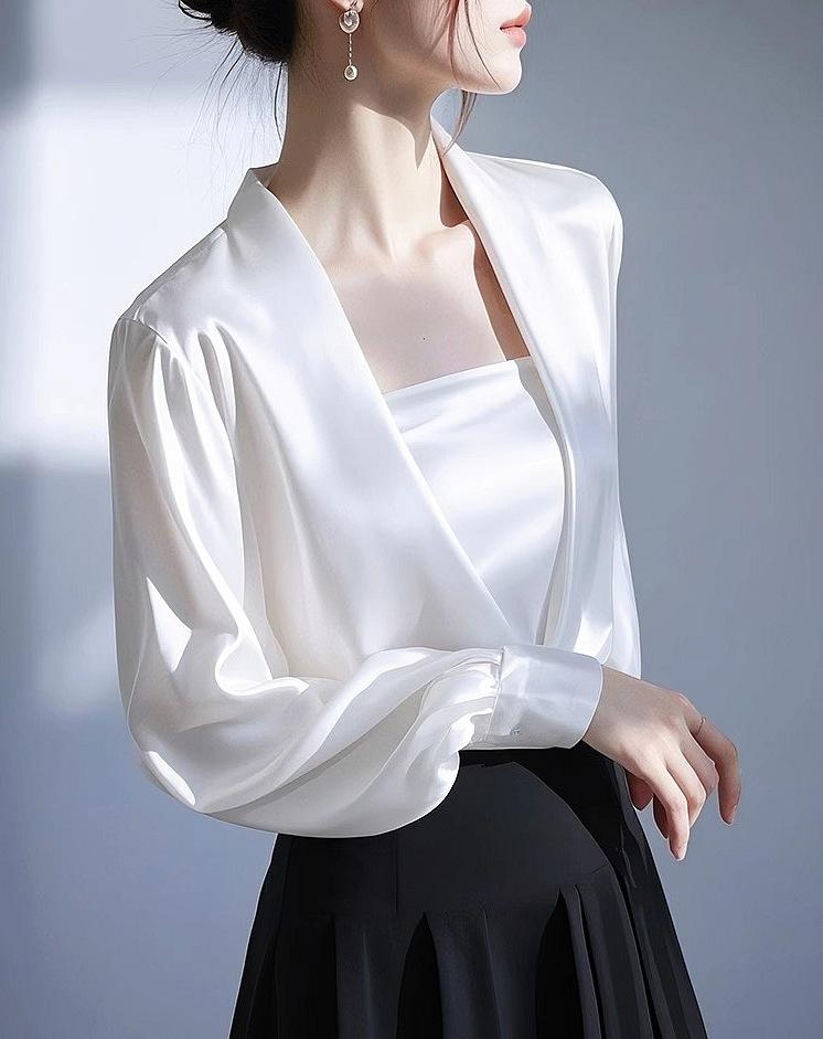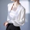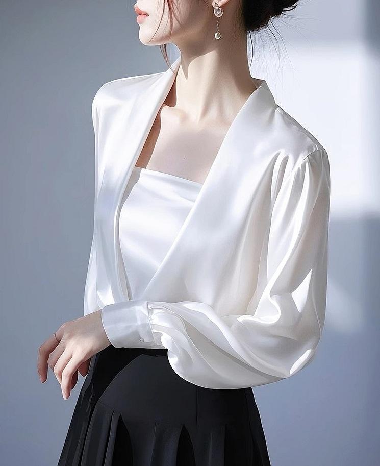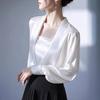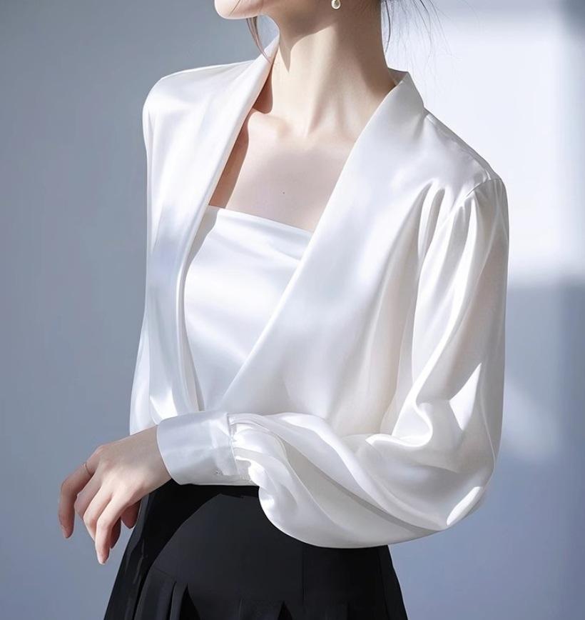 Camisa de Satén Blanco para Mujer 2025 Primavera Nuevo Estilo Retro Francés Estilo Chanel Socialité Adelgazante Elegante Top de Manga Larga