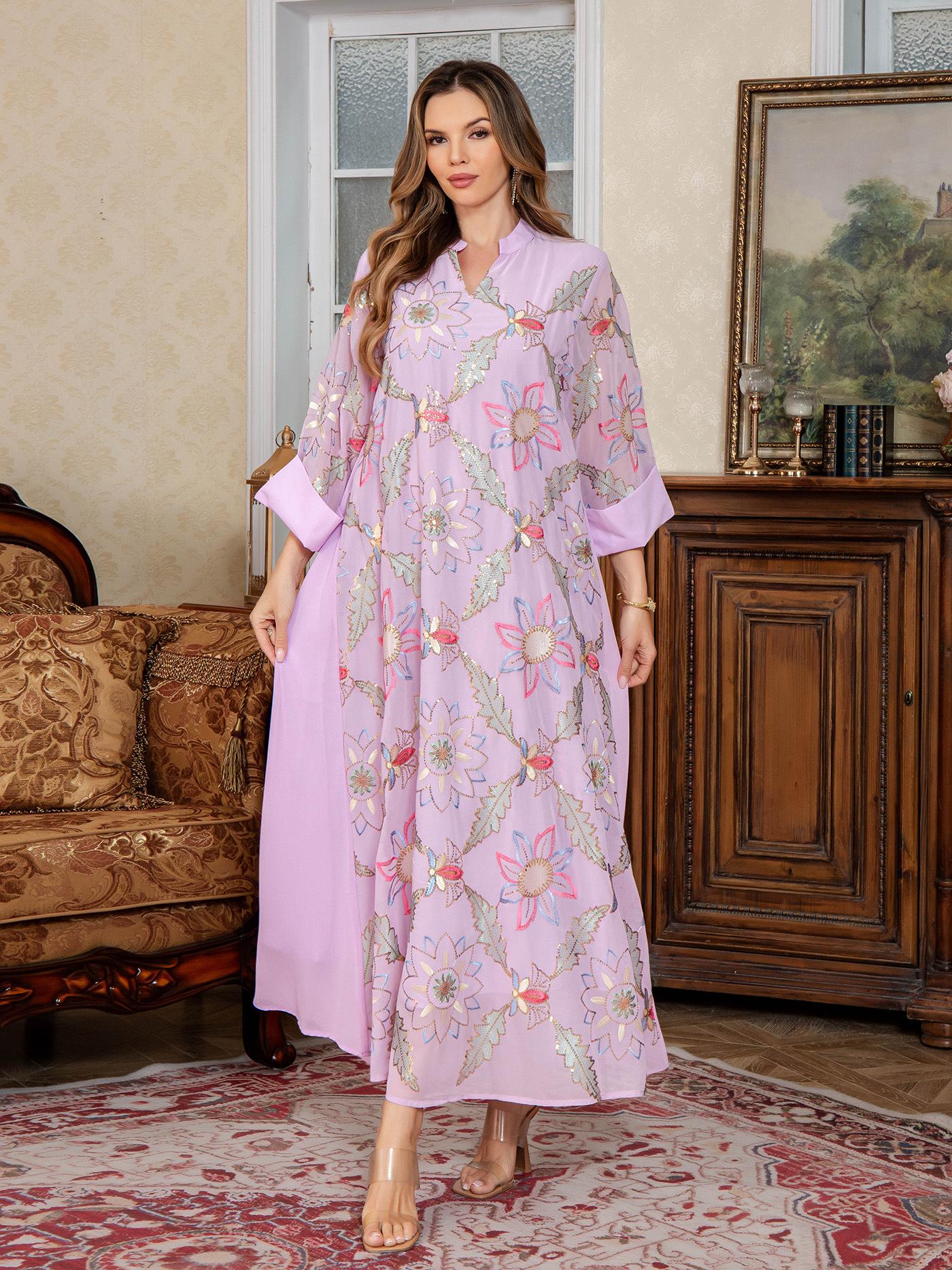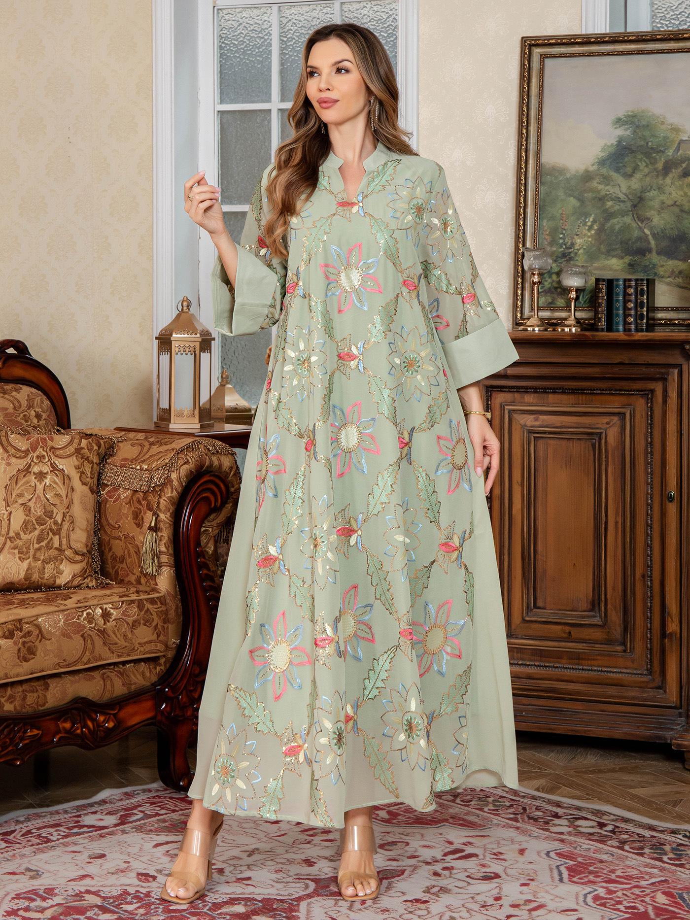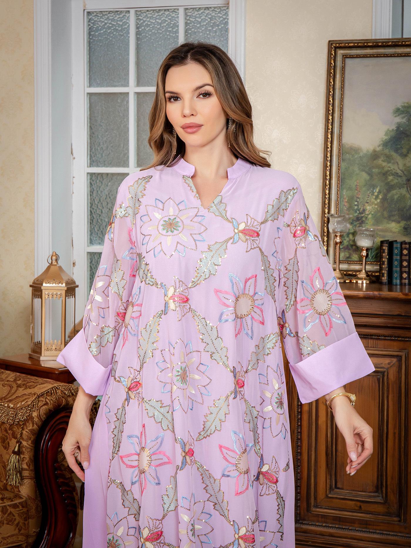 Nueva Bata Larga para Mujer Musulmana del Medio Oriente Bordado de Lentejuelas Abaya Vestido Dubái Ropa Árabe