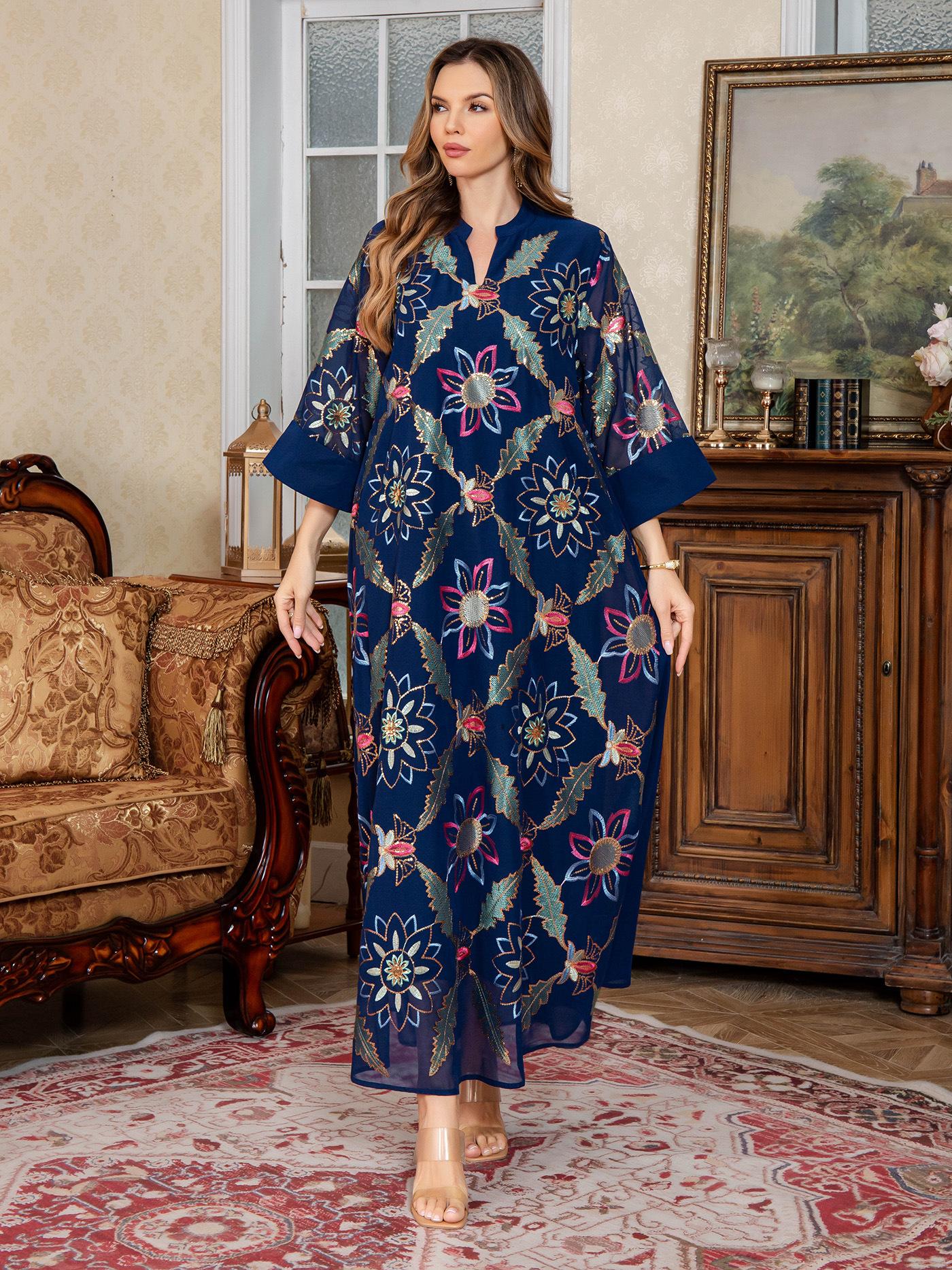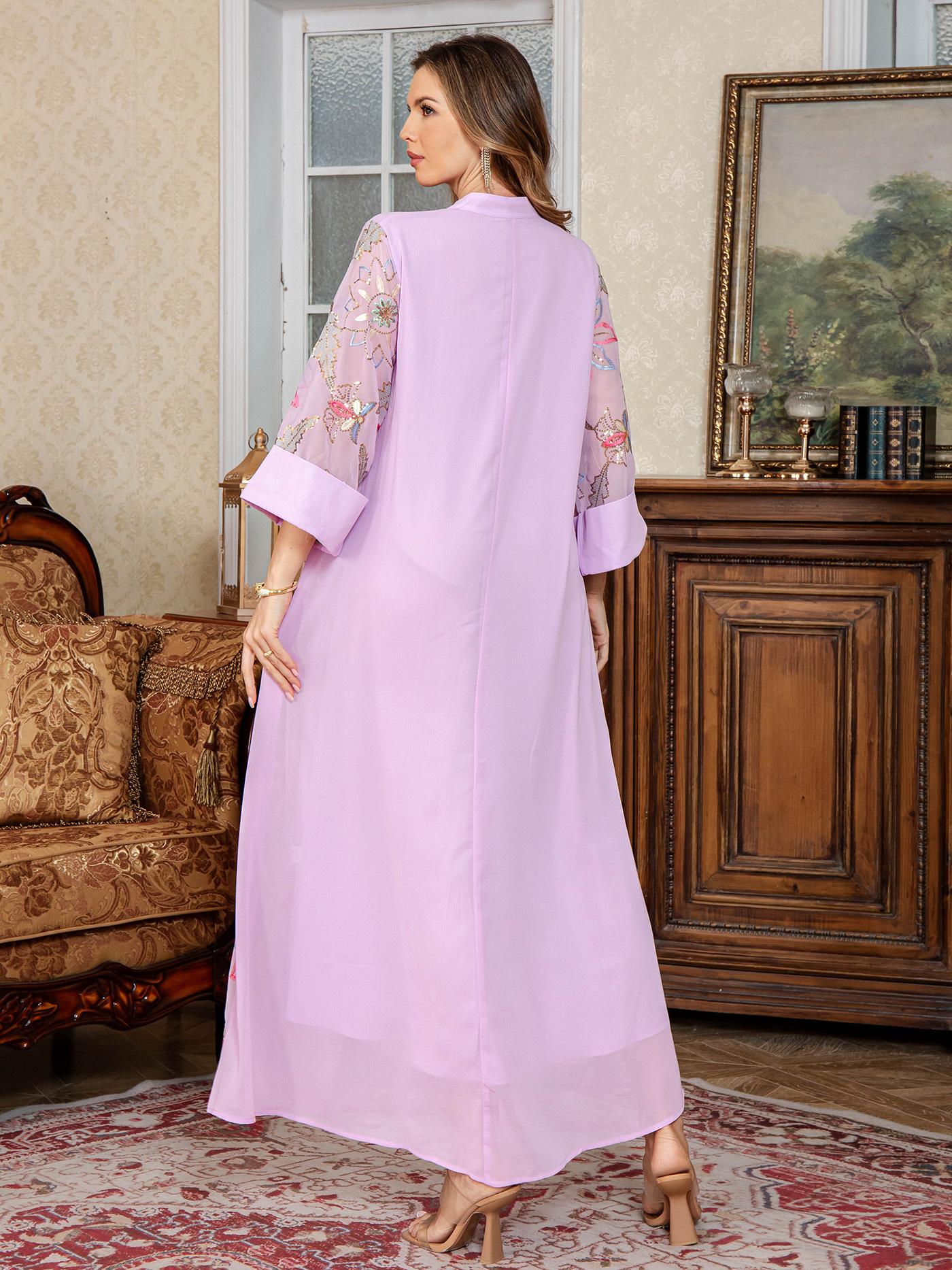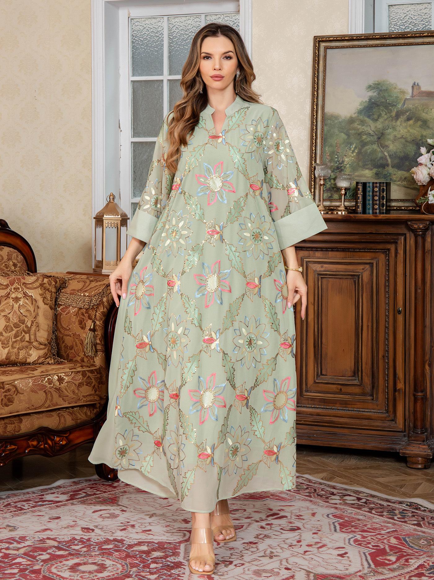 Nueva Bata Larga para Mujer Musulmana del Medio Oriente Bordado de Lentejuelas Abaya Vestido Dubái Ropa Árabe