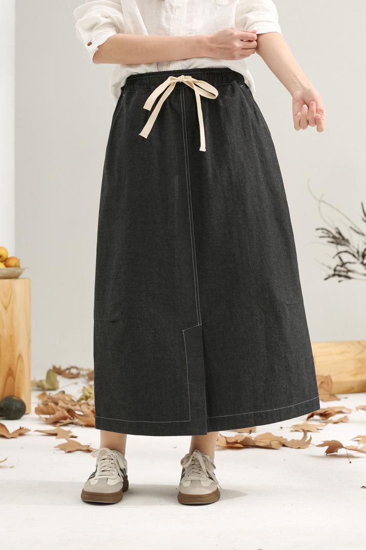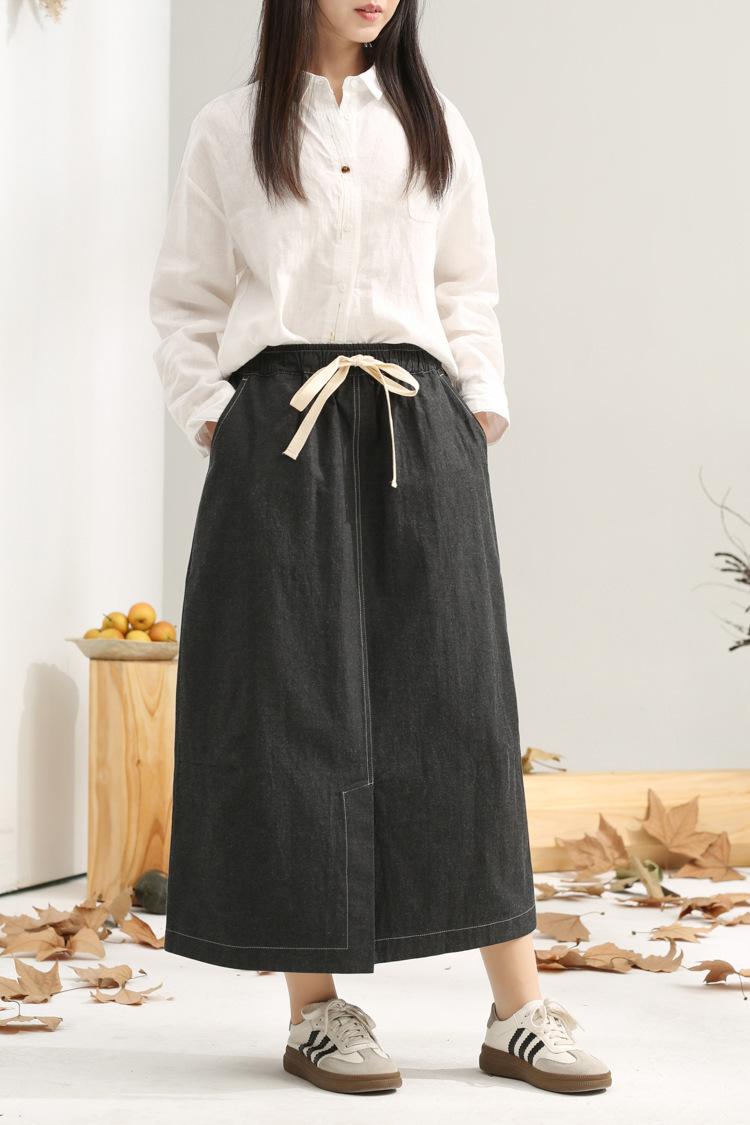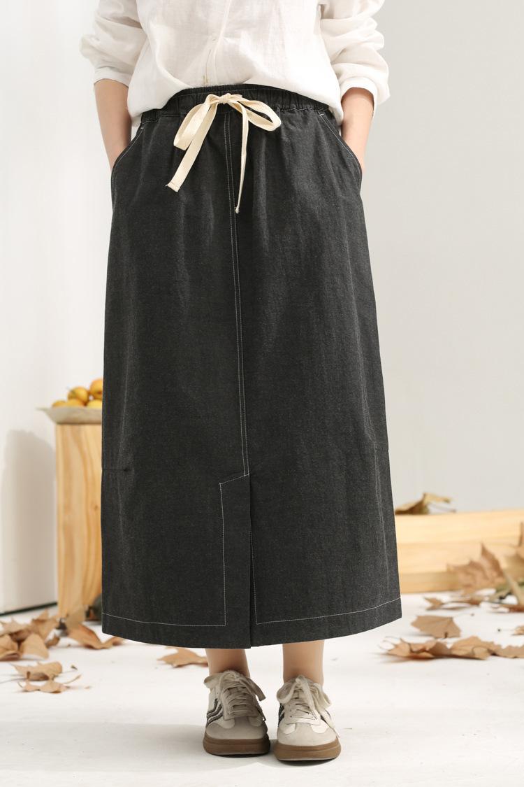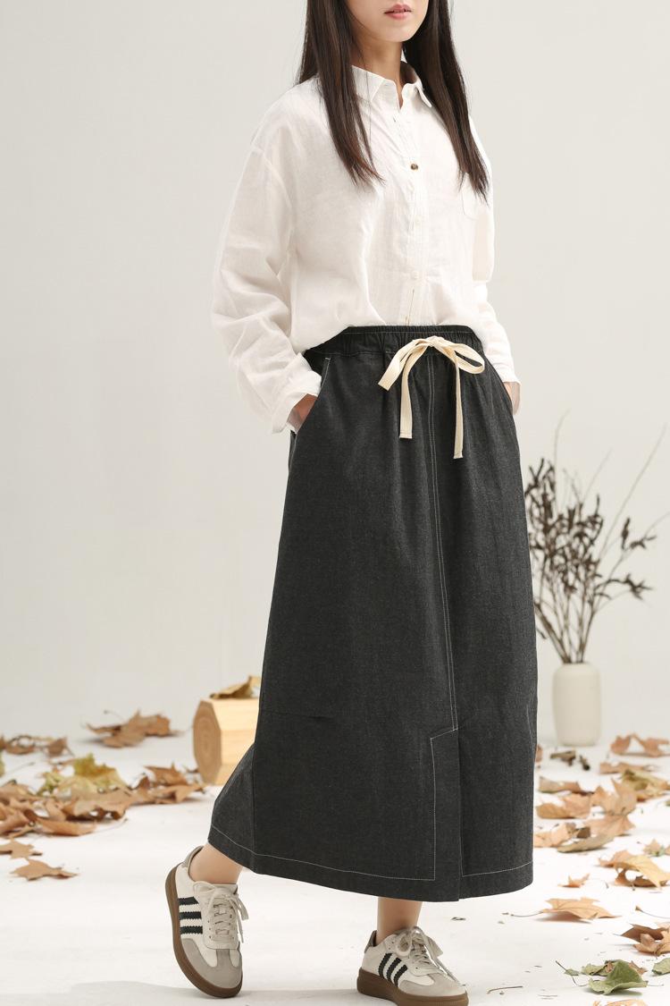 Primavera 2025 nuevo negro niebla cintura elástica alta calidad versátil falda capullo falda midi de mujer