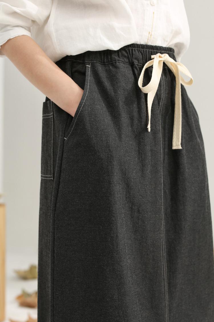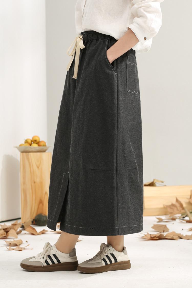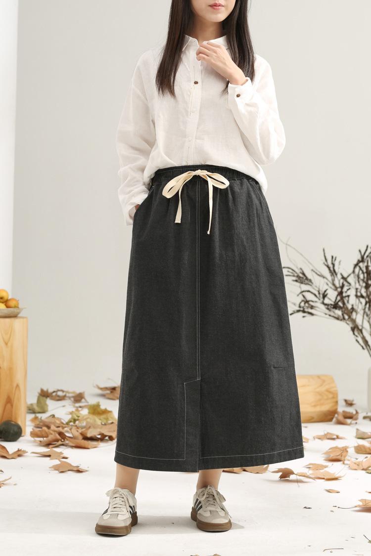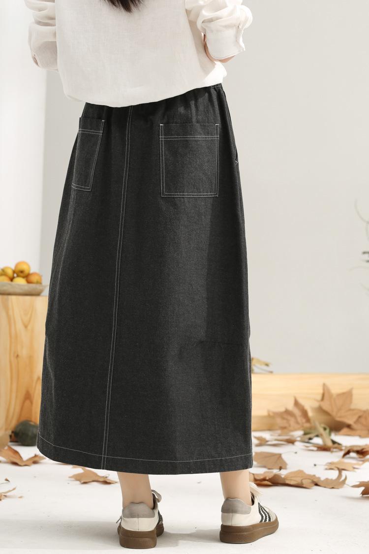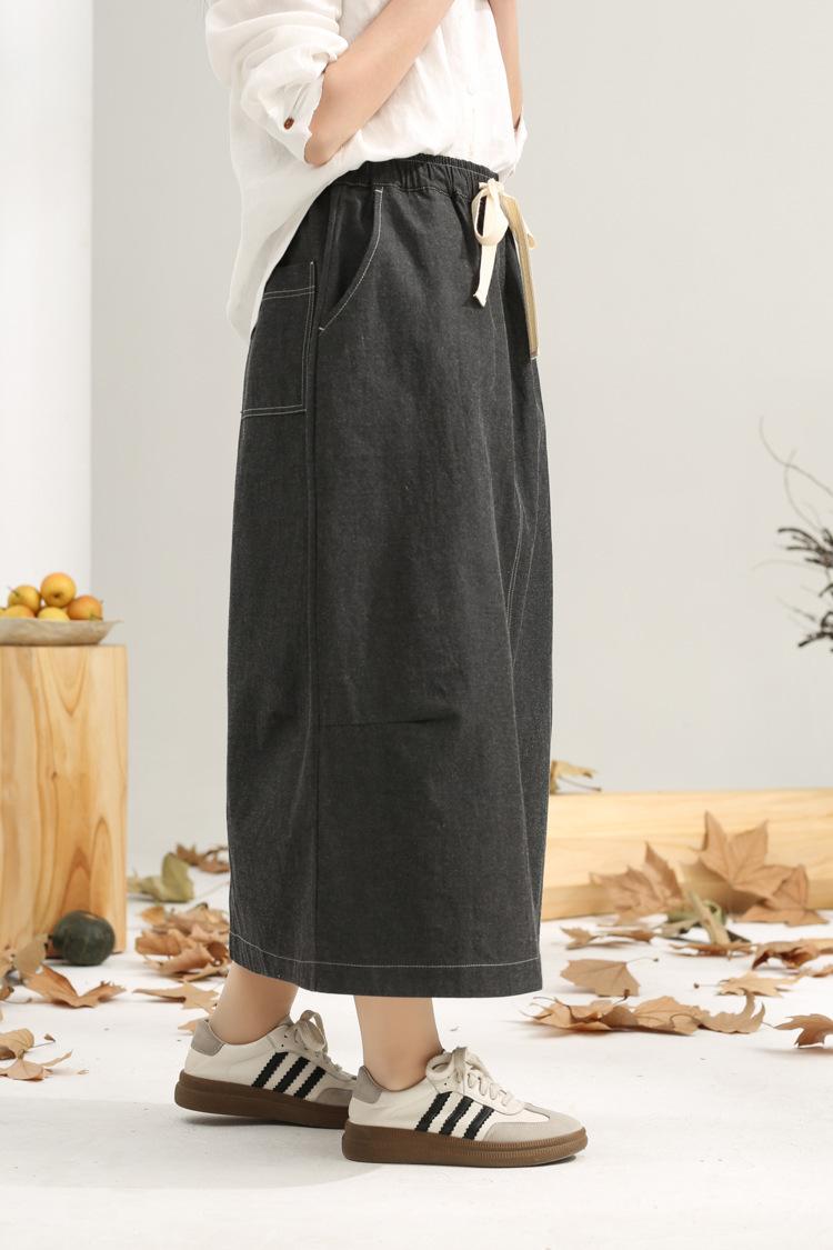 Primavera 2025 nuevo negro niebla cintura elástica alta calidad versátil falda capullo falda midi de mujer