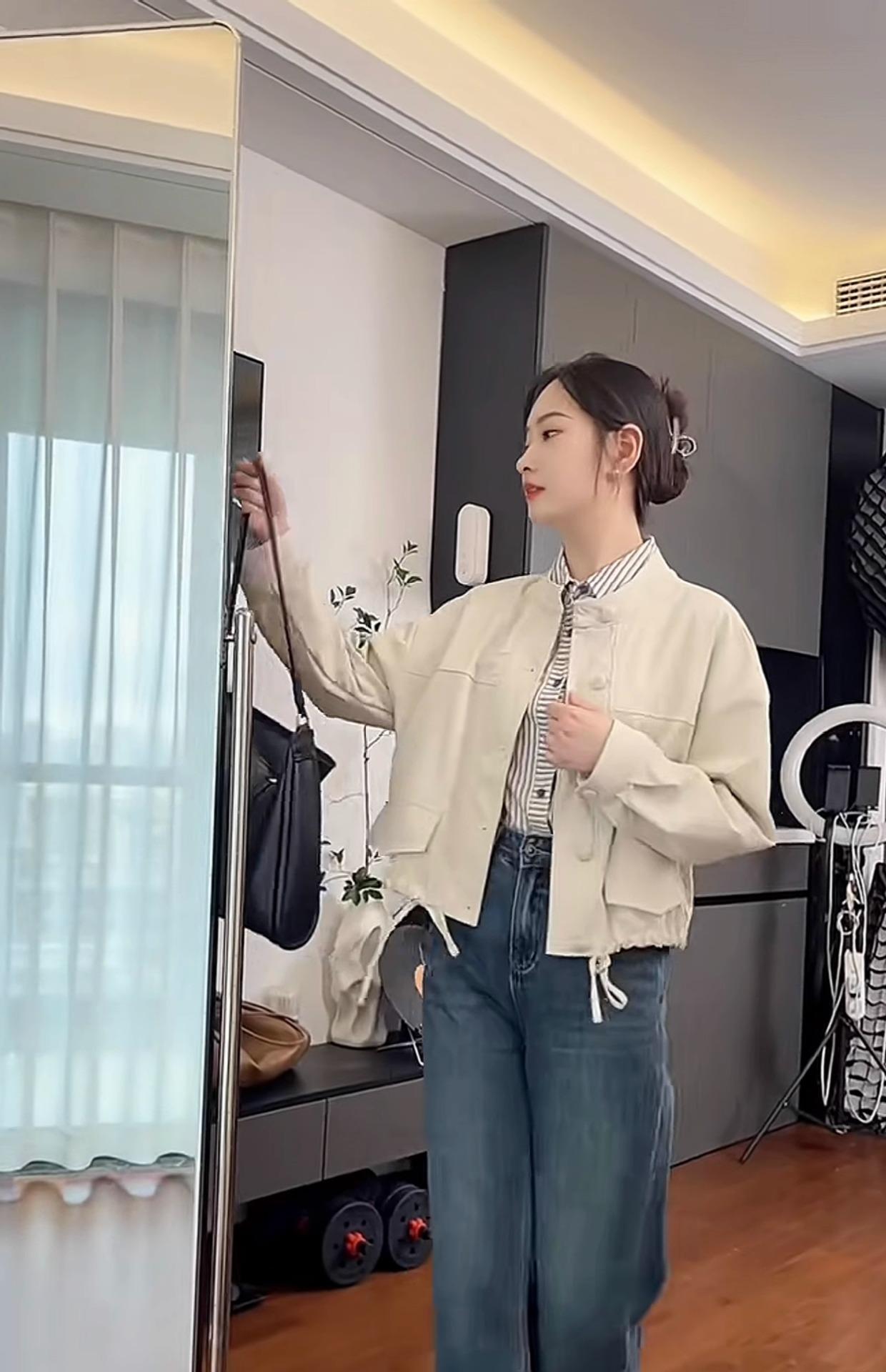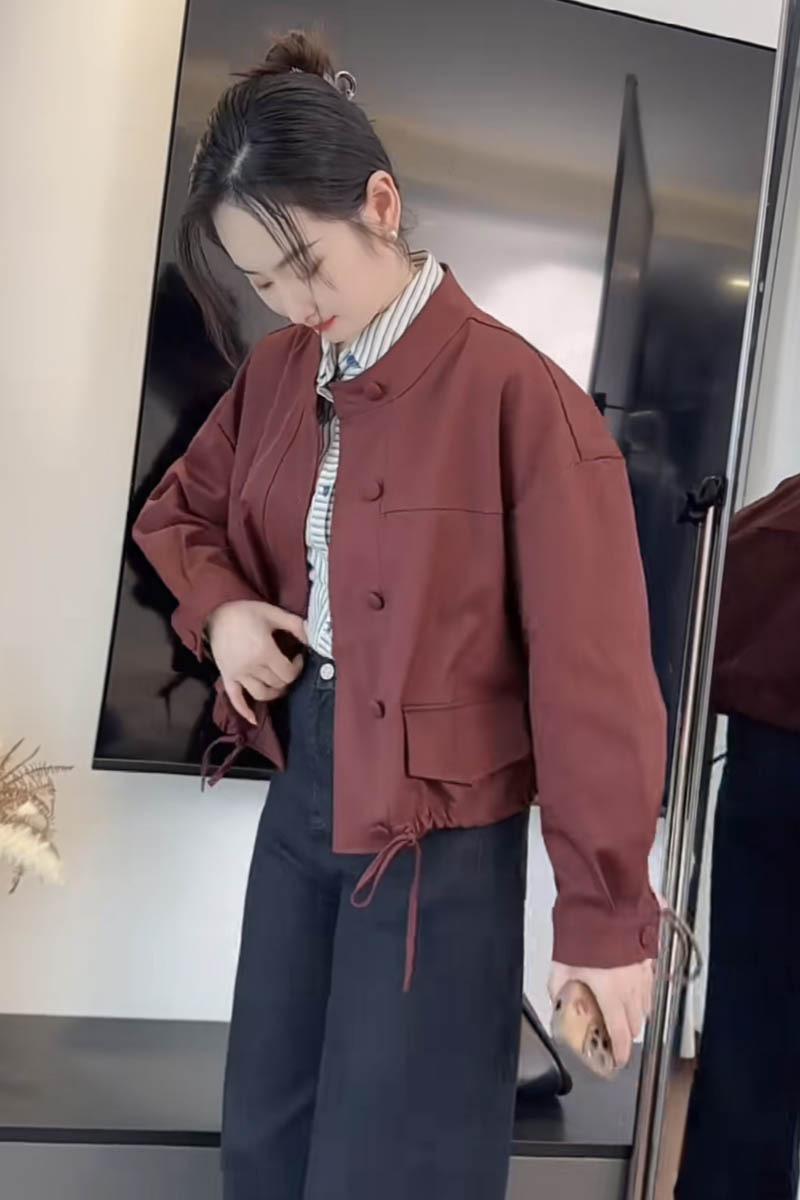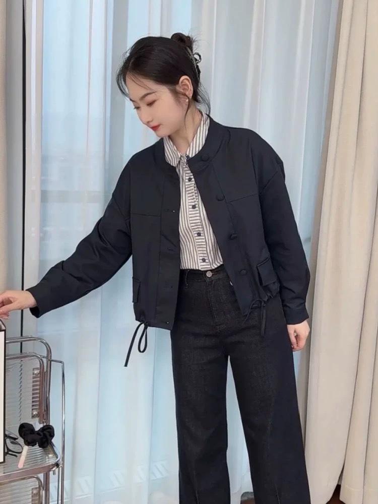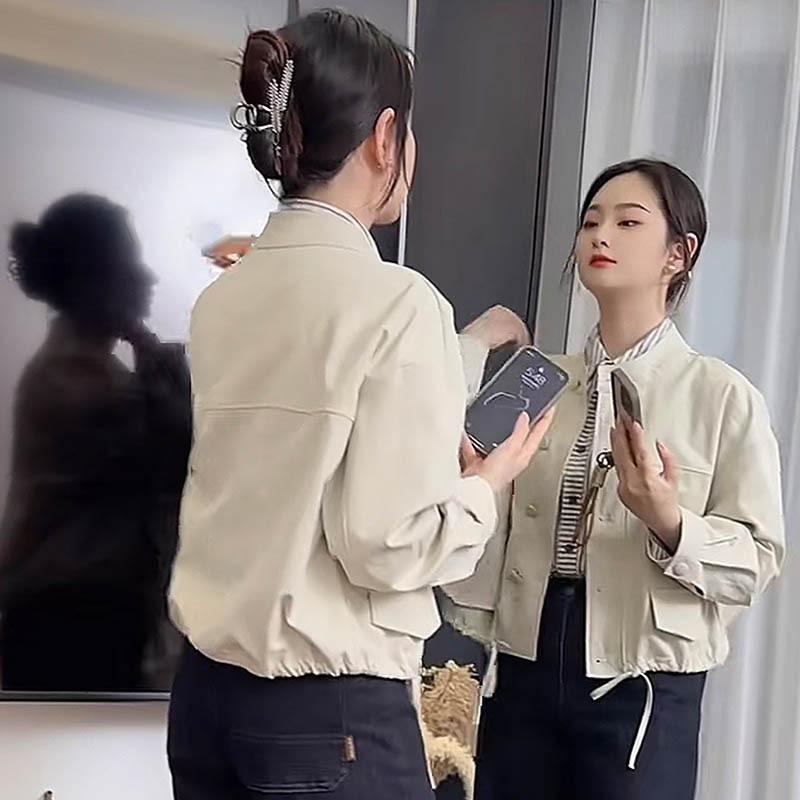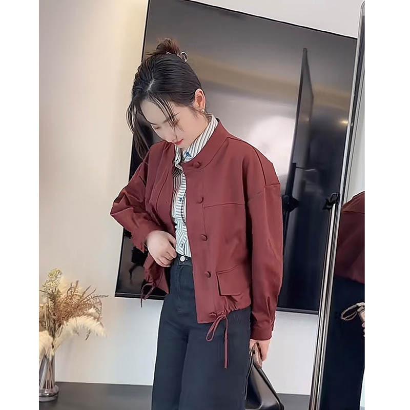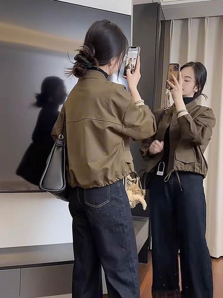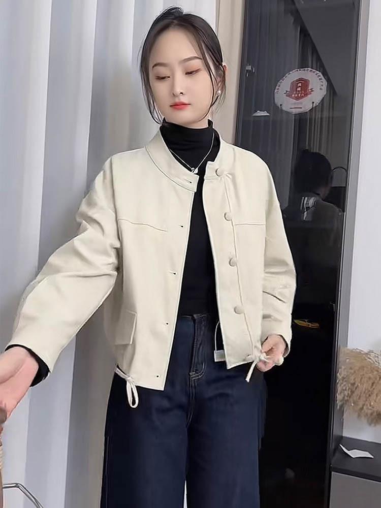 Chaqueta corta de cuello alto estilo coreano para mujer 2025 primavera nueva diseño casual holgado talla pequeña chaqueta de moda top