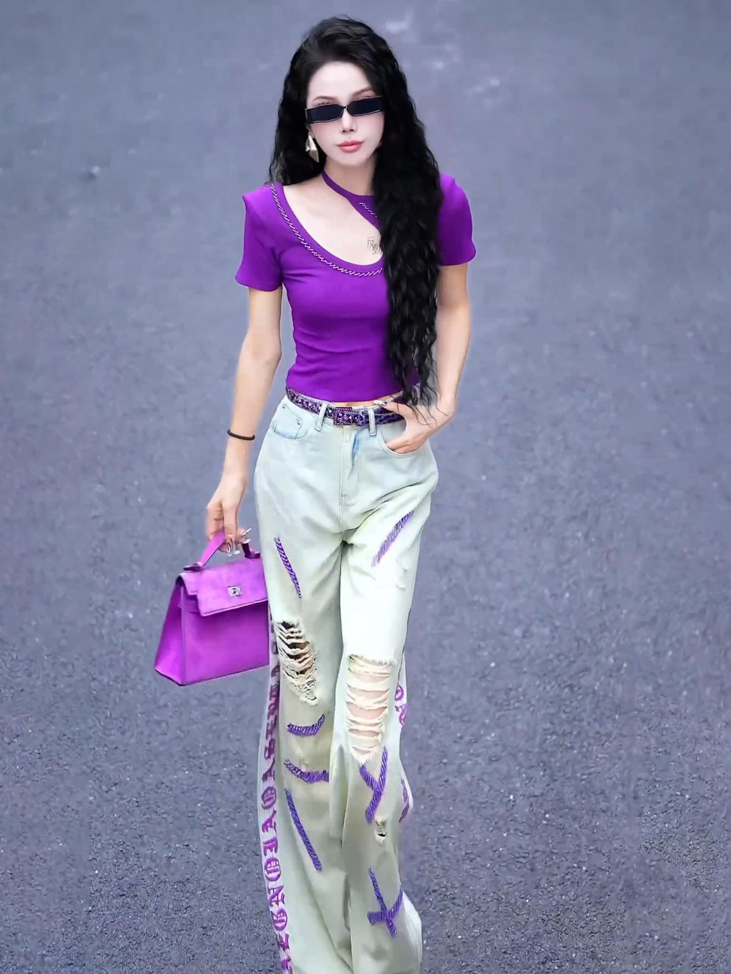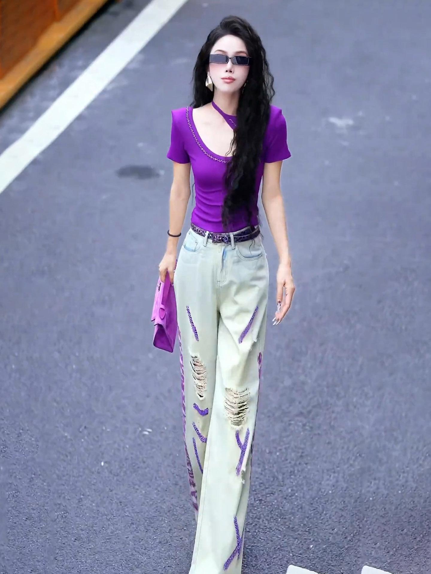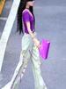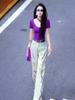 Ropa casual popular de este año 2025 verano nuevo versátil púrpura estilo puro y sexy jersey top ajustado ropa de mujer